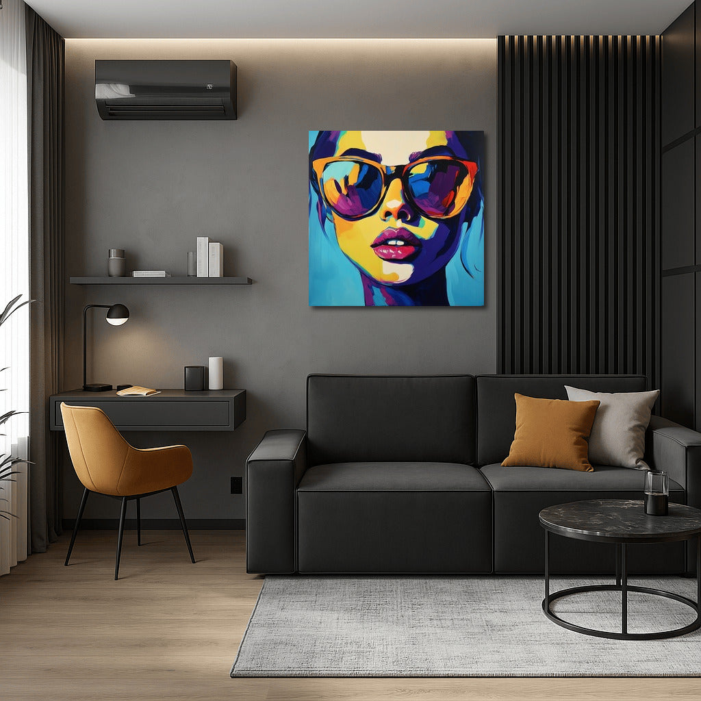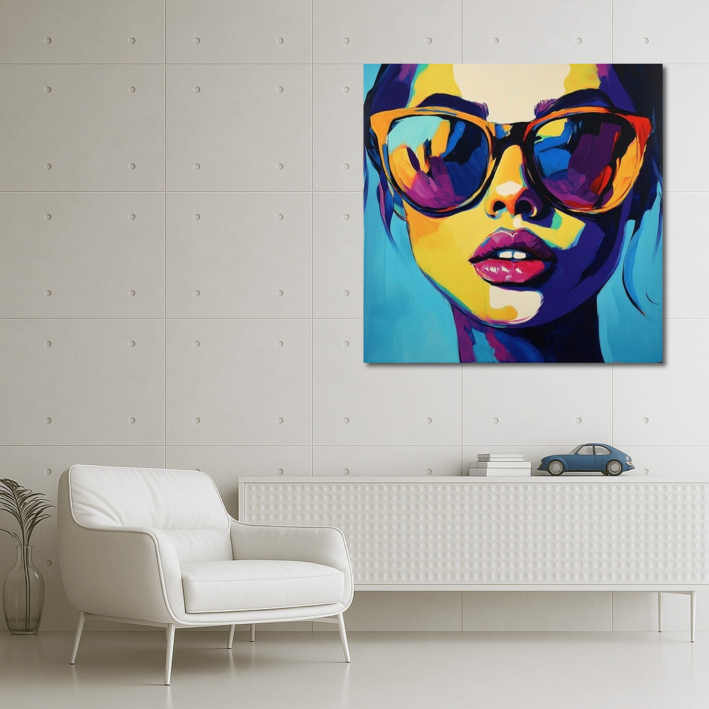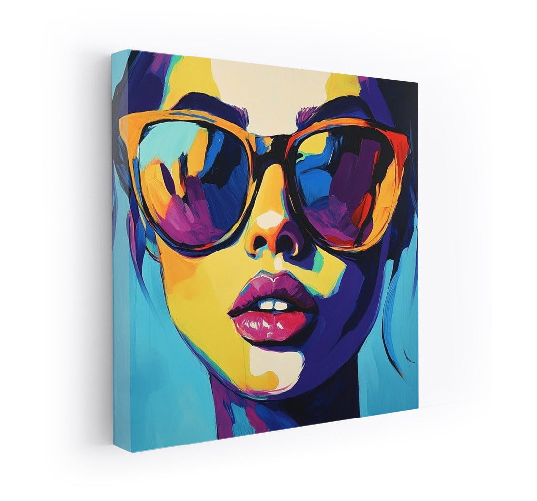 A bright poster with an abstract face in glasses - stylish wall art, will liven up any space. Pop art in every stroke! See more from the collection: Pop Art