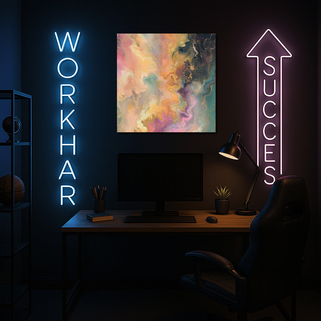 And now let's step into the heart of our operation — our workshop, where the real magic happens. Here, large printers and vibrant colors work together to create paintings that make hearts beat faster.