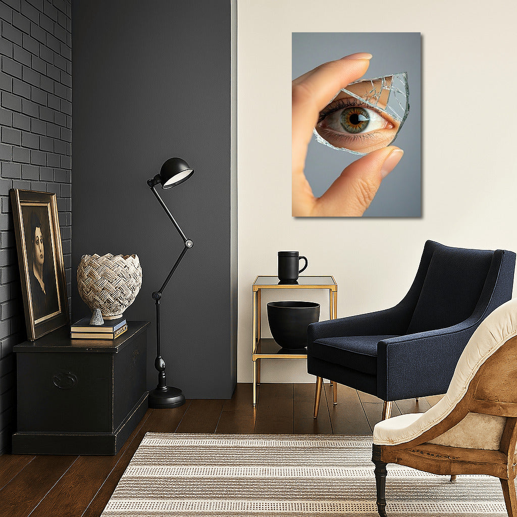 Poster 'Eye Through a Shard': A look through broken glass. Unique wall art for your interior. See more from the collection: Mixed Wall Art