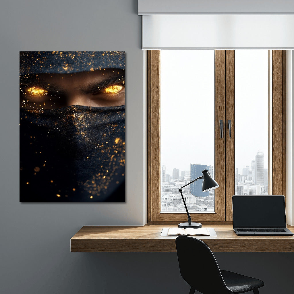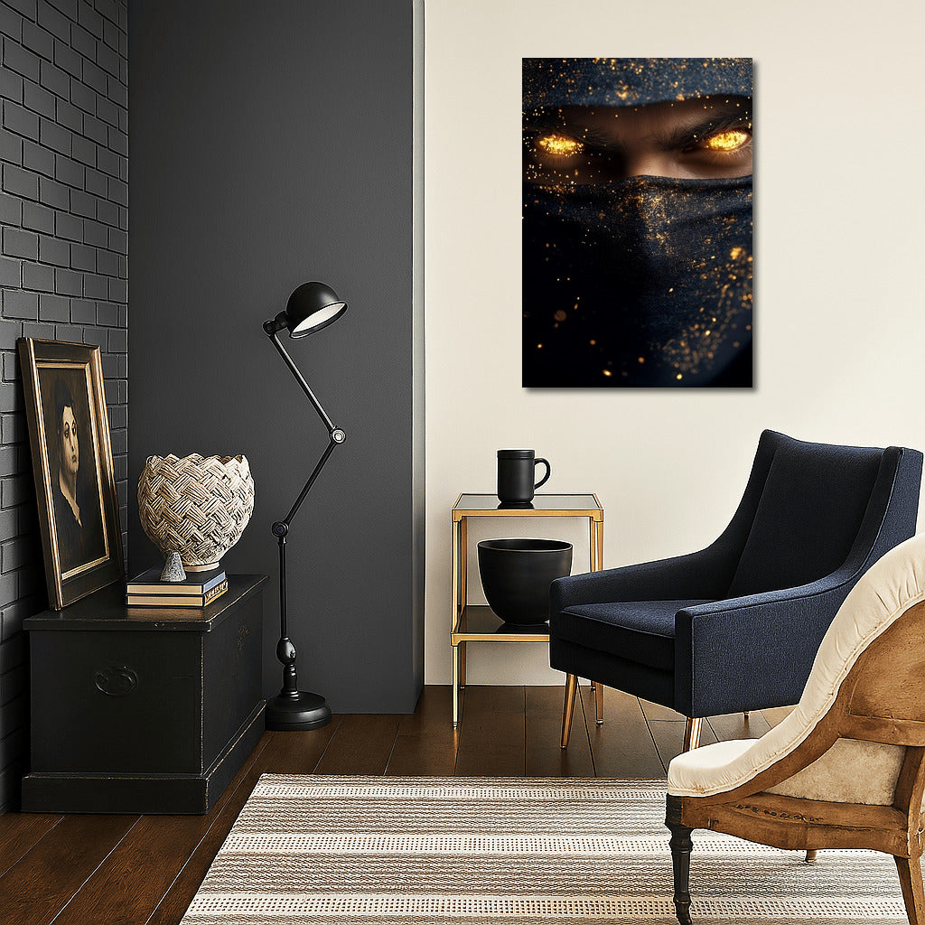 Mysterious gaze and sparkles of gold: this wall art poster will add intrigue and magic to your space. See more from the collection: Mixed Wall Art