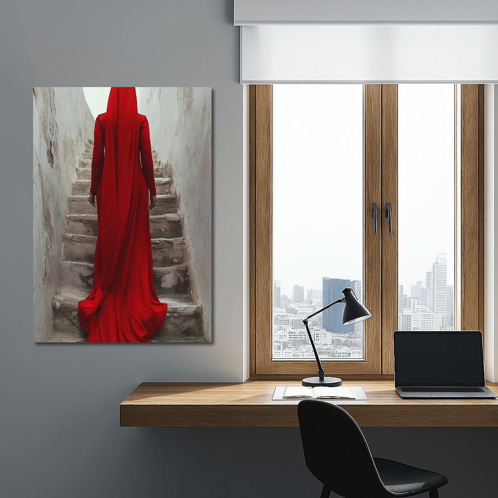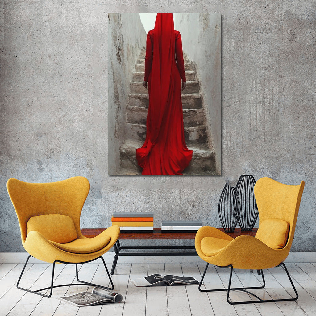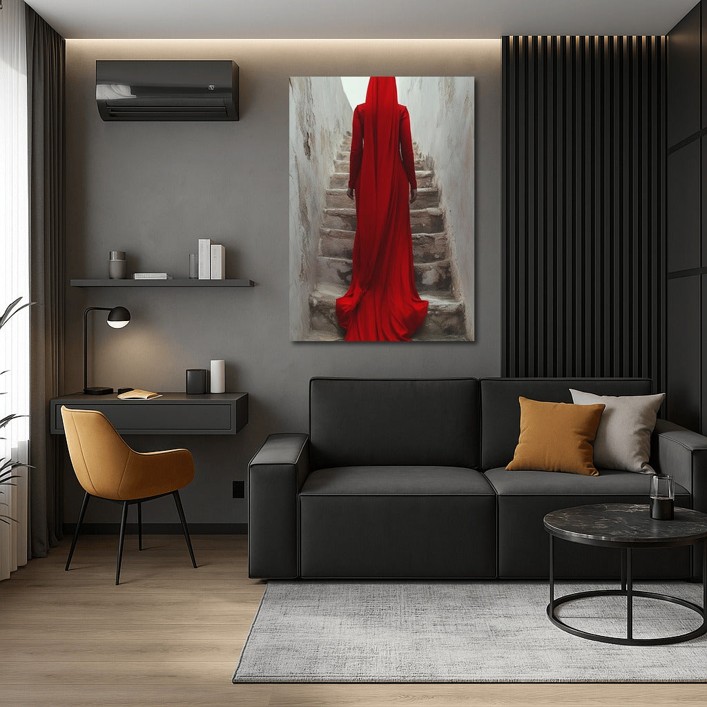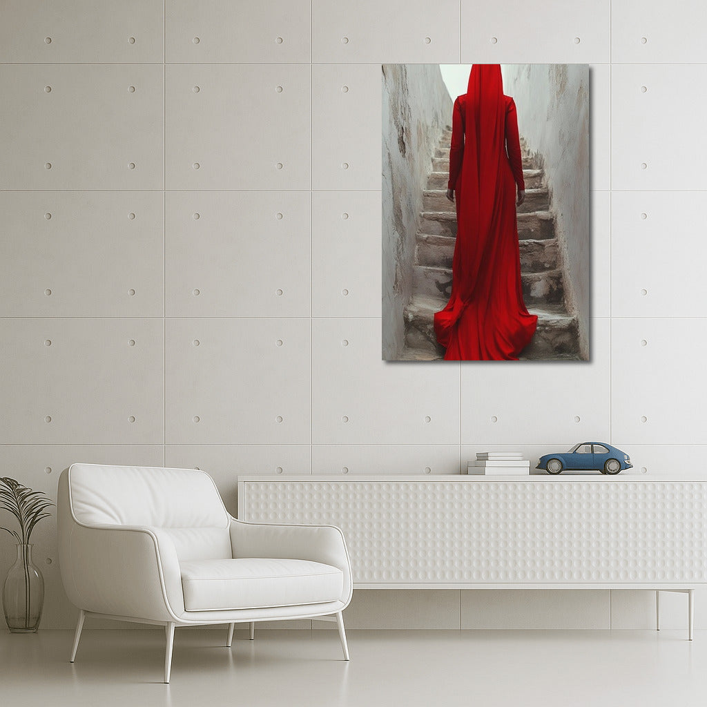 A mysterious figure in scarlet, step by step, goes into the unknown. This poster will add mysticism and style to your wall art. See more from the collection: Mixed Wall Art