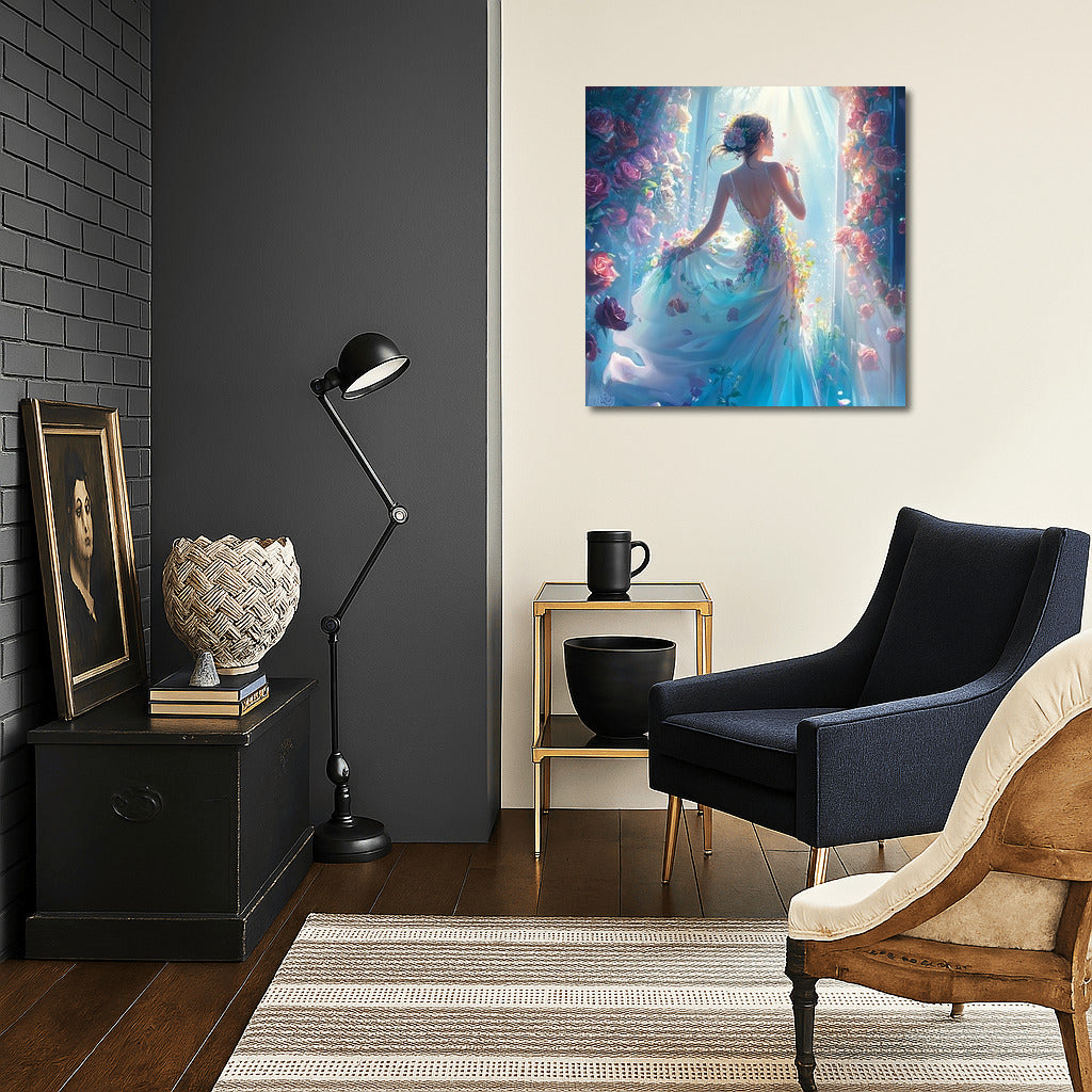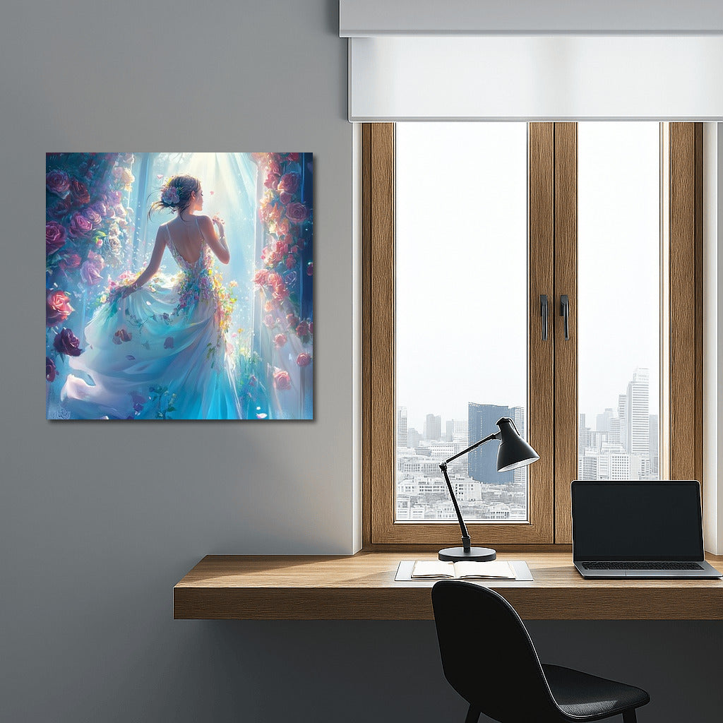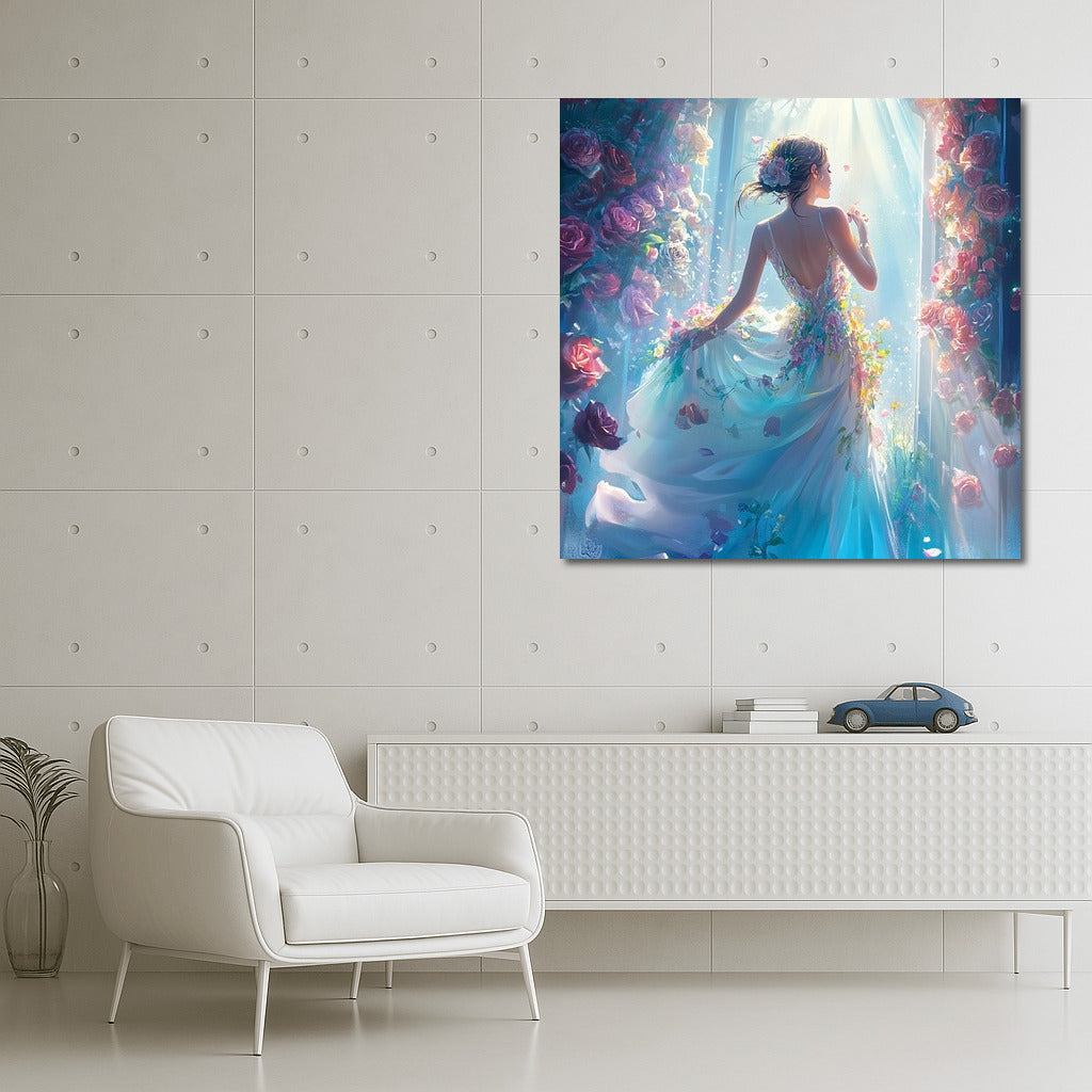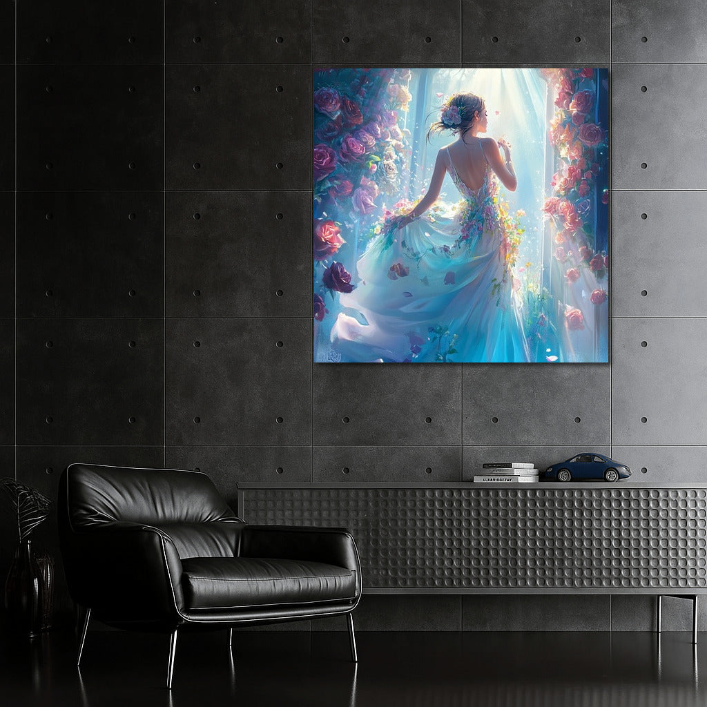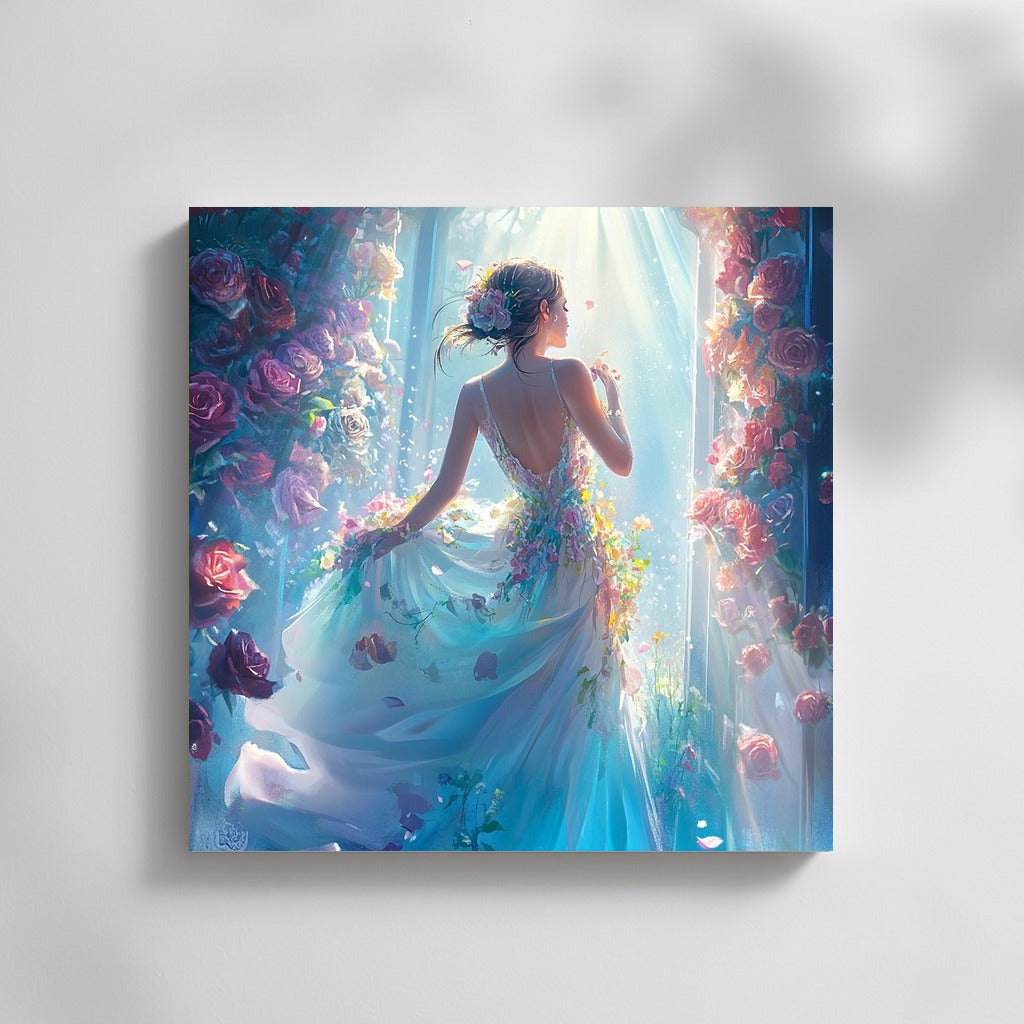 Magical world of flowers: a poster with a mysterious figure surrounded by bright roses will fill your home with an atmosphere of fairy tale and light. See more from the collection: Mixed Wall Art