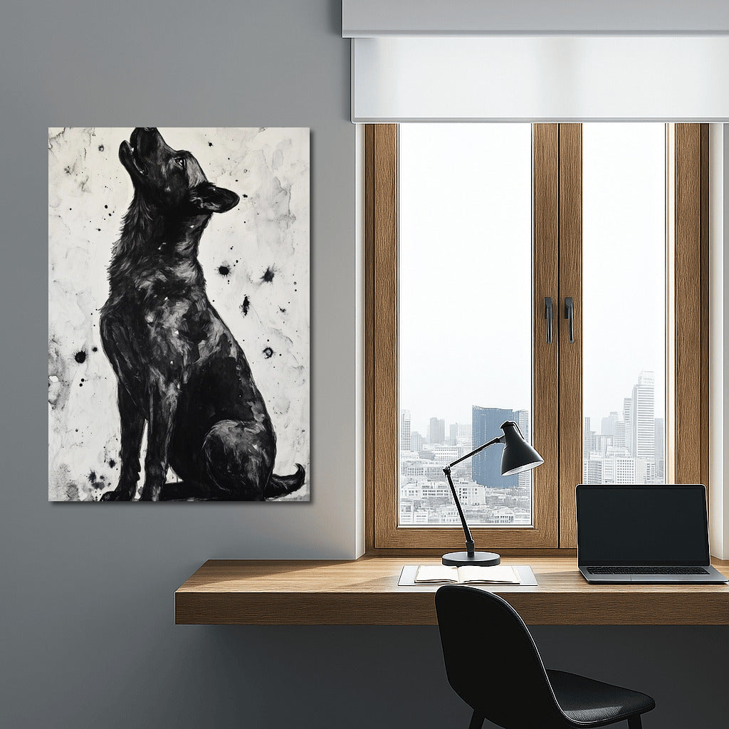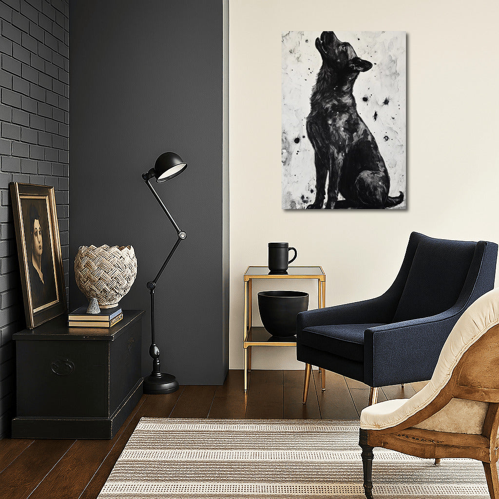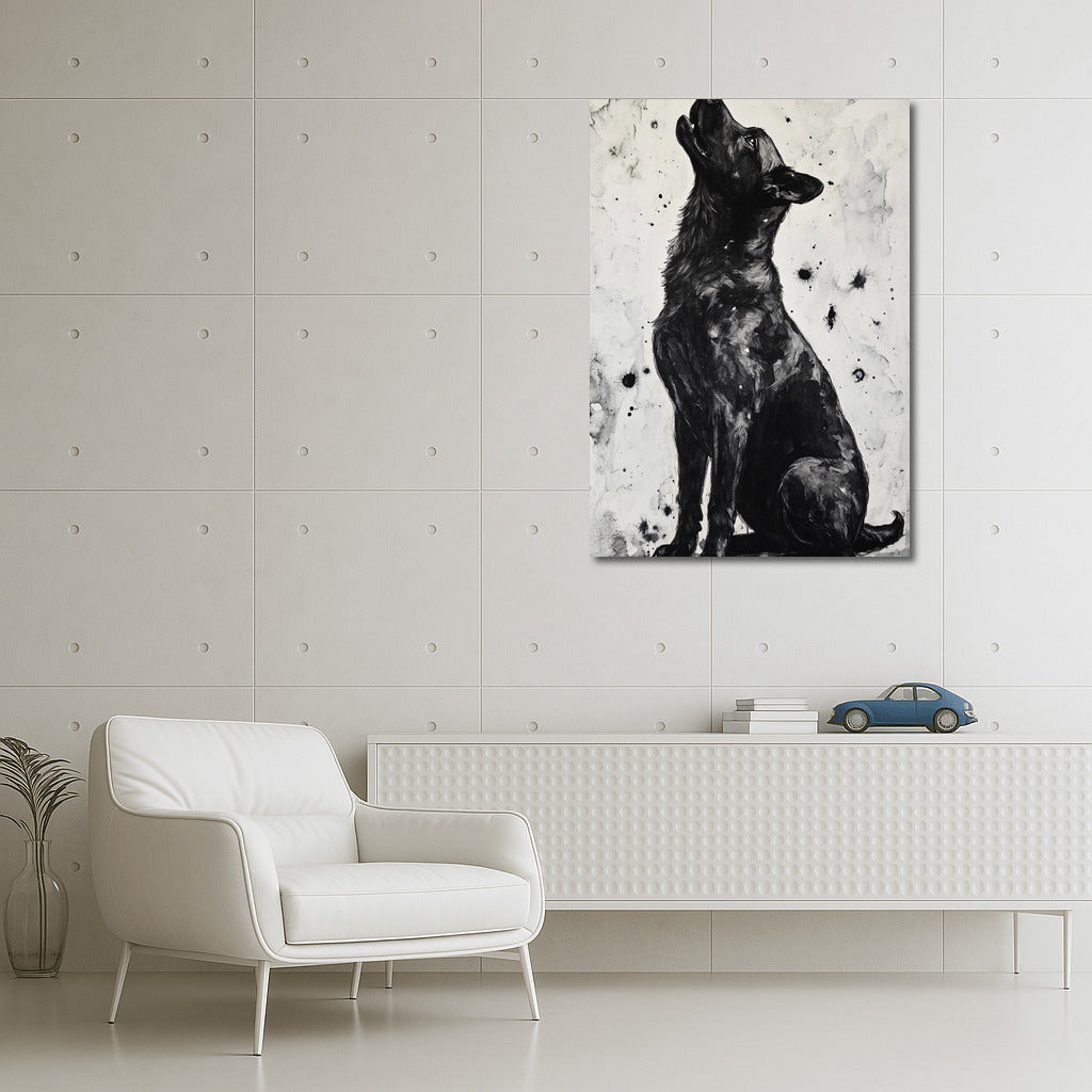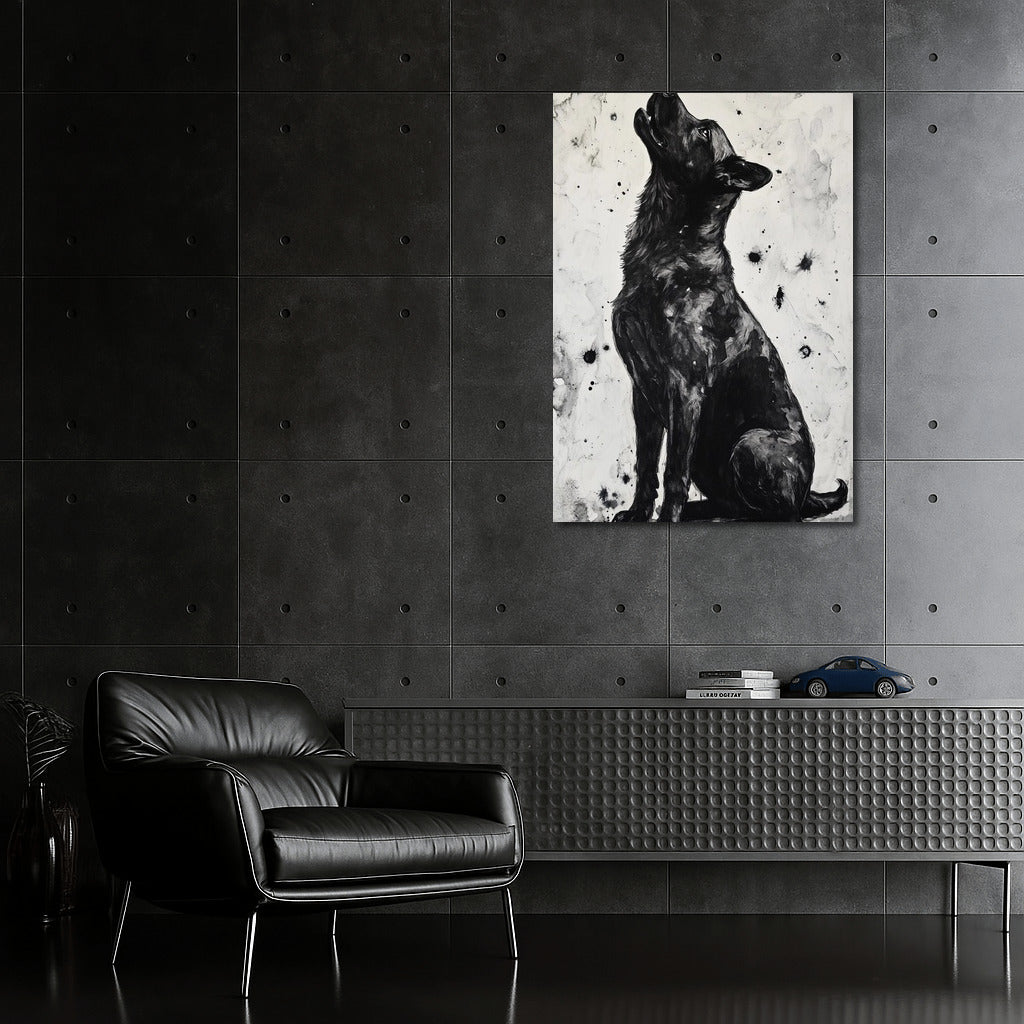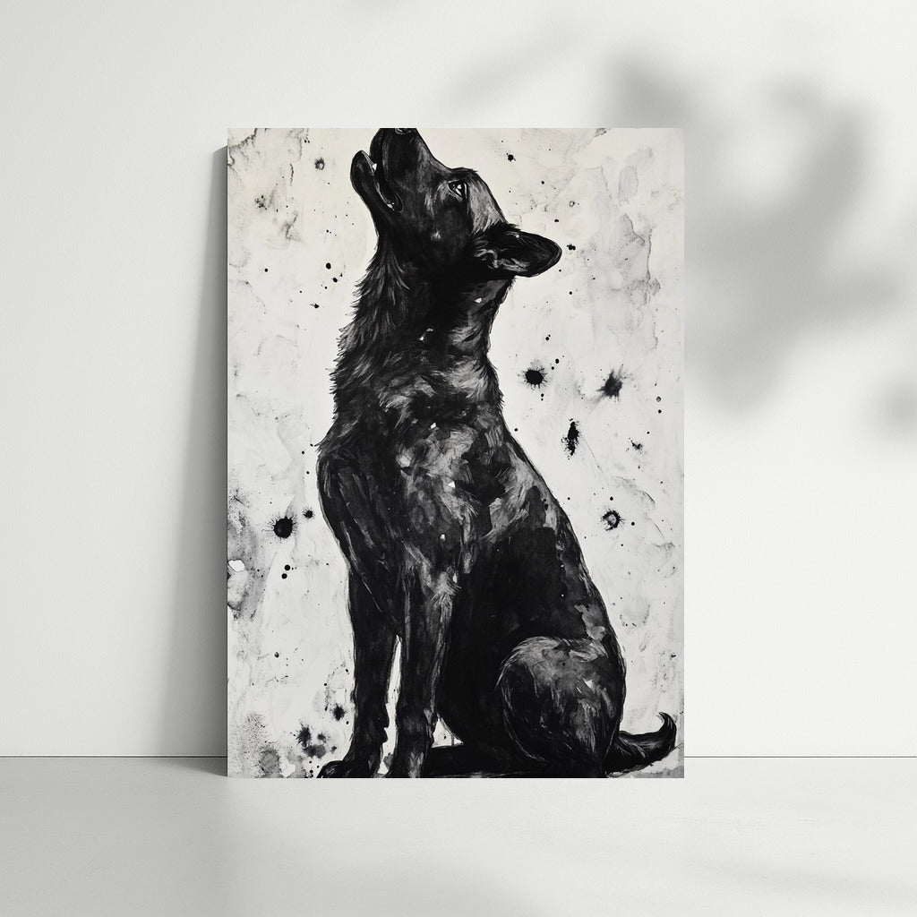 A great dog poster. The black and white color scheme creates an air of mystery in your wall art. See more from the collection: Animals Art
