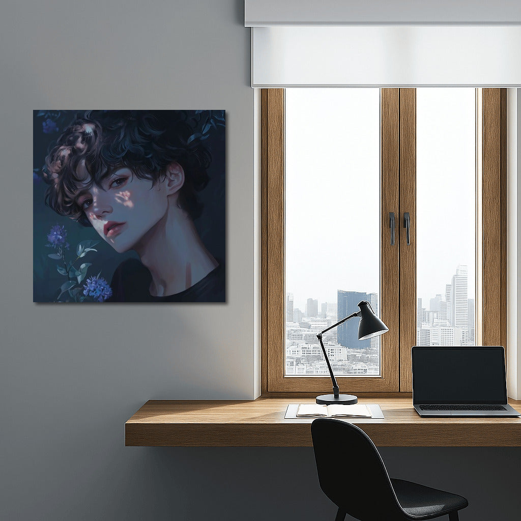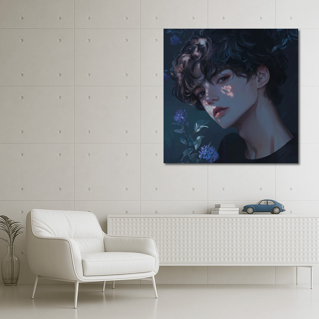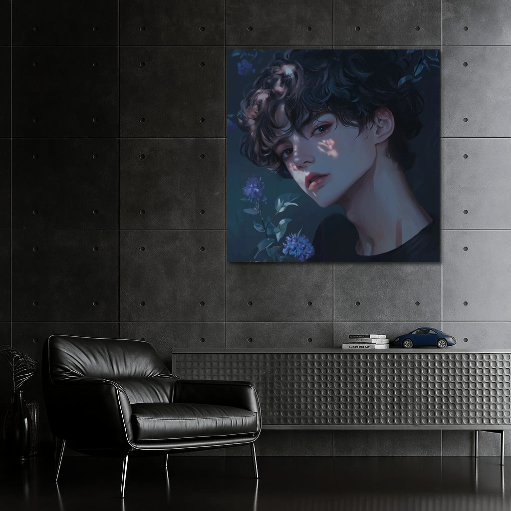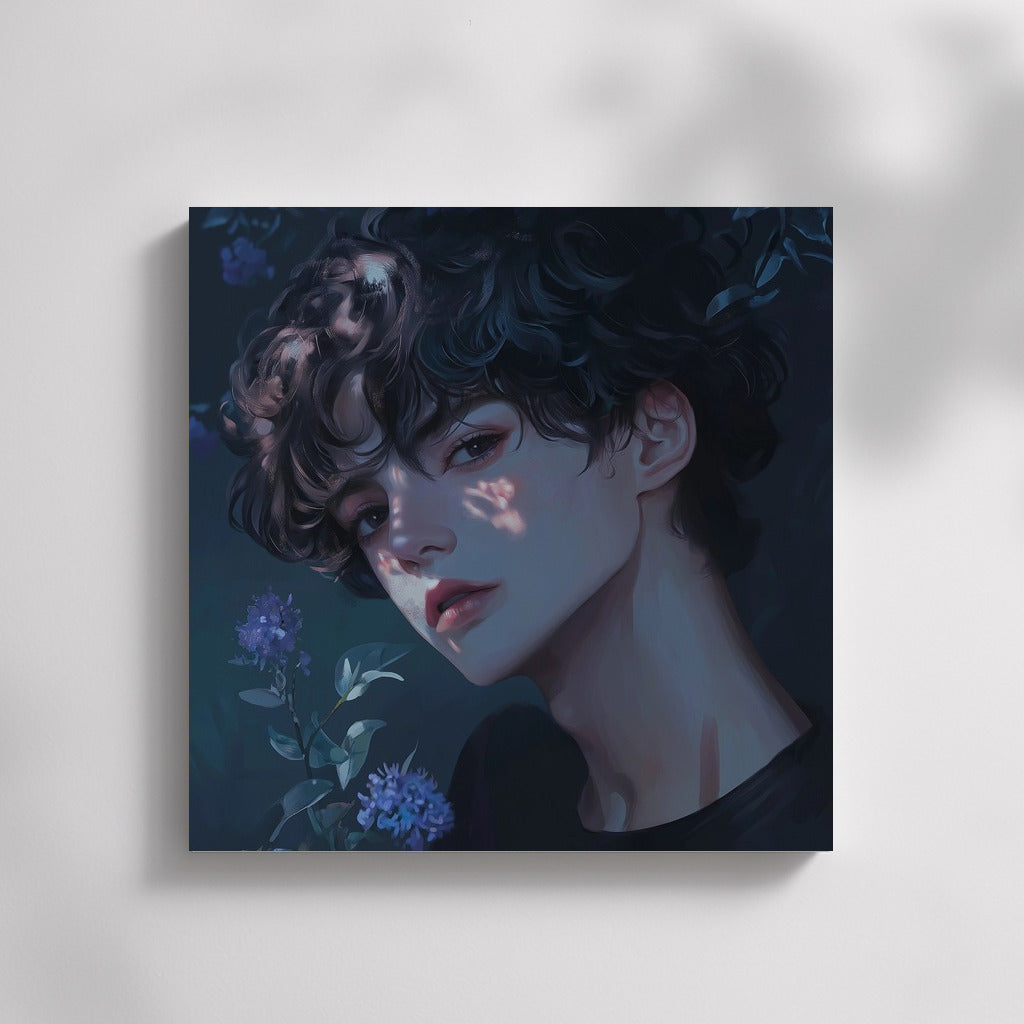 An elegant painting with a mysterious image in flowers. The perfect poster for those who appreciate unique wall art. See more from the collection: Anime & Manga genres Art