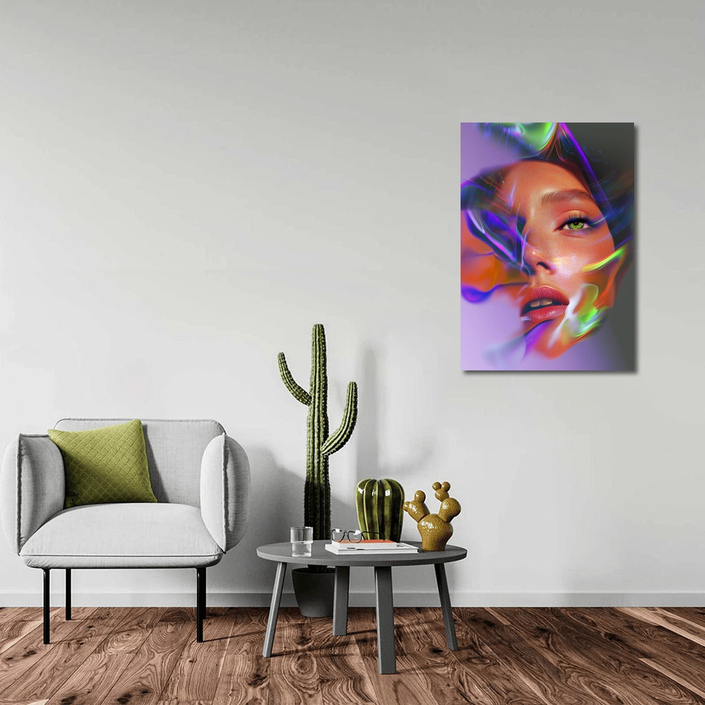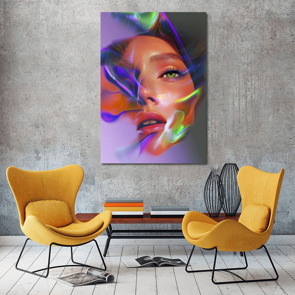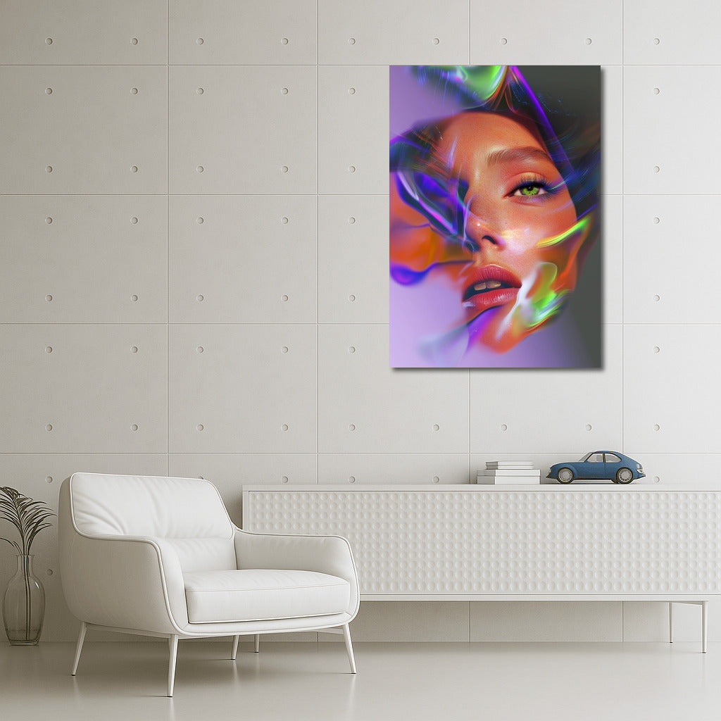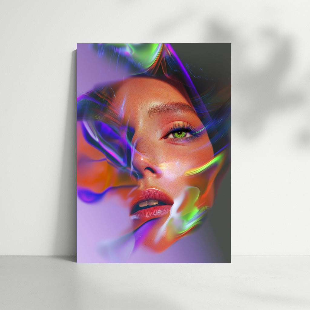 Bright poster with a mysterious girl and abstract flowers. Modern wall art for stylish interiors. See more from the collection: Mixed Wall Art