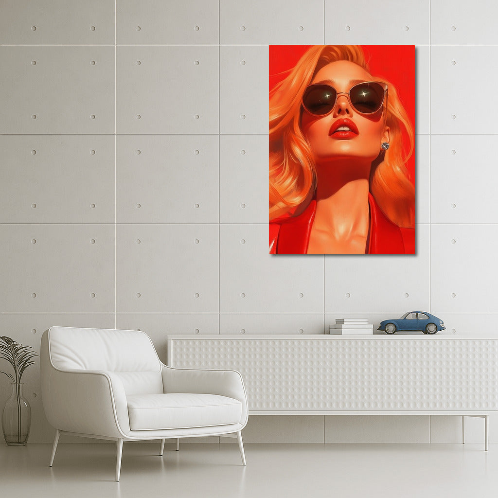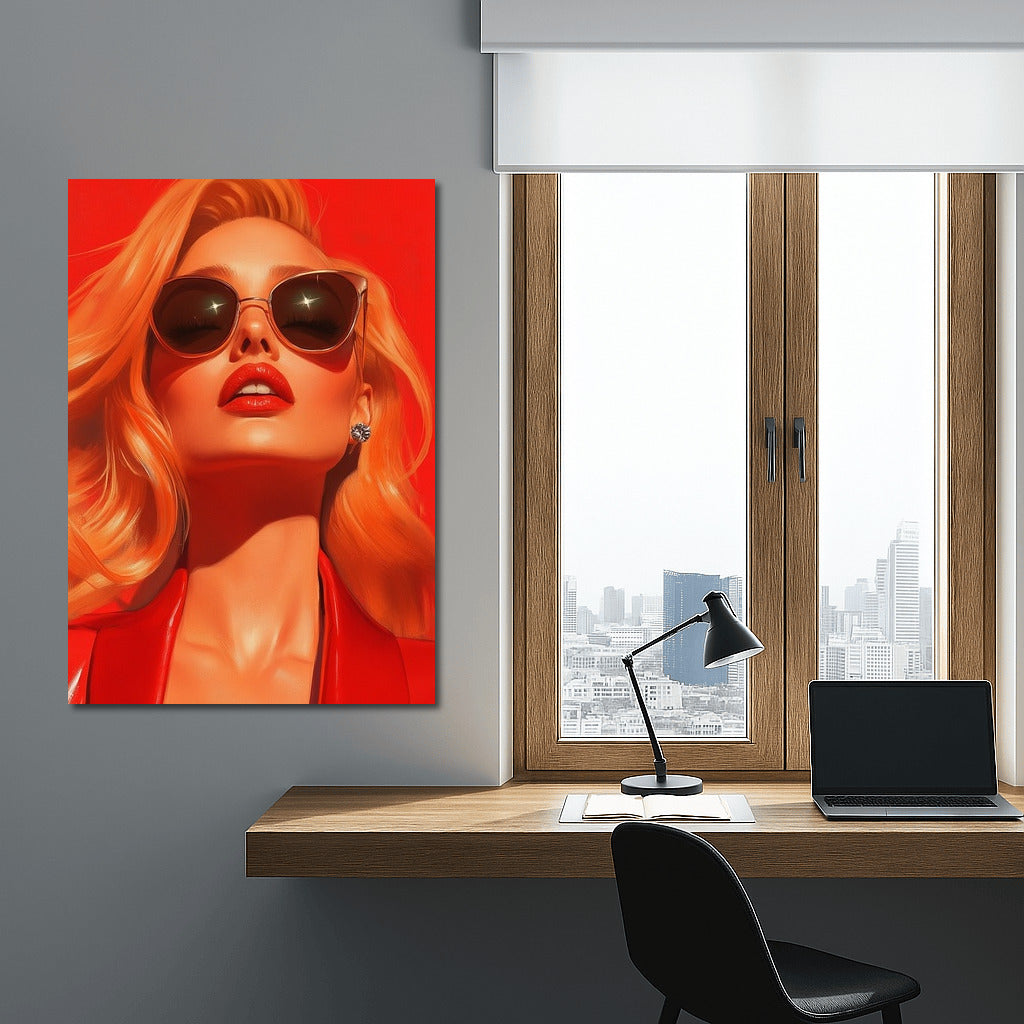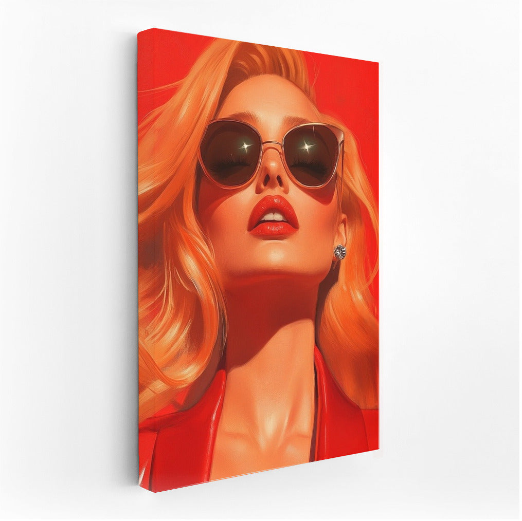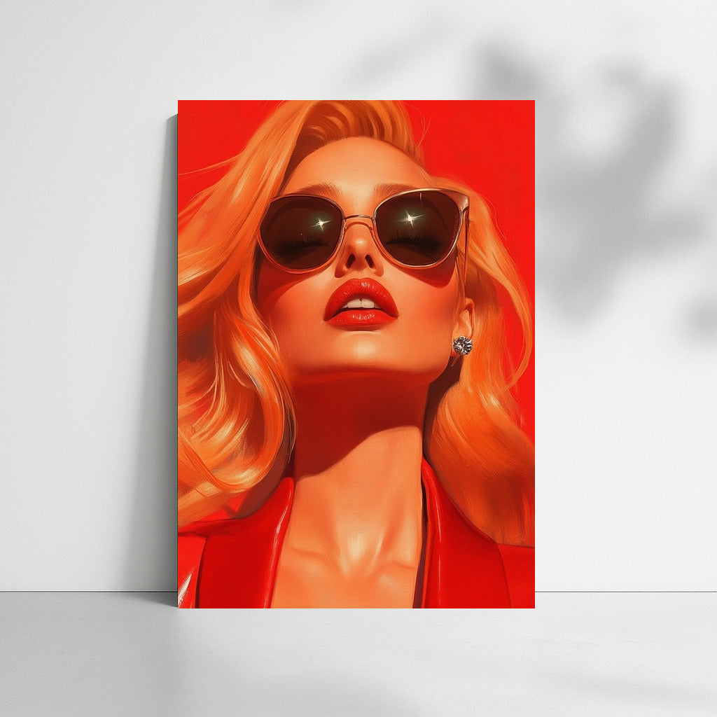 Spectacular wall art: a bright poster with a mysterious figure in glasses on a colorful background. Style and bold charm in one! See more from the collection: Wall Art with Women