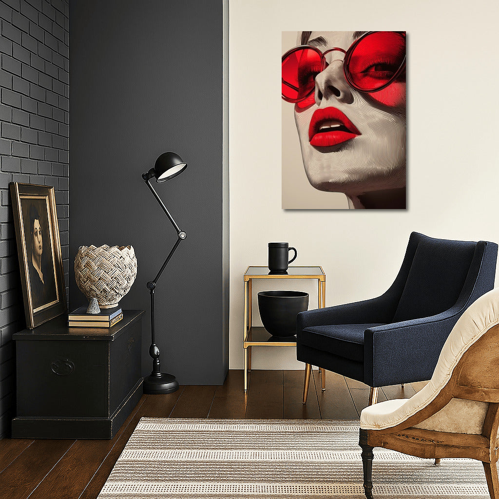 Abstract wall art: Mysterious lines, bright red glasses and lips create a dramatic accent in your space. See more from the collection: Mixed Wall Art