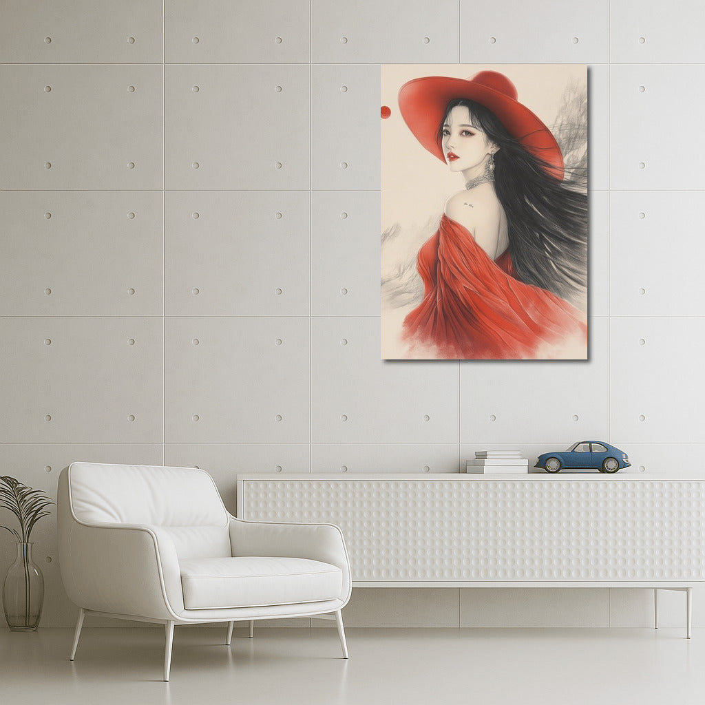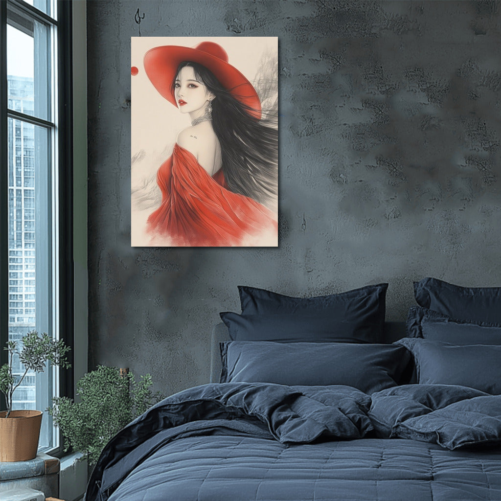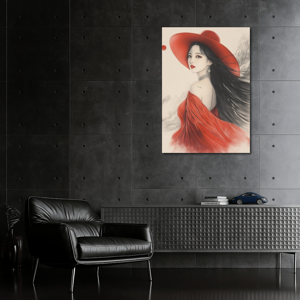 An elegant painting: a mysterious figure in red against a natural backdrop. This poster will become a bright accent in your interior. See more from the collection: Anime & Manga genres Art