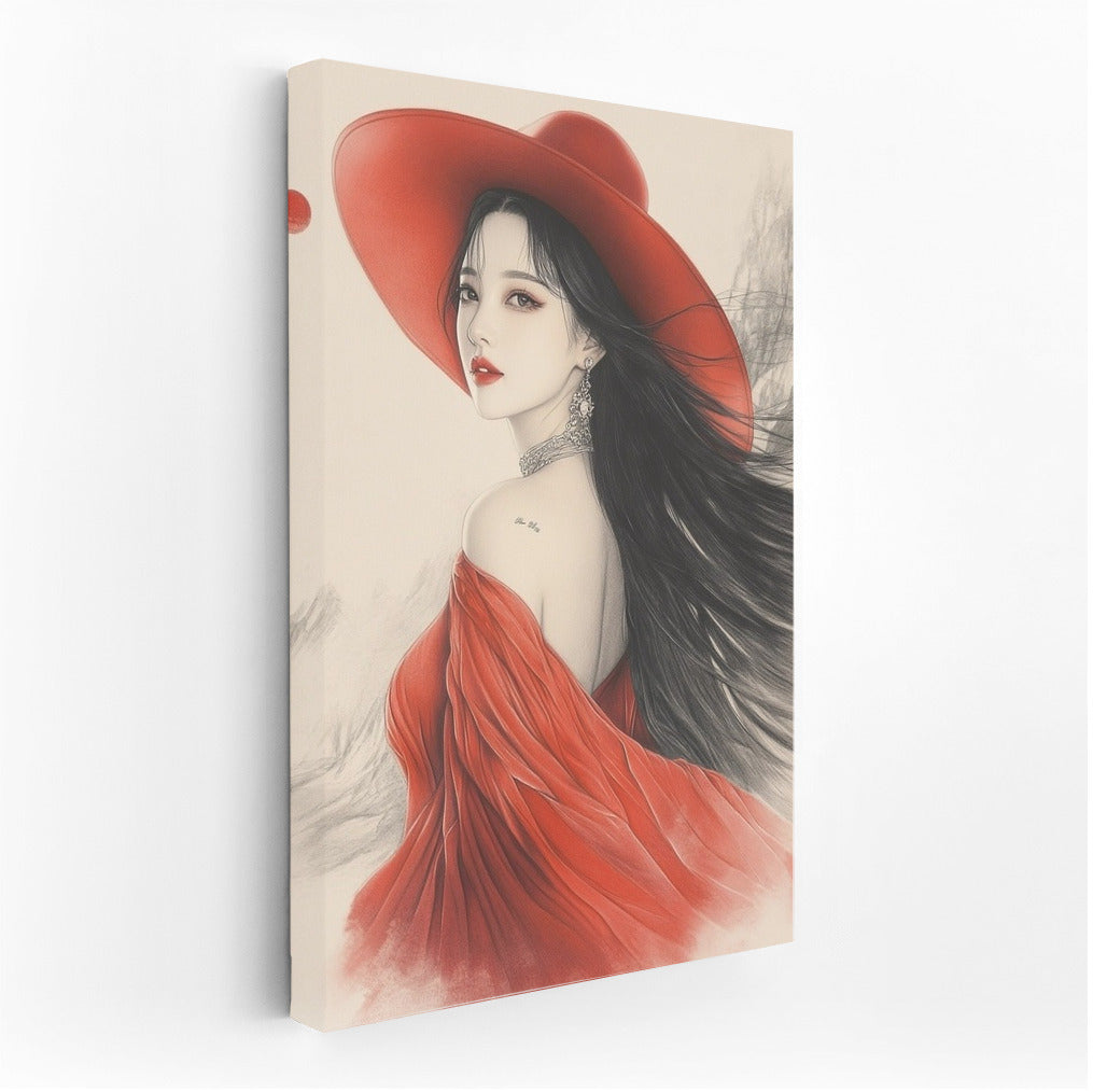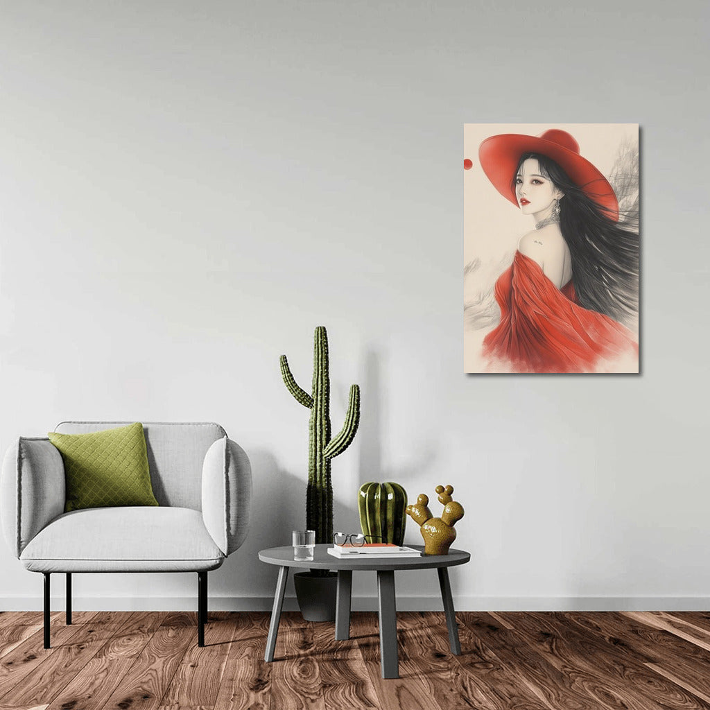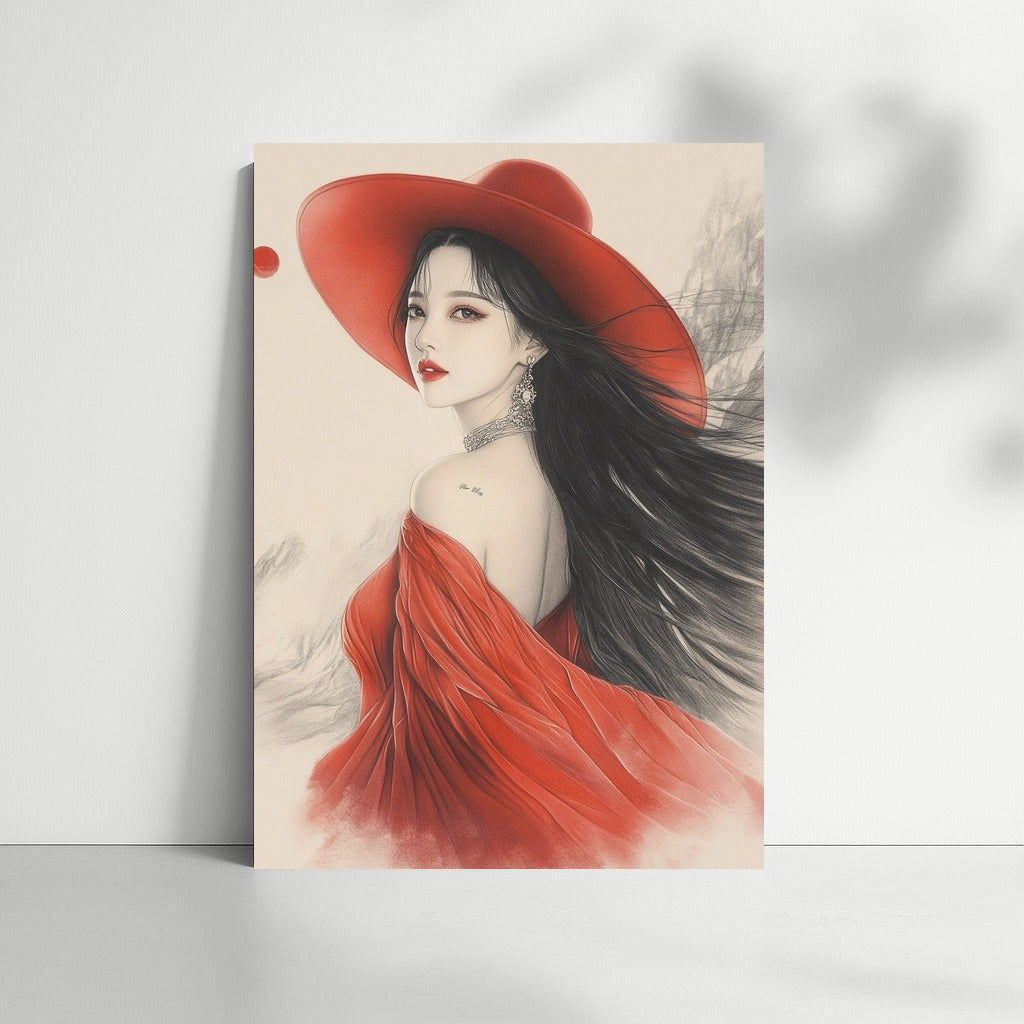 An elegant painting: a mysterious figure in red against a natural backdrop. This poster will become a bright accent in your interior. See more from the collection: Anime & Manga genres Art