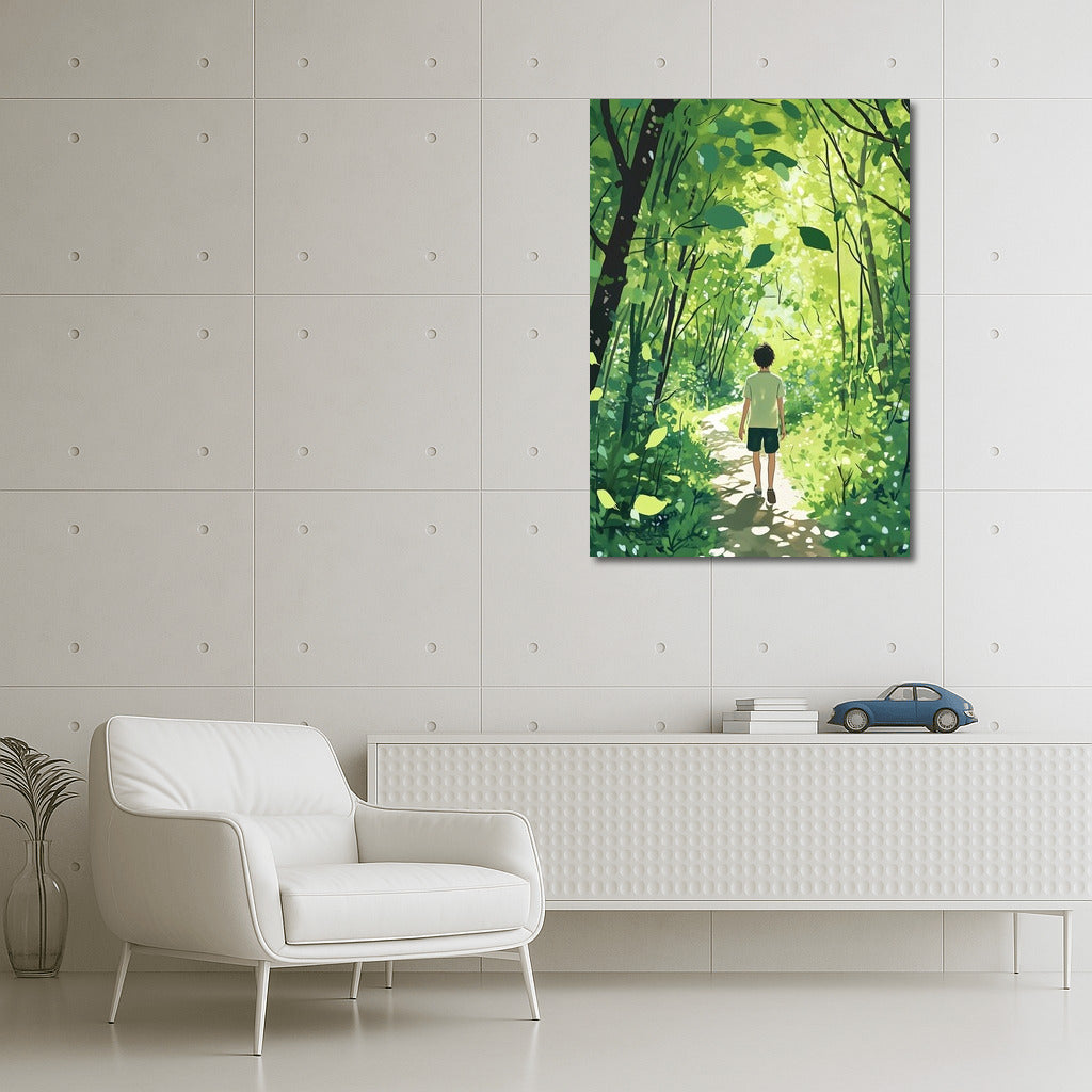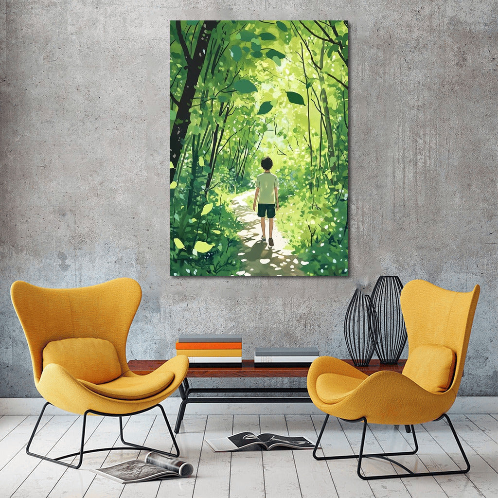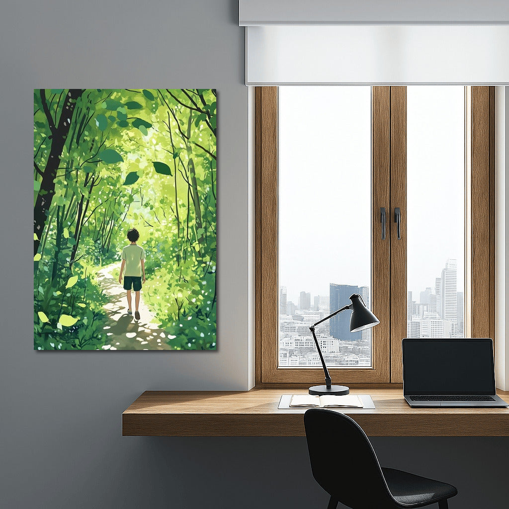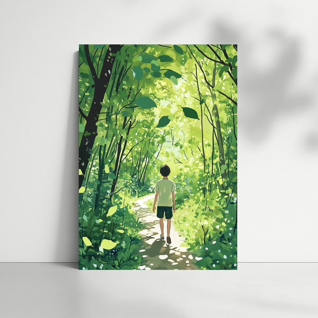 Immerse yourself in the world of nature with this paintingsque poster: a mysterious figure on a path surrounded by greenery. Wall art for the soul. See more from the collection: Anime & Manga genres Art