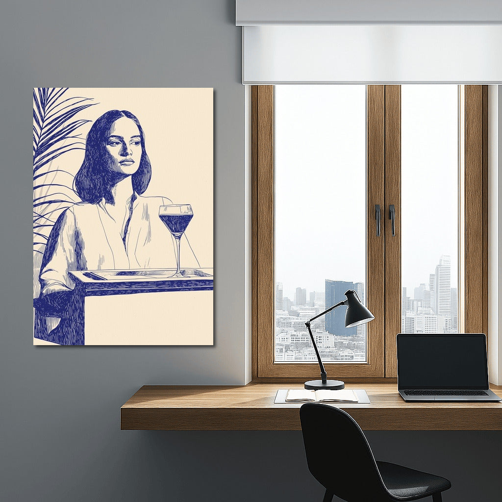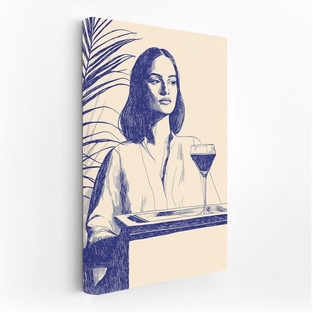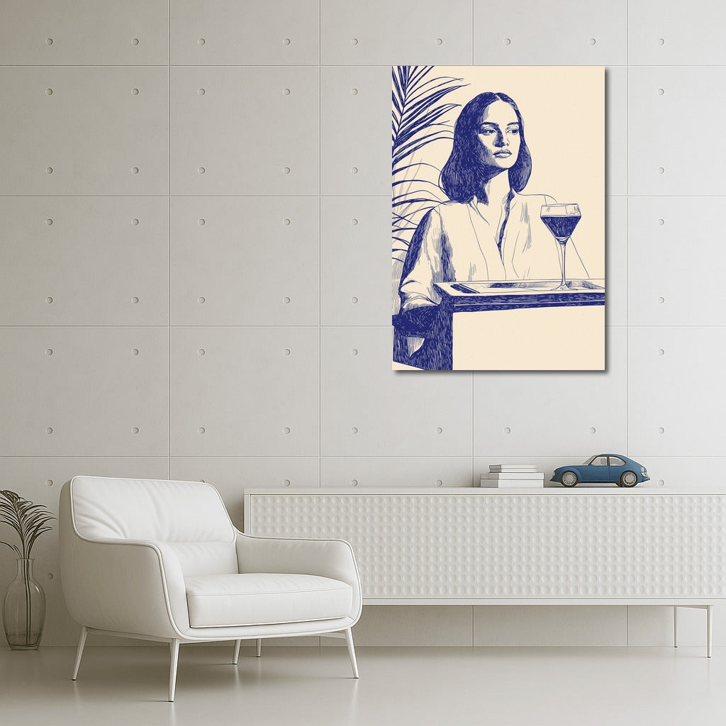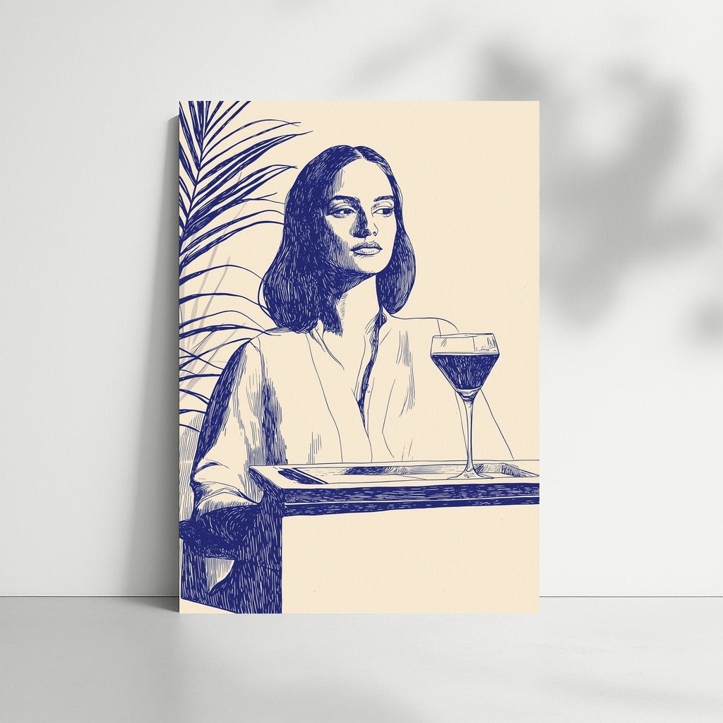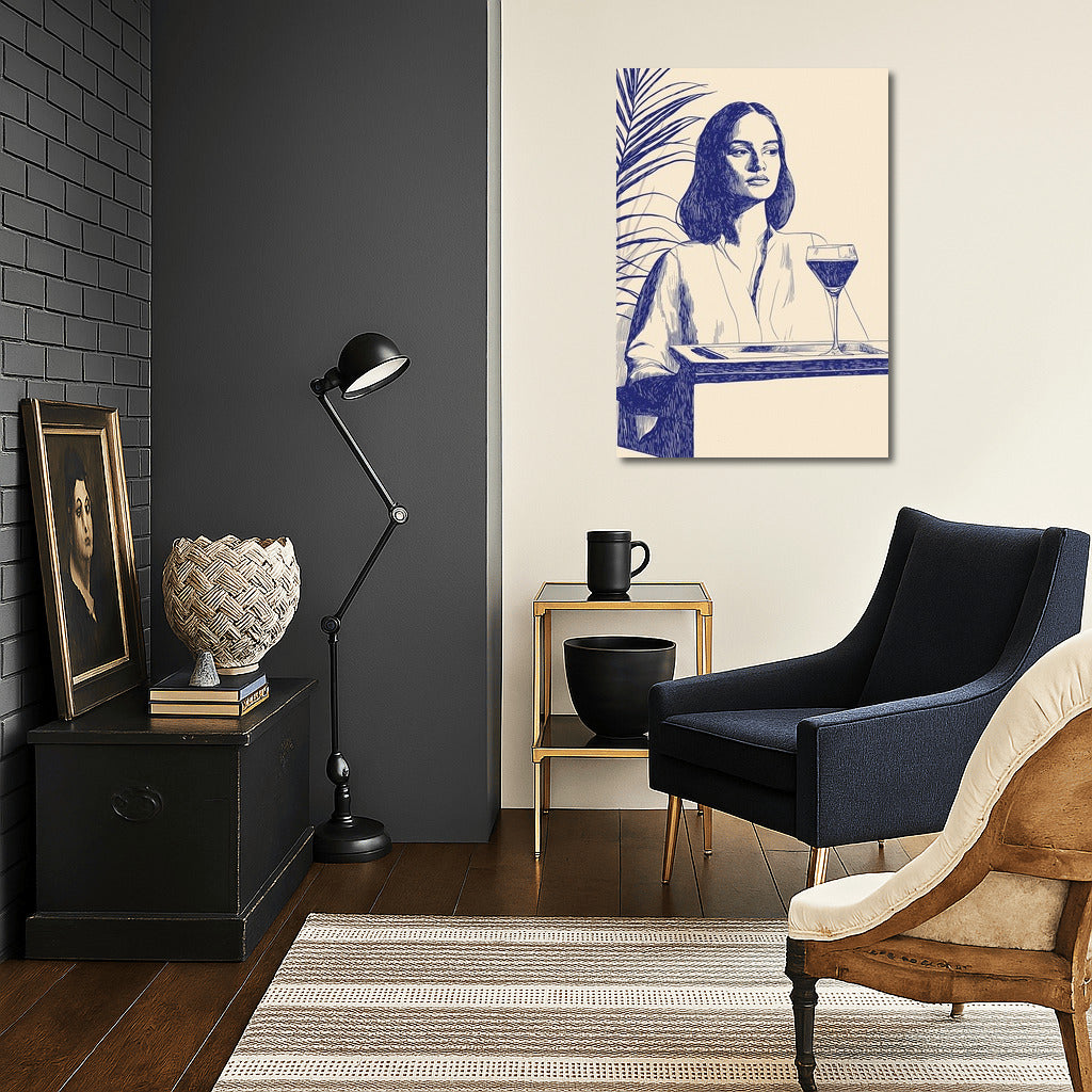 A stylish poster for your interior: a mysterious figure with a glass of wine will add elegance and sophistication to your space. See more from the collection: Mixed Wall Art