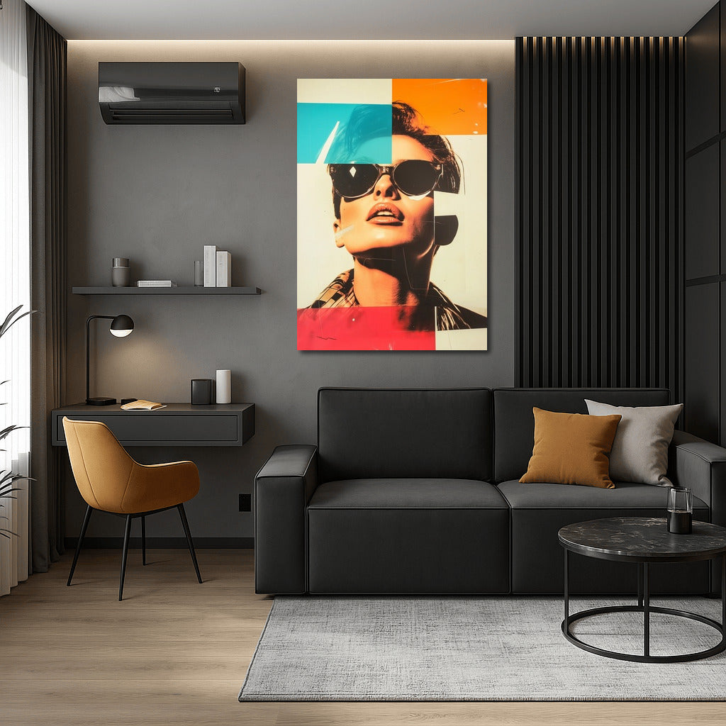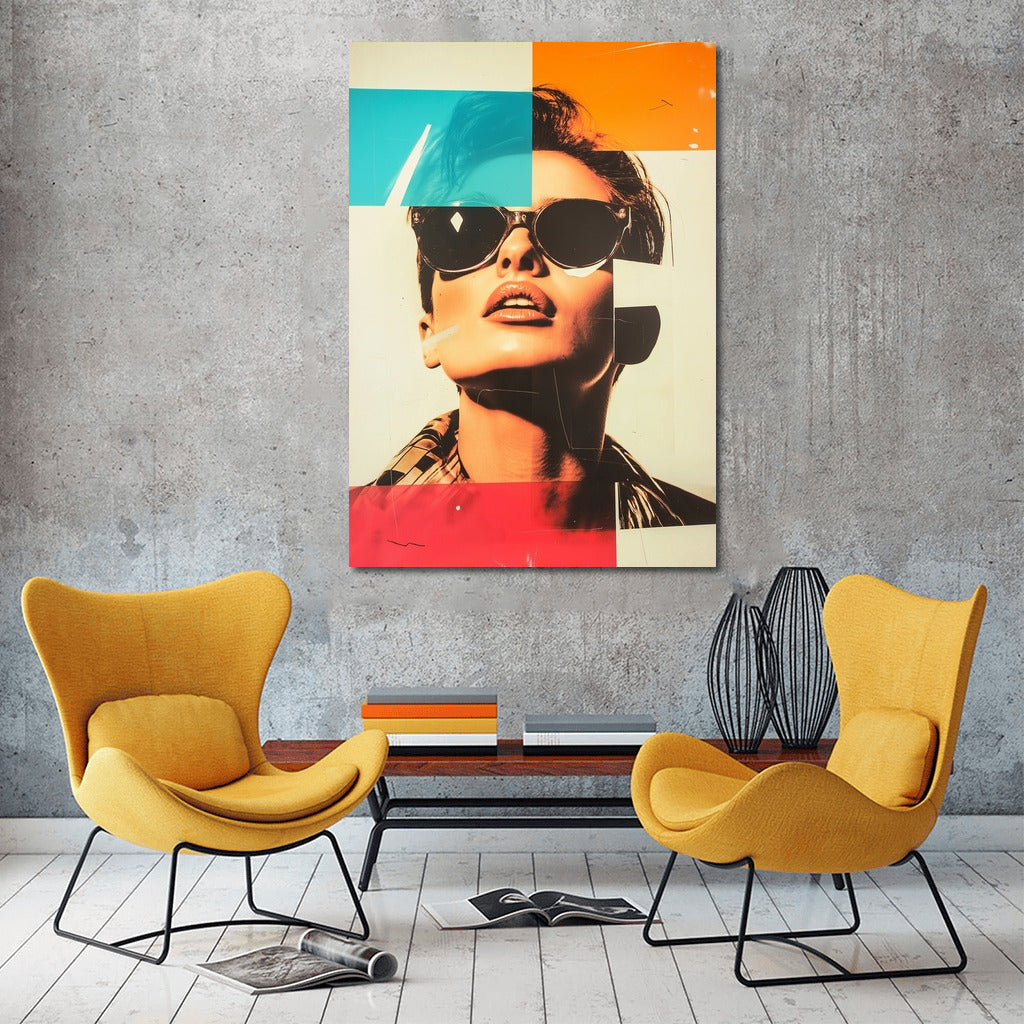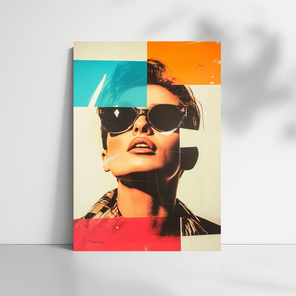 Modern pop art poster: mysterious figure with glasses, bright color blocks bring your wall to life. Wall art of the future! See more from the collection: Mixed Wall Art
