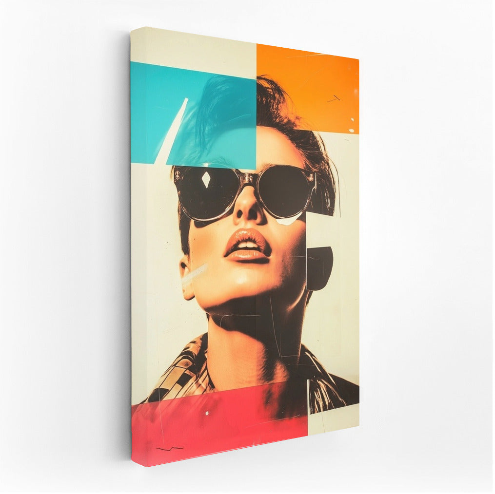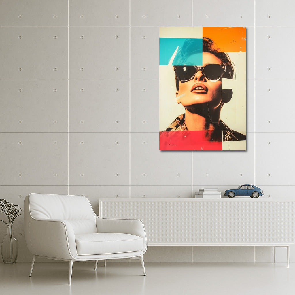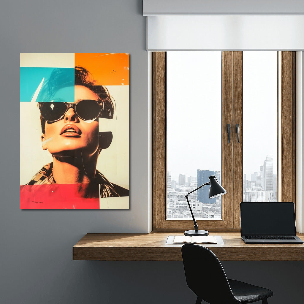 Modern pop art poster: mysterious figure with glasses, bright color blocks bring your wall to life. Wall art of the future! See more from the collection: Mixed Wall Art
