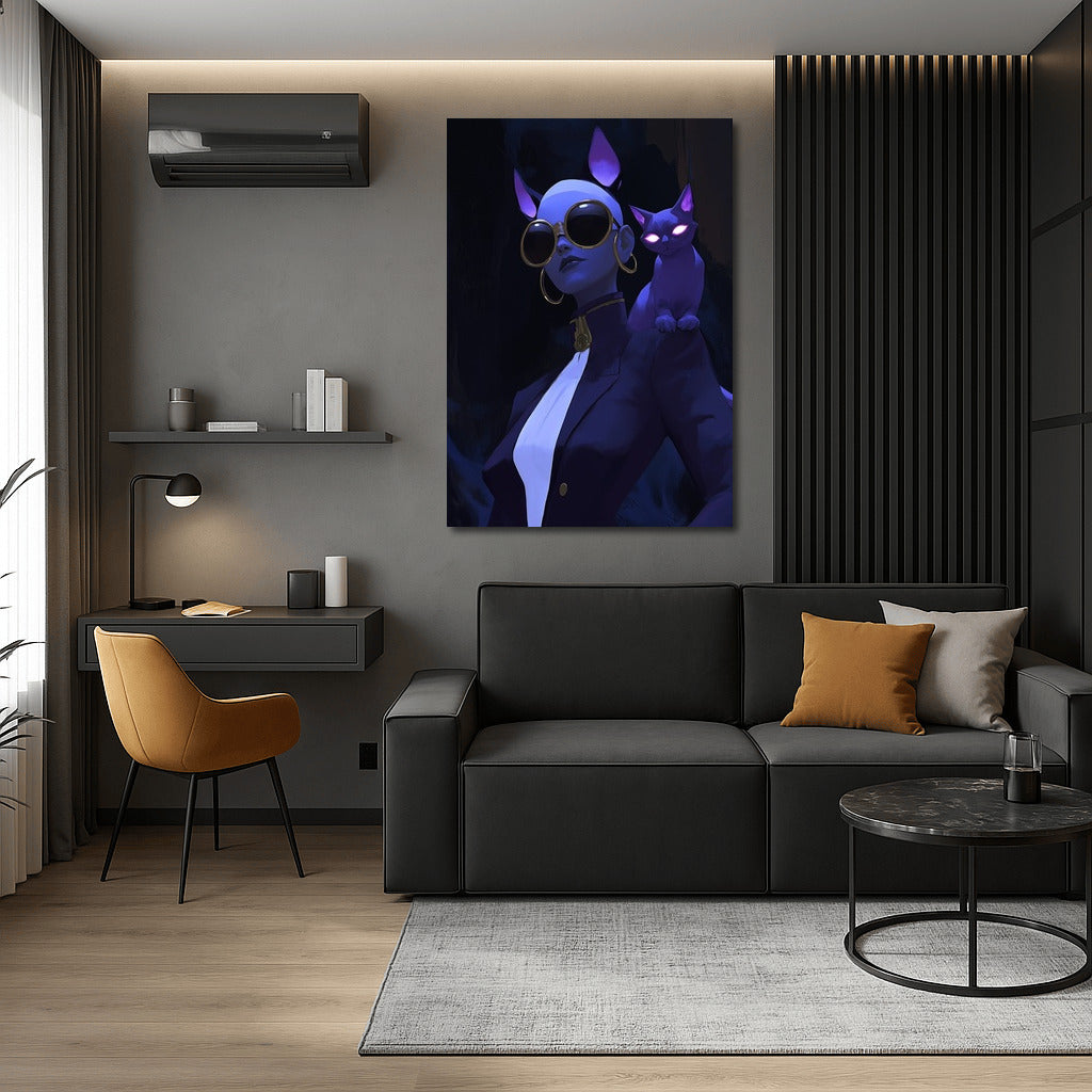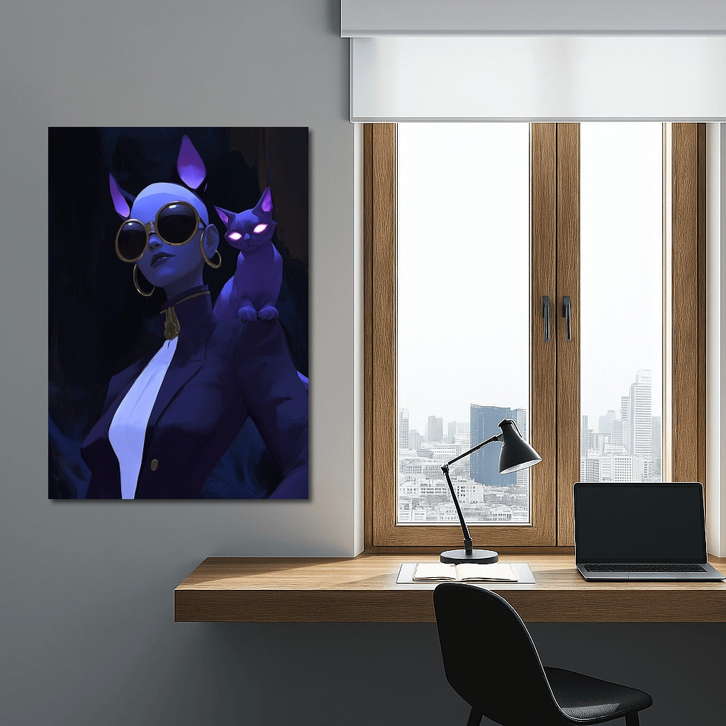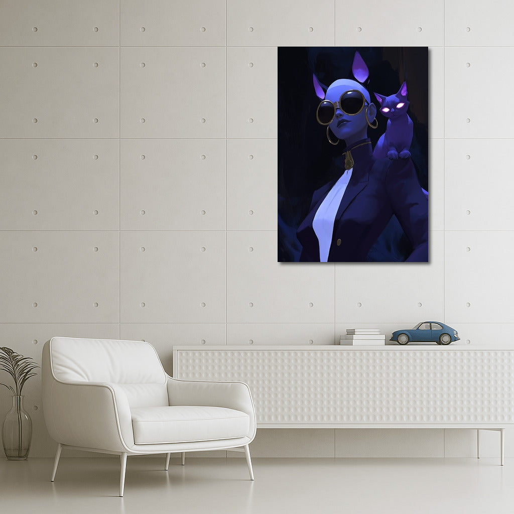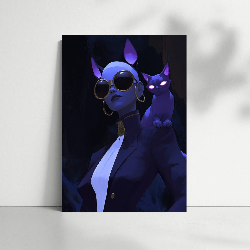A mysterious figure and her mysterious cat. A stylish poster that adds chic and fantasy to your wall art. See more from the collection: Animals Art