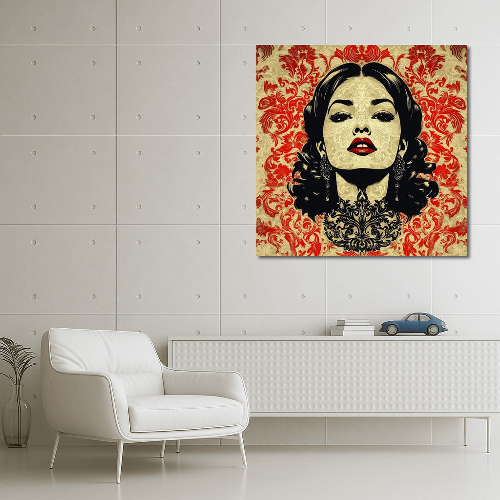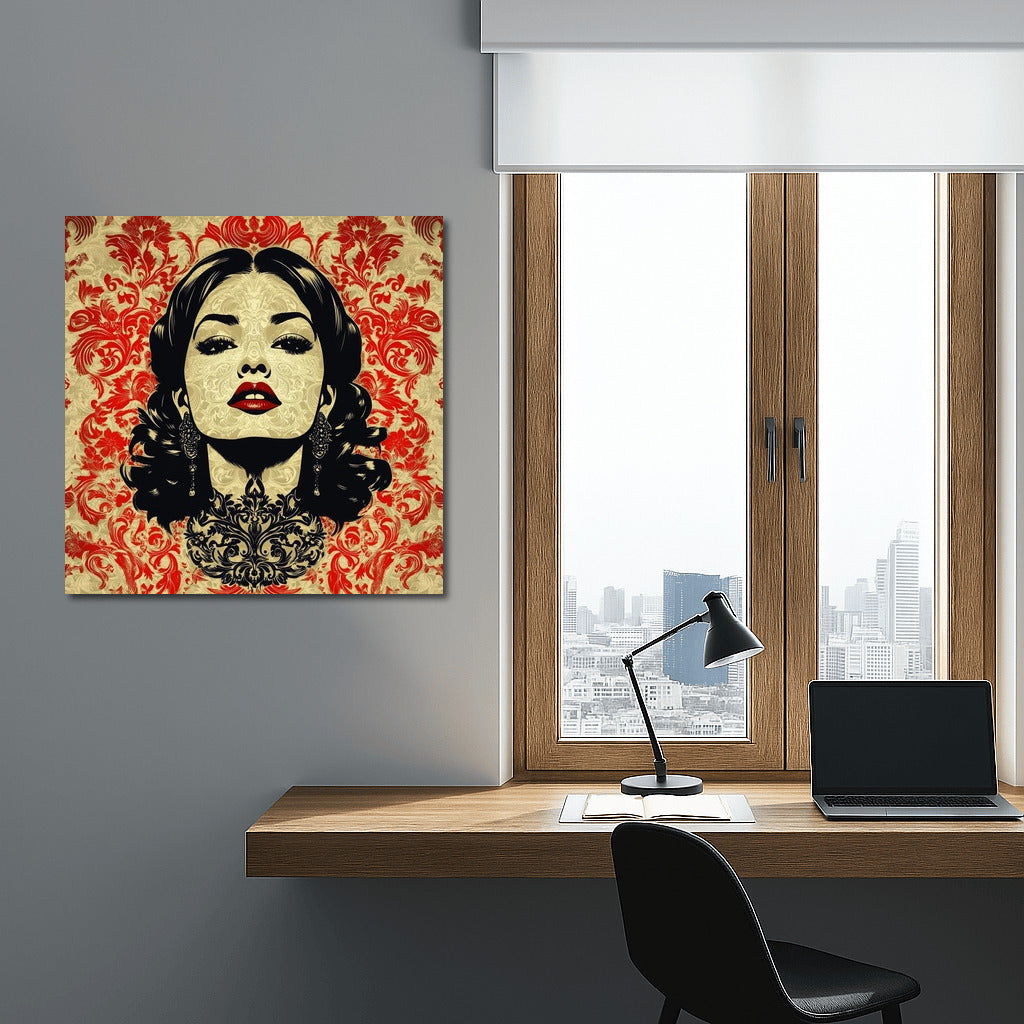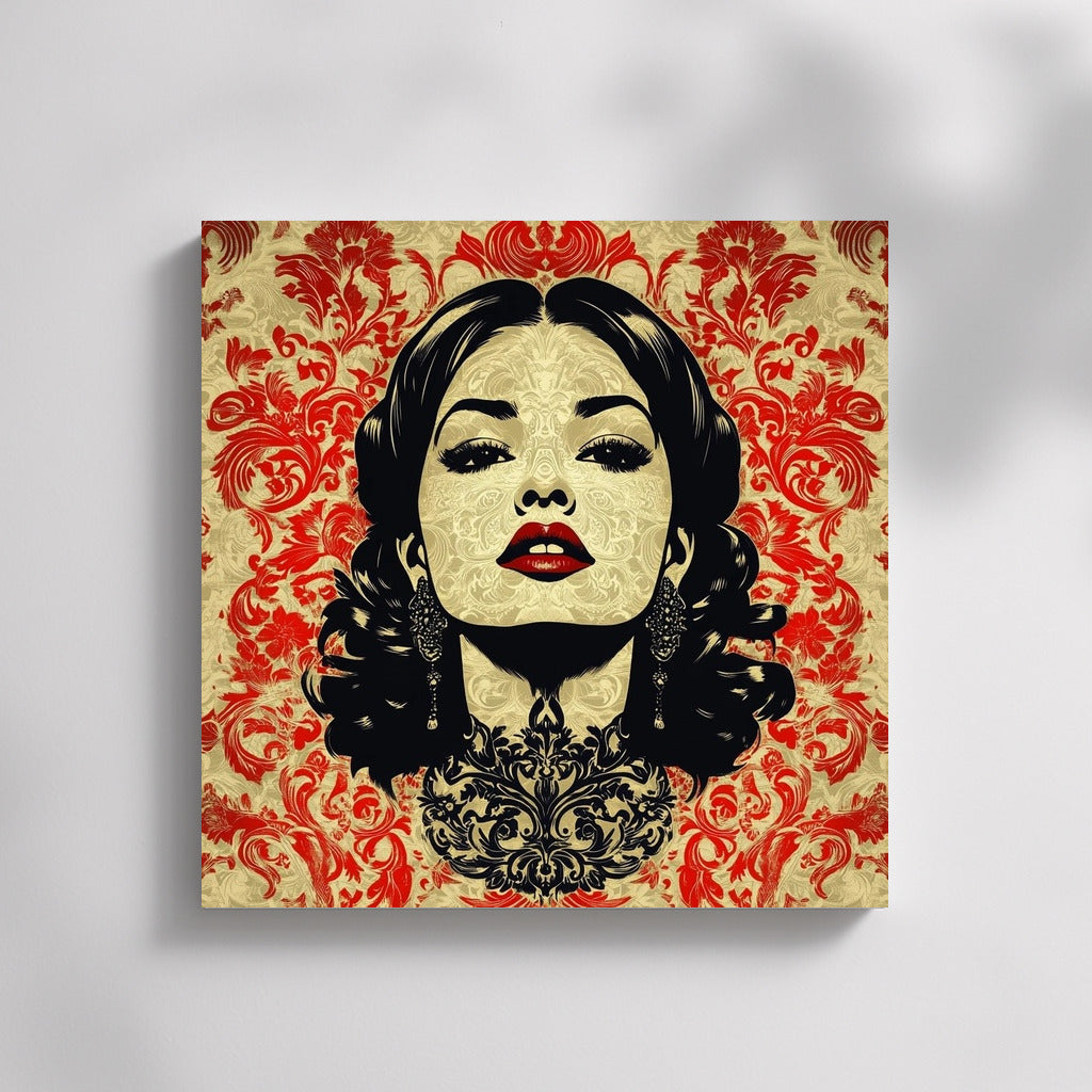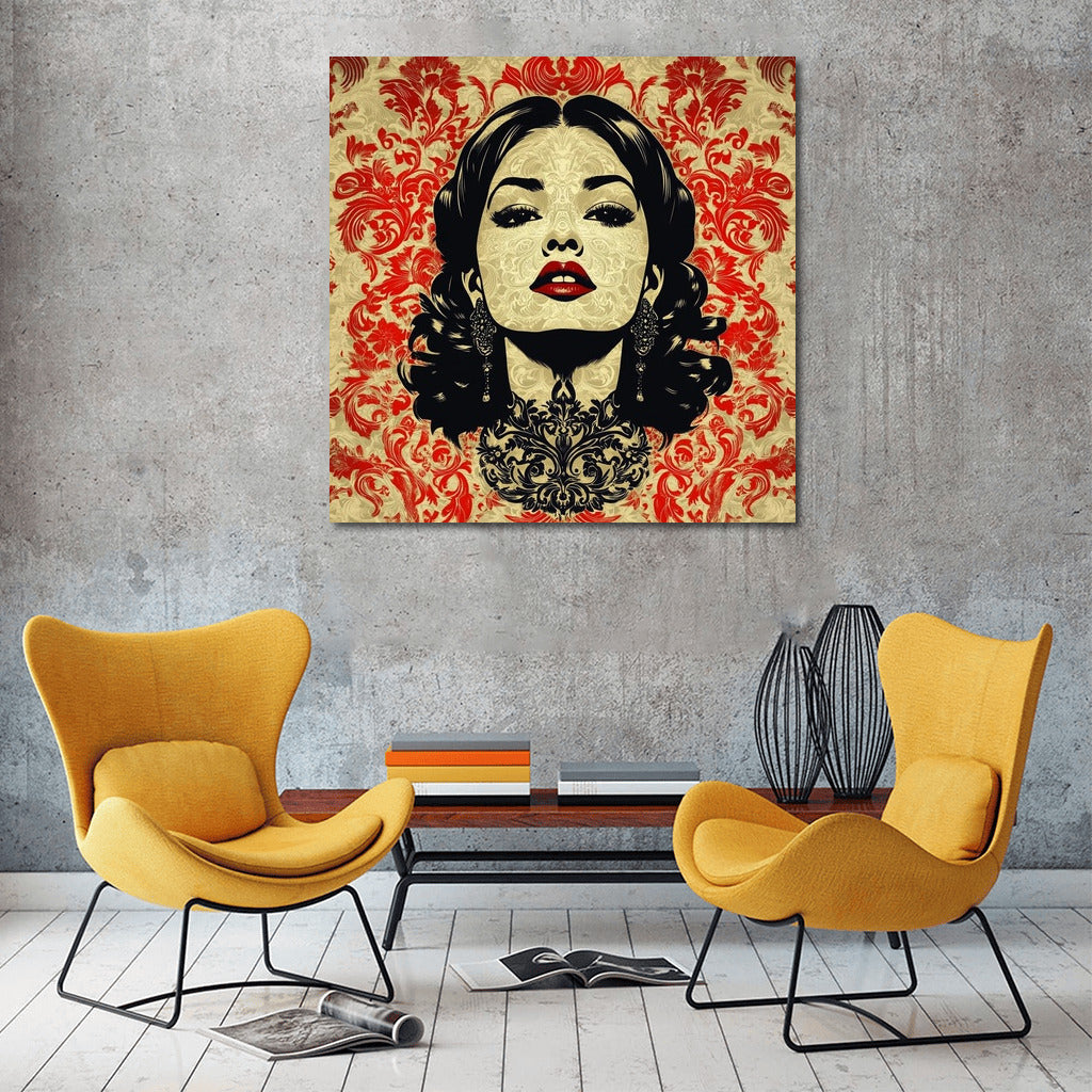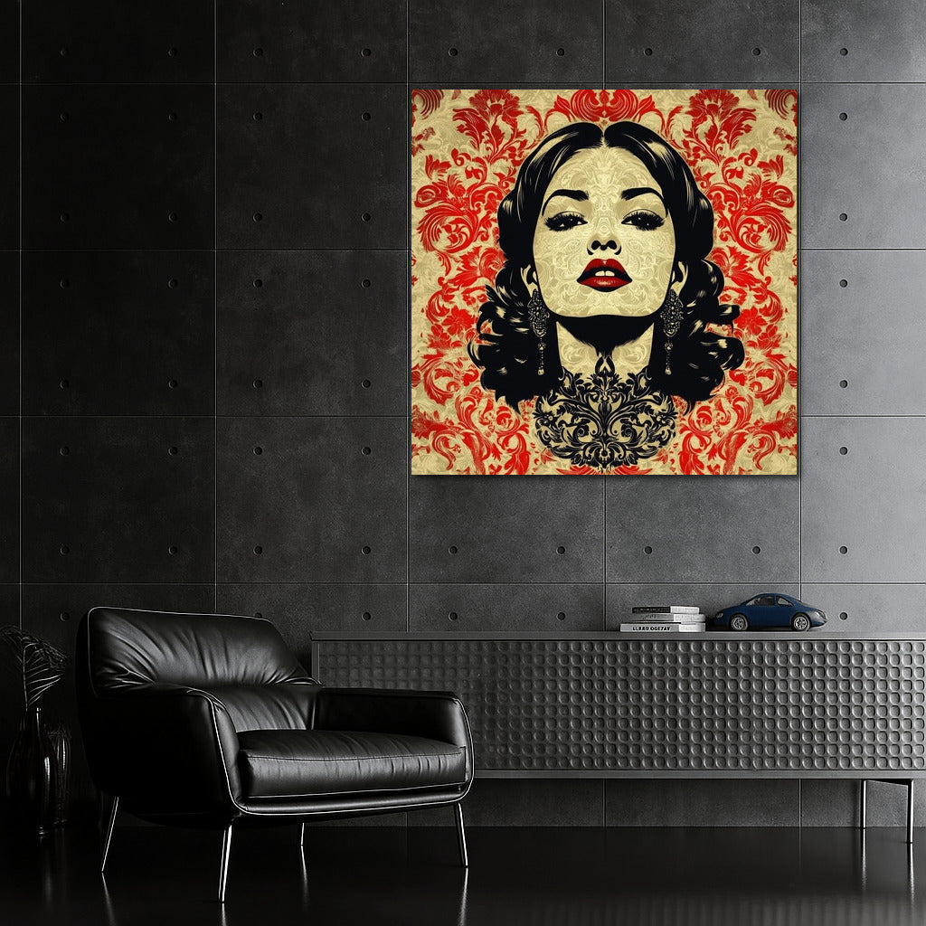 Elegance and Art Nouveau: a poster with a mysterious image in luxurious red and gold patterns will enliven any space. See more from the collection: Mixed Wall Art