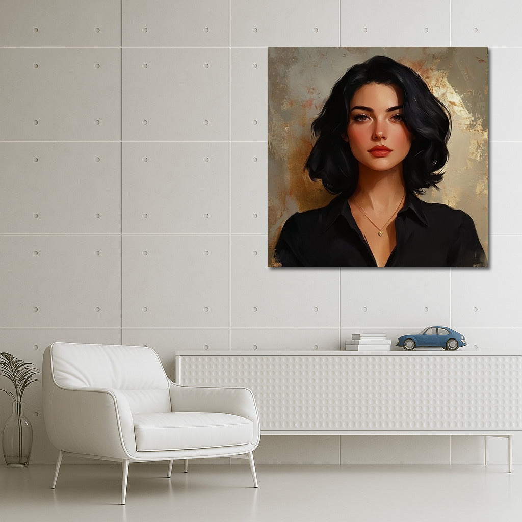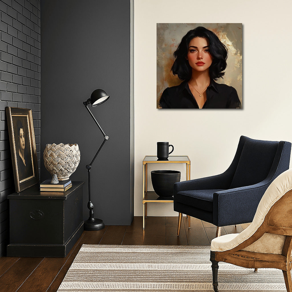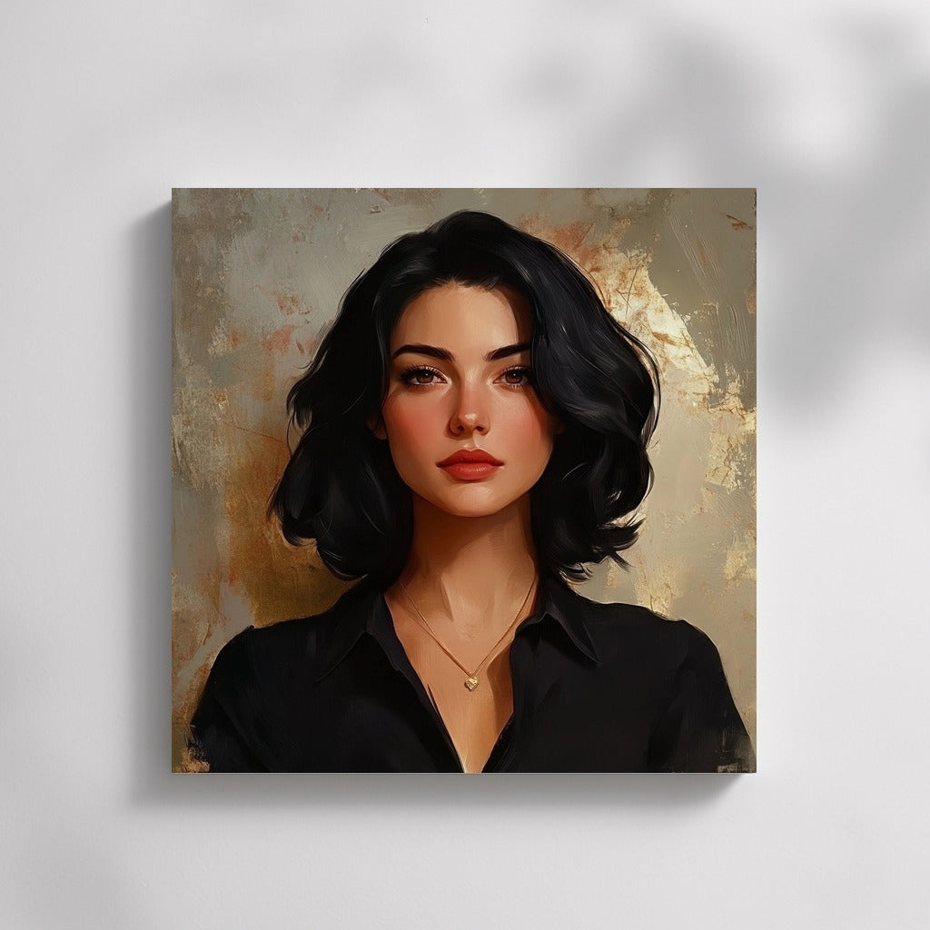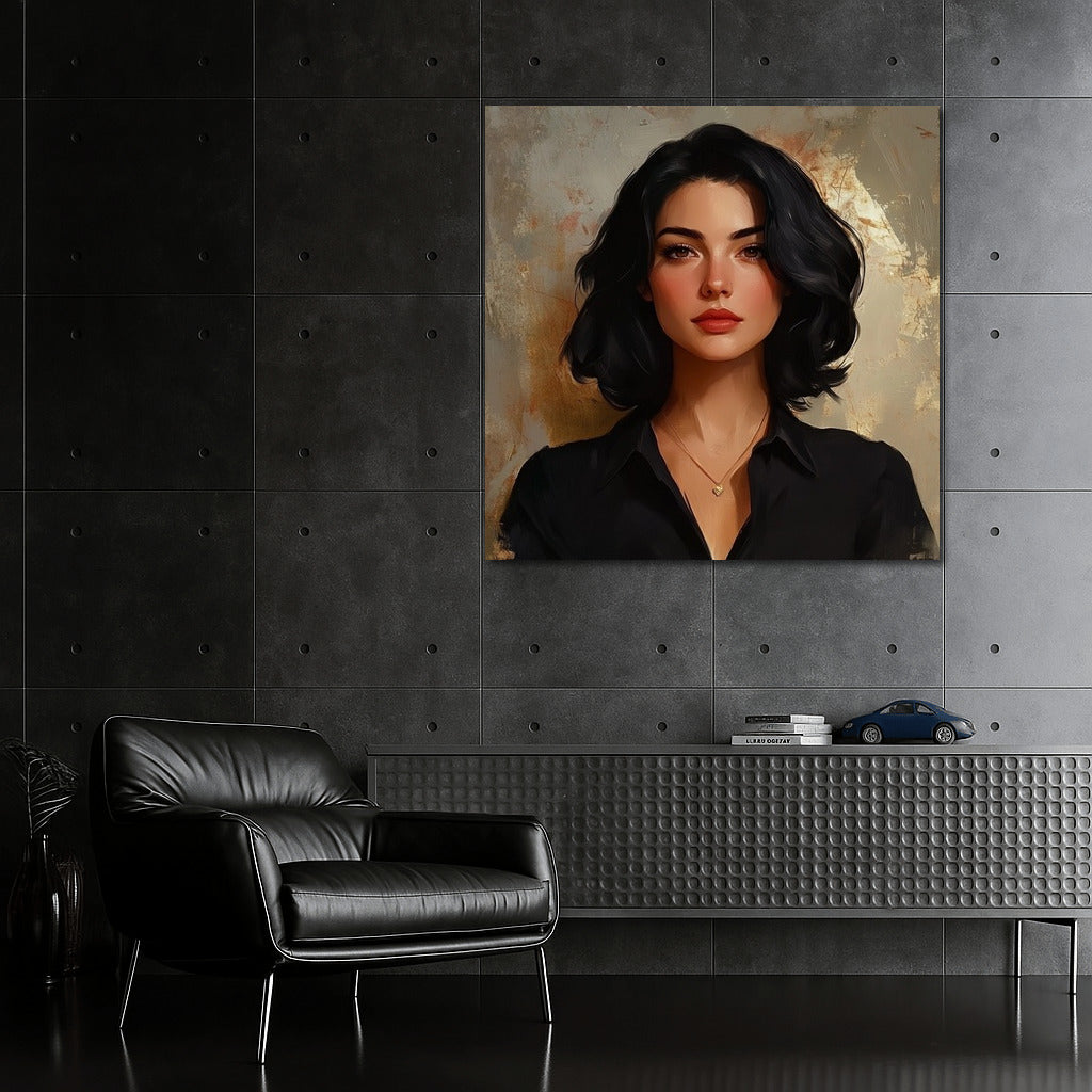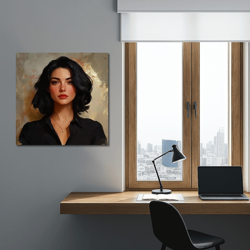 Portrait in soft tones: mysterious look and tenderness. The perfect poster for your space. Wall art as a reflection of the soul. See more from the collection: Wall Art with Women