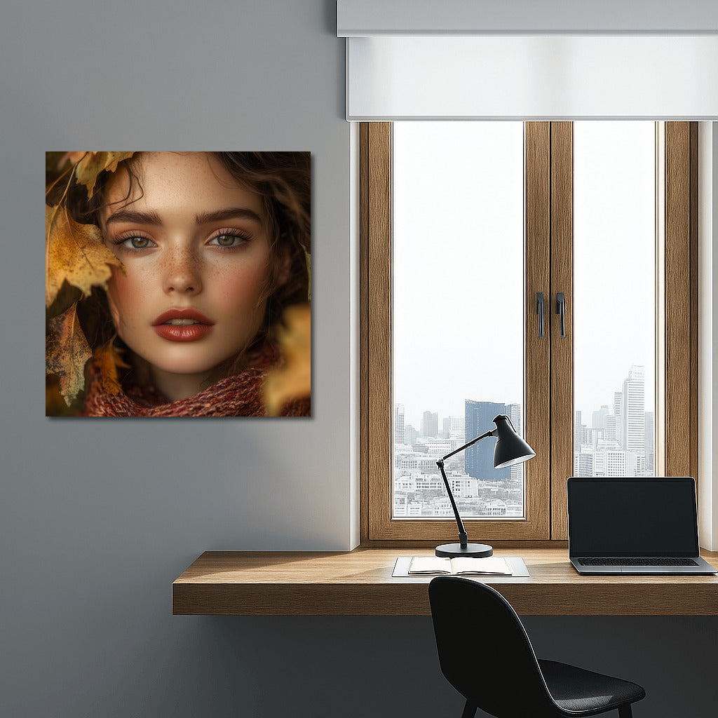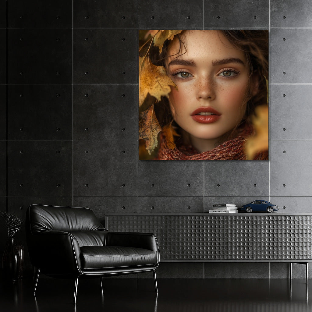 Immerse yourself in the magic of autumn: this painting of a mysterious girl among the leaves will become the highlight of your wall art. See more from the collection: Wall Art with Women