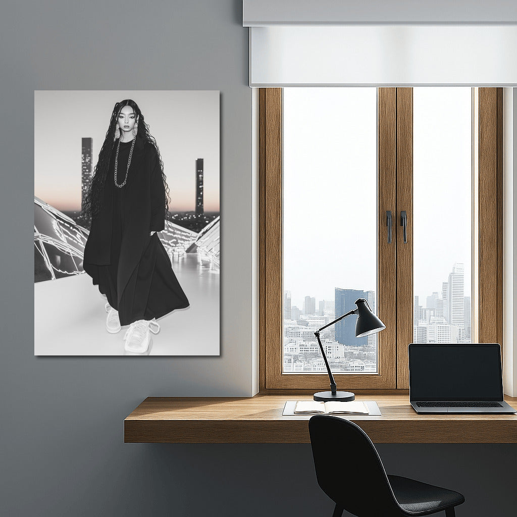 Explore the unique poster: a mysterious image with an architectural background. Modern wall art for your space! See more from the collection: Wall Art with Women
