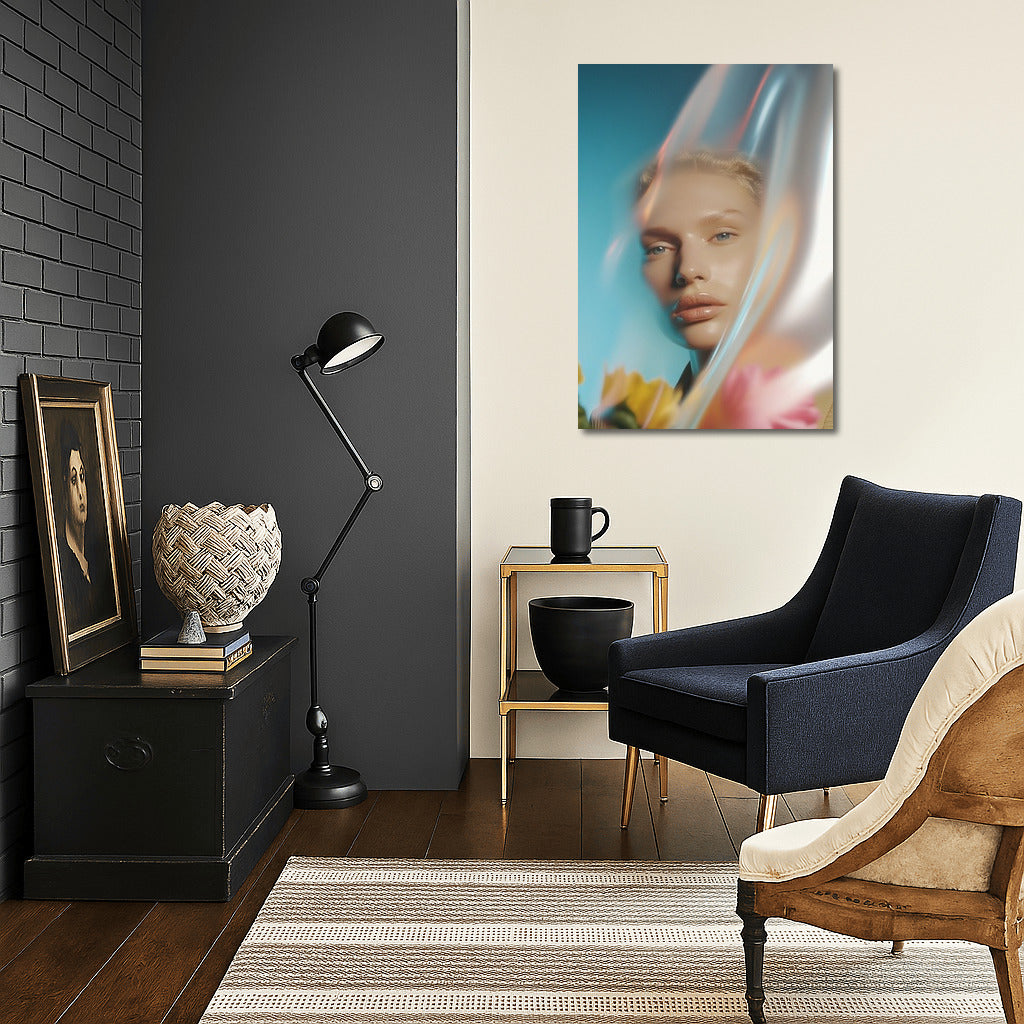 Ephemeral wall art: a mysterious look through muted shades and smooth lines. Your unique poster of coziness. See more from the collection: Wall Art with Women
