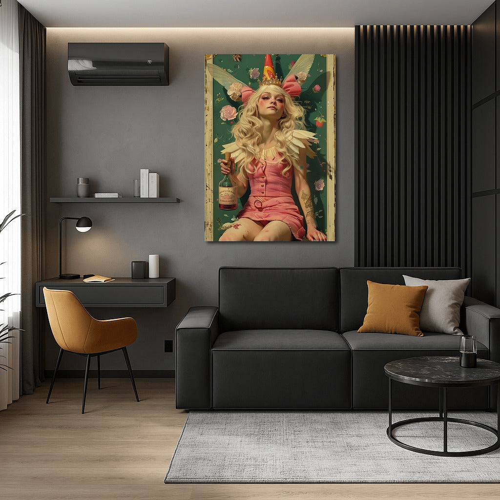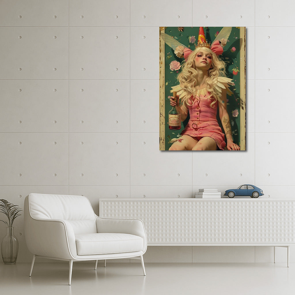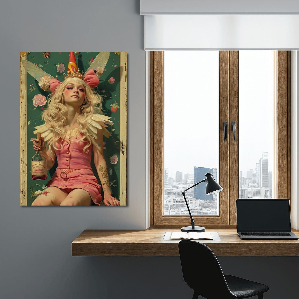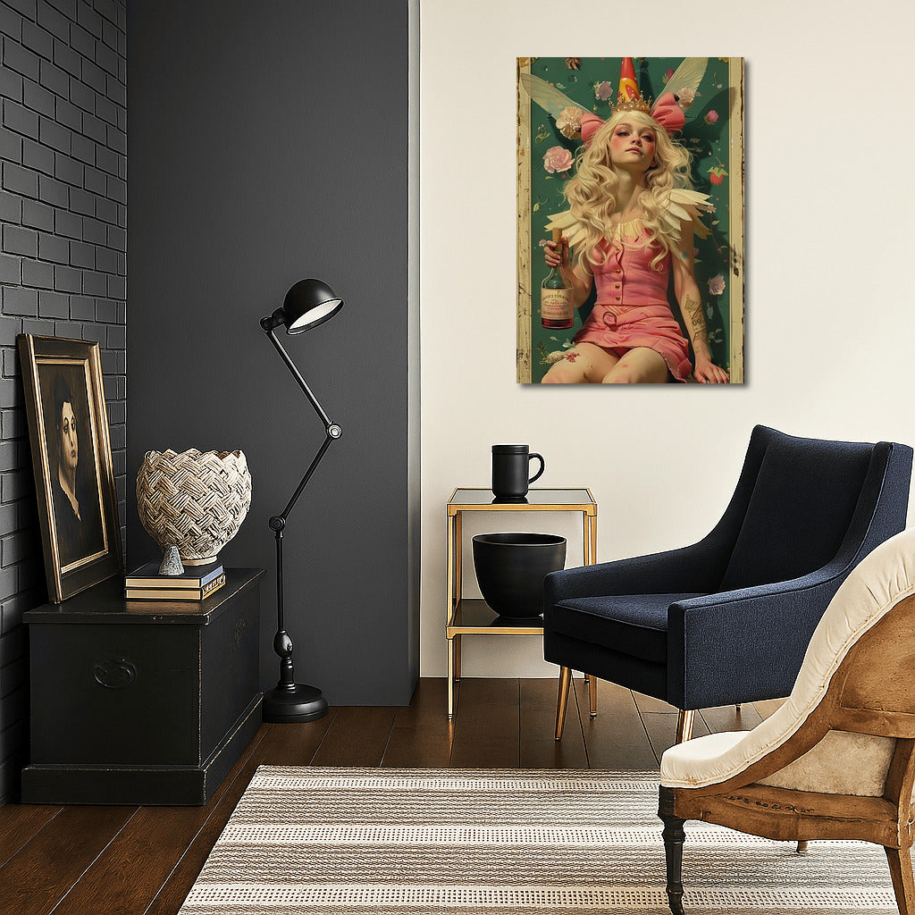 A charming poster of a mysterious fairy in pink, shrouded in magic and mystery. Add a twist to your wall art! See more from the collection: Horror Art