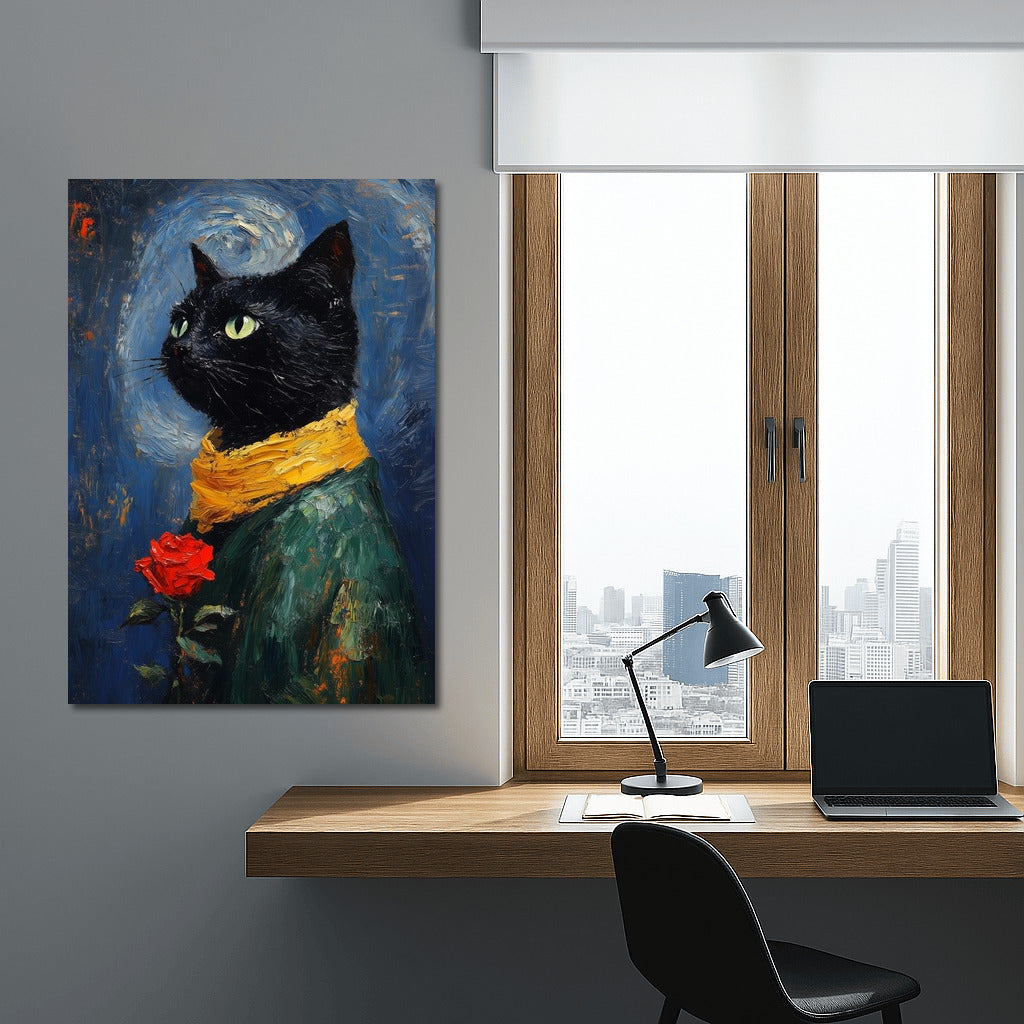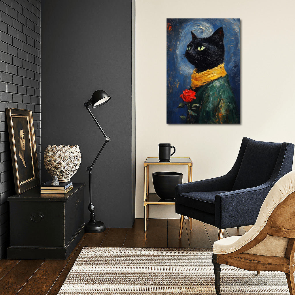 A rich palette and a mysterious cat with a rose make this painting an eye-catching and dream-inspiring wall art. See more from the collection: Animals Art