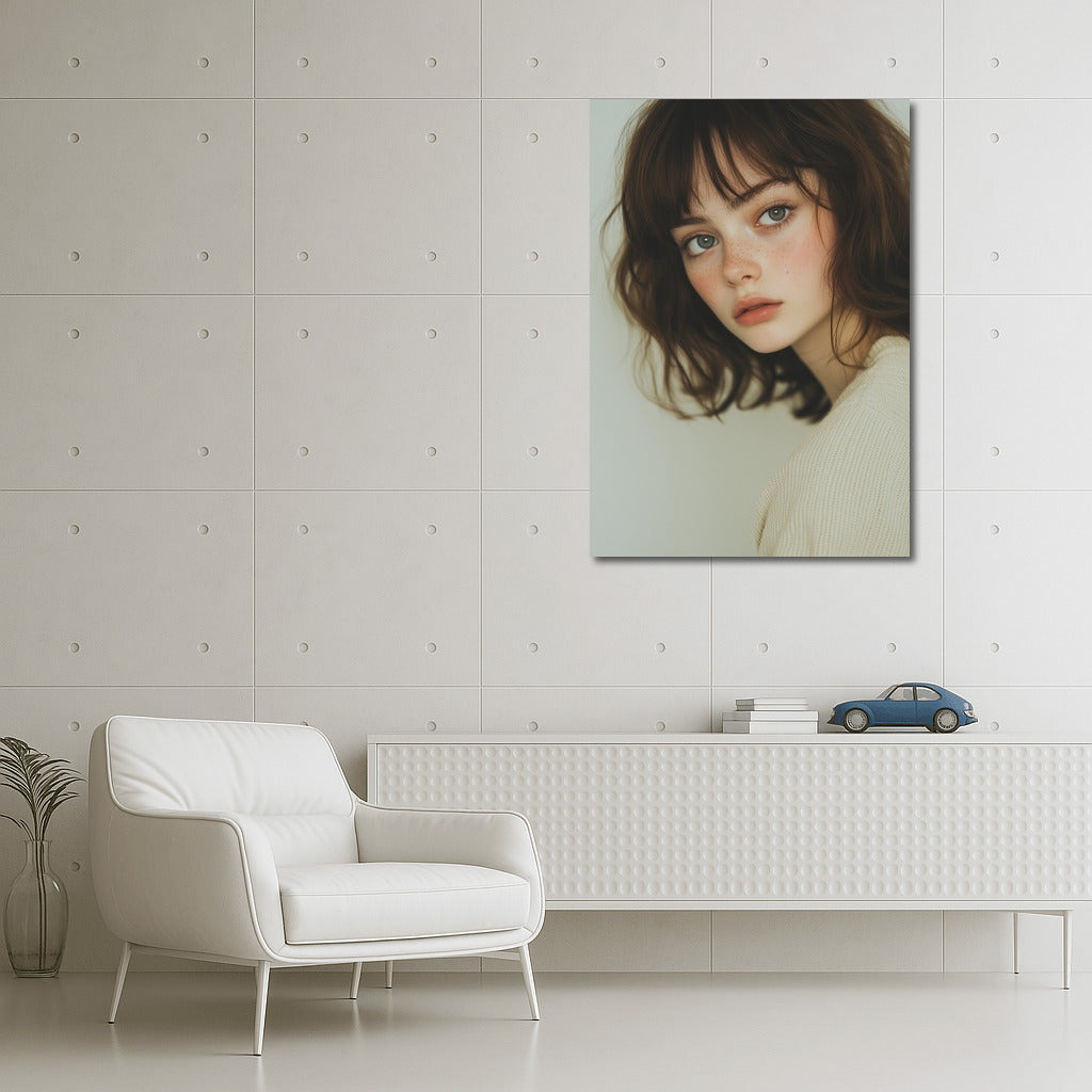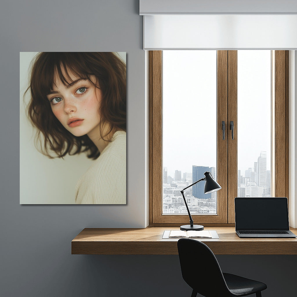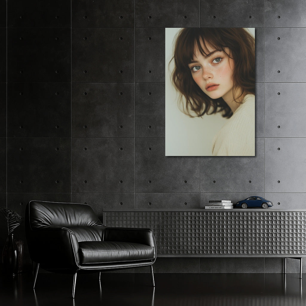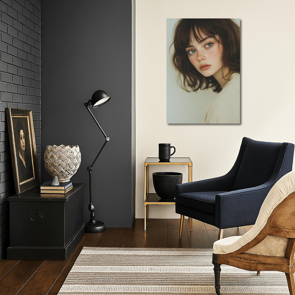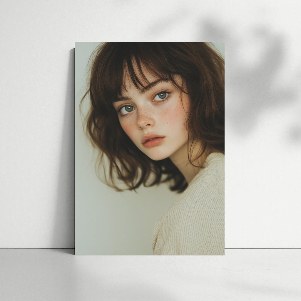 An elegant poster with a portrait where tenderness and mystery intertwine in every stroke. Wall art for inspiration and comfort. See more from the collection: Wall Art with Women