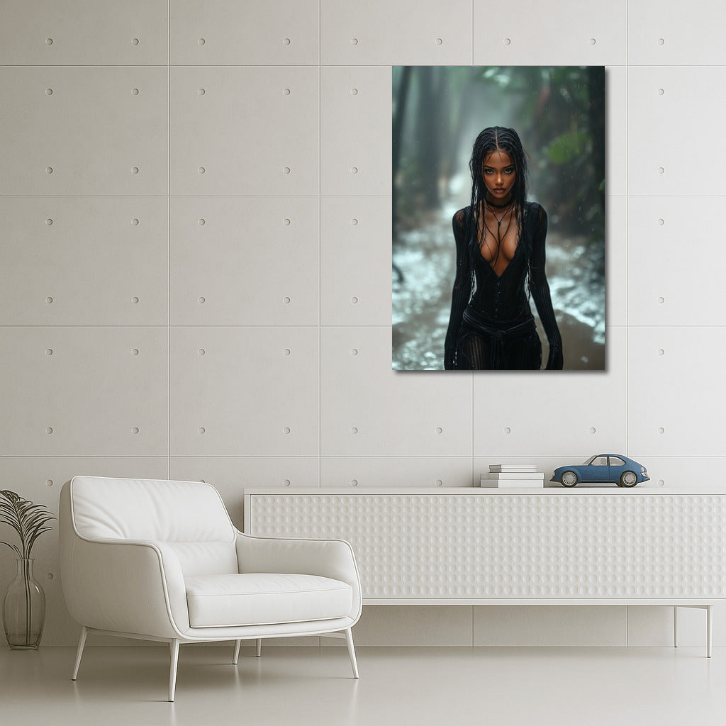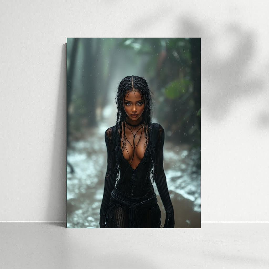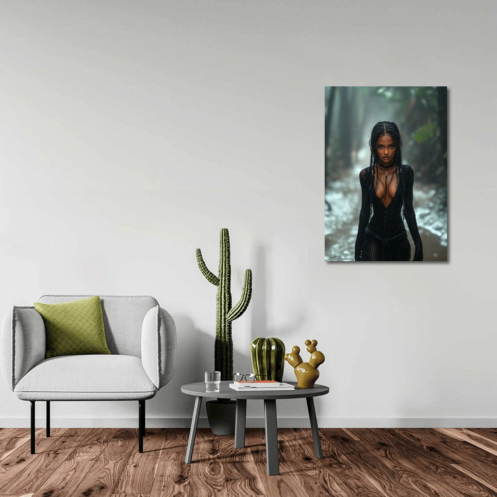 Amazing wall art: a mysterious figure in a tropical forest. This poster will add intrigue and style to your interior! See more from the collection: Wall Art with Women