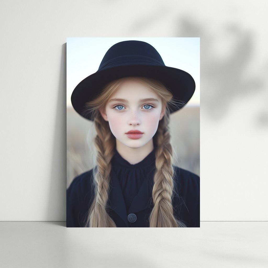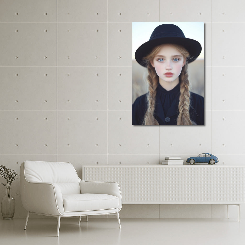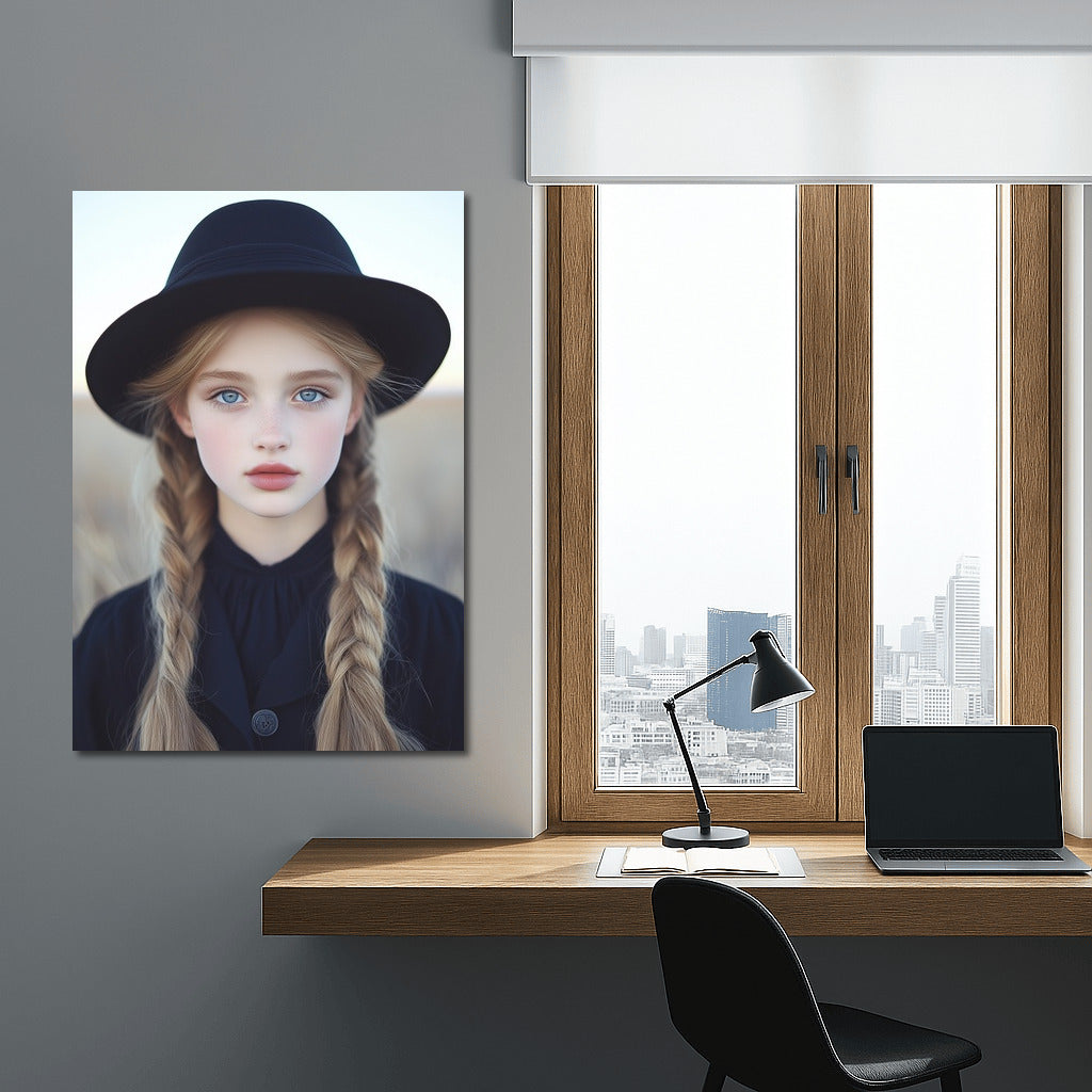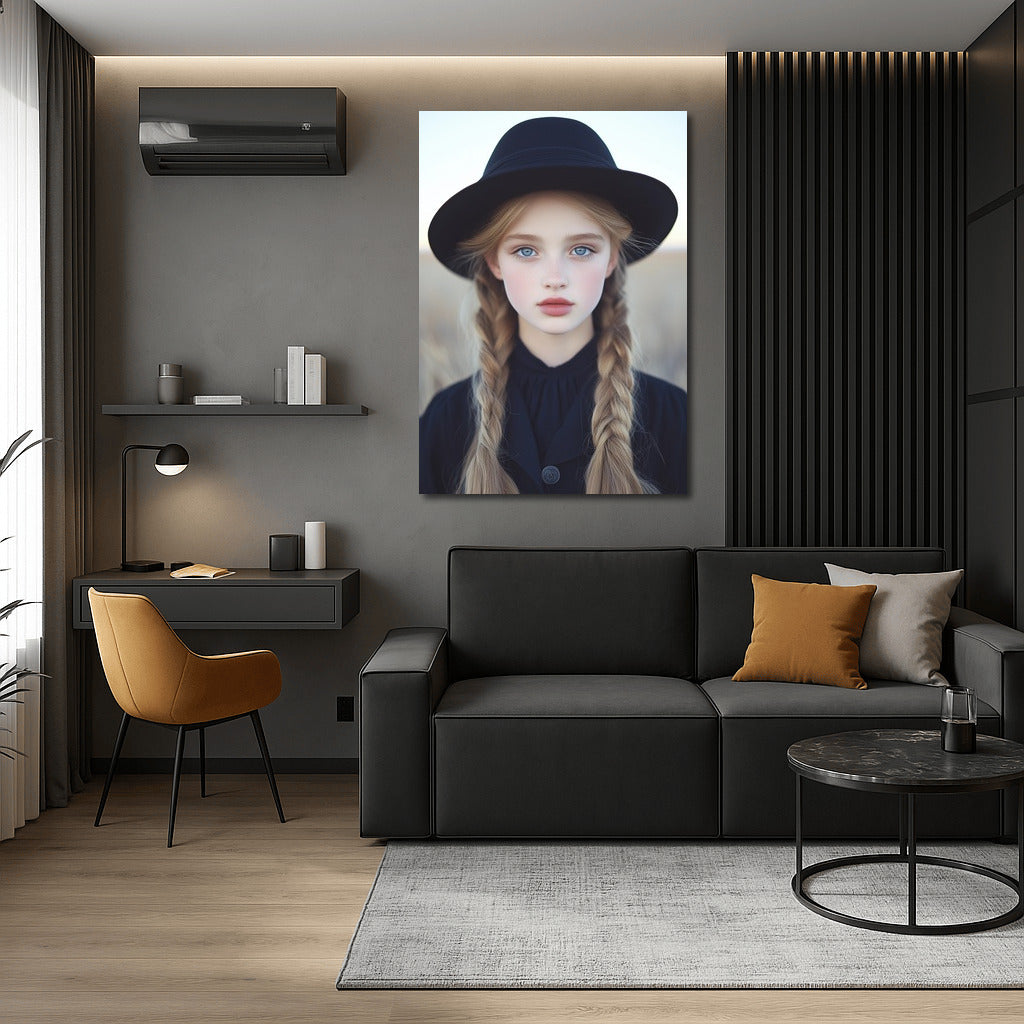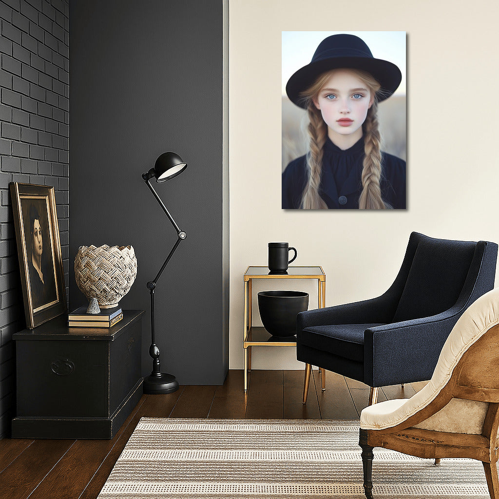 A subtle poster of a mysterious figure in a black hat. Beautiful wall art that adds a subtle mystery to the interior. See more from the collection: Wall Art with Women