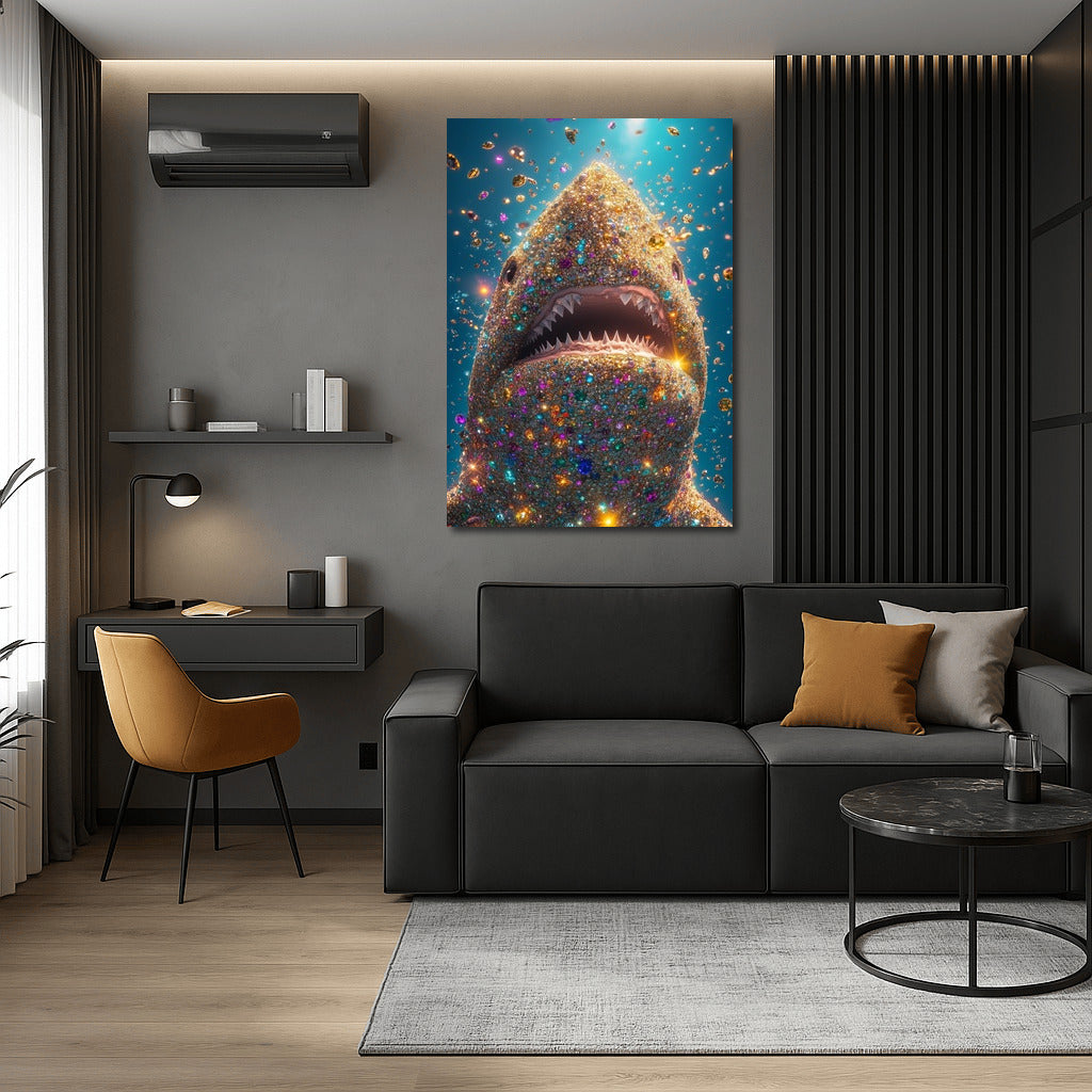 A sparkling poster of a shark adorned with jewels will immerse your interior in a bright world of fantasy and underwater magic. See more from the collection: Animals Art