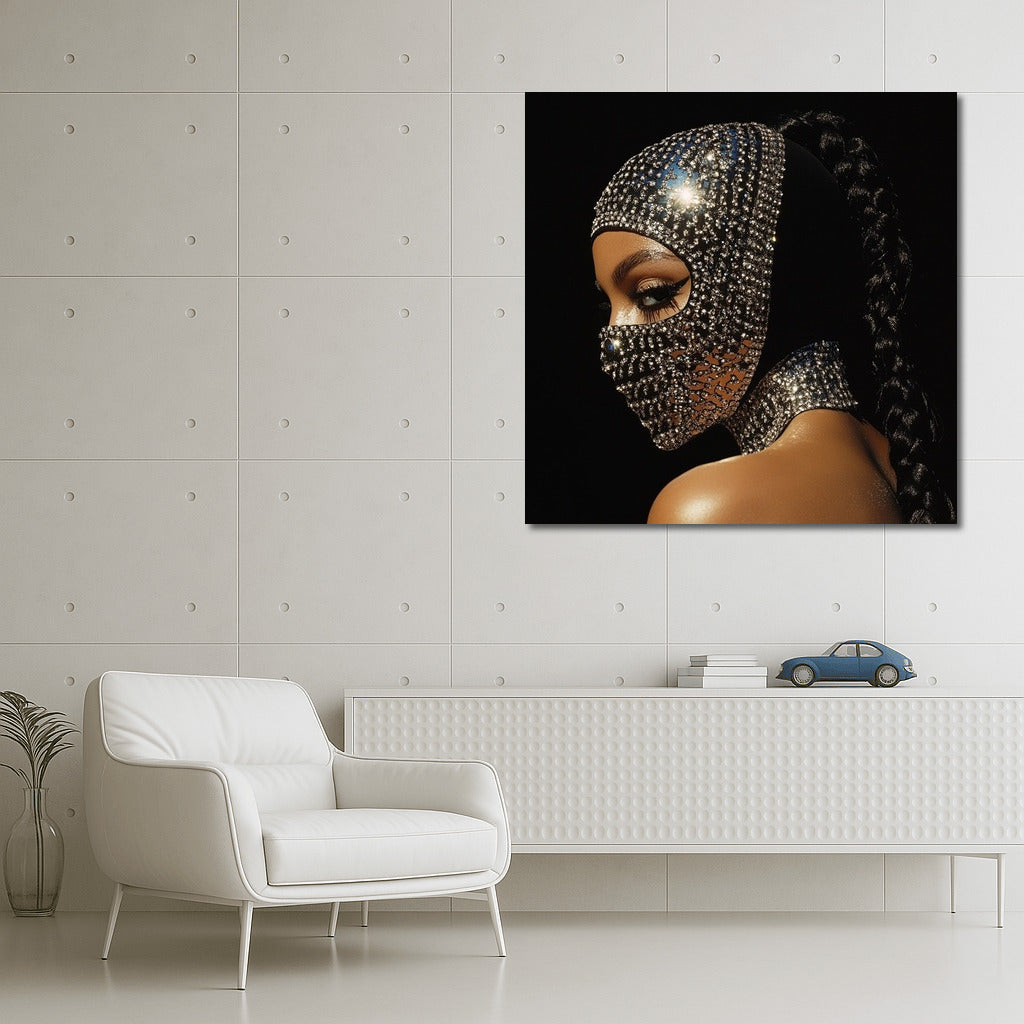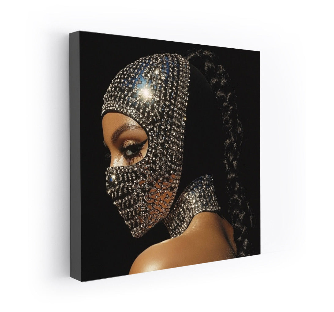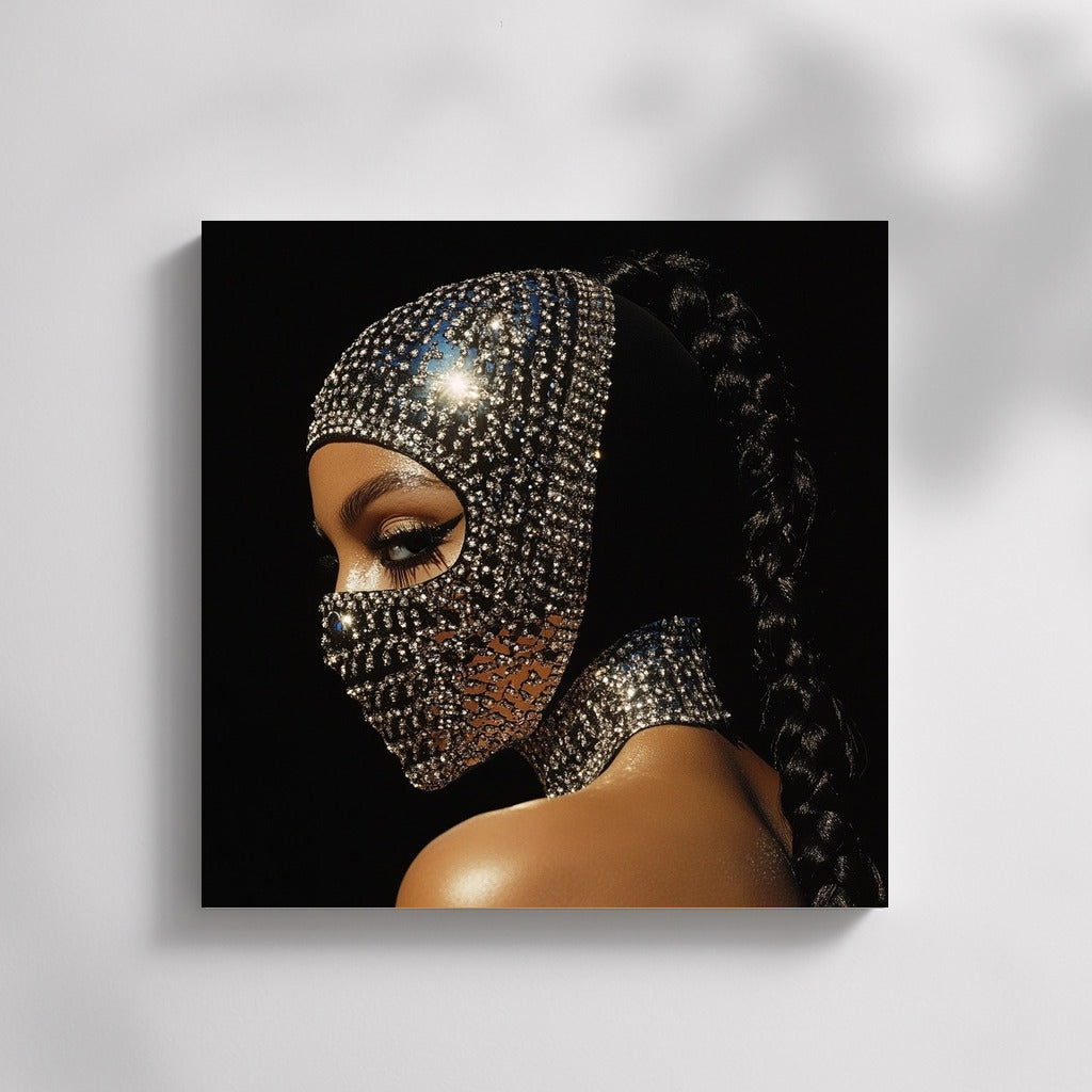 Step into a world of luxury with this painting: a mysterious figure in sparkling crystals that turns wall art into glitter. See more from the collection: Mixed Wall Art