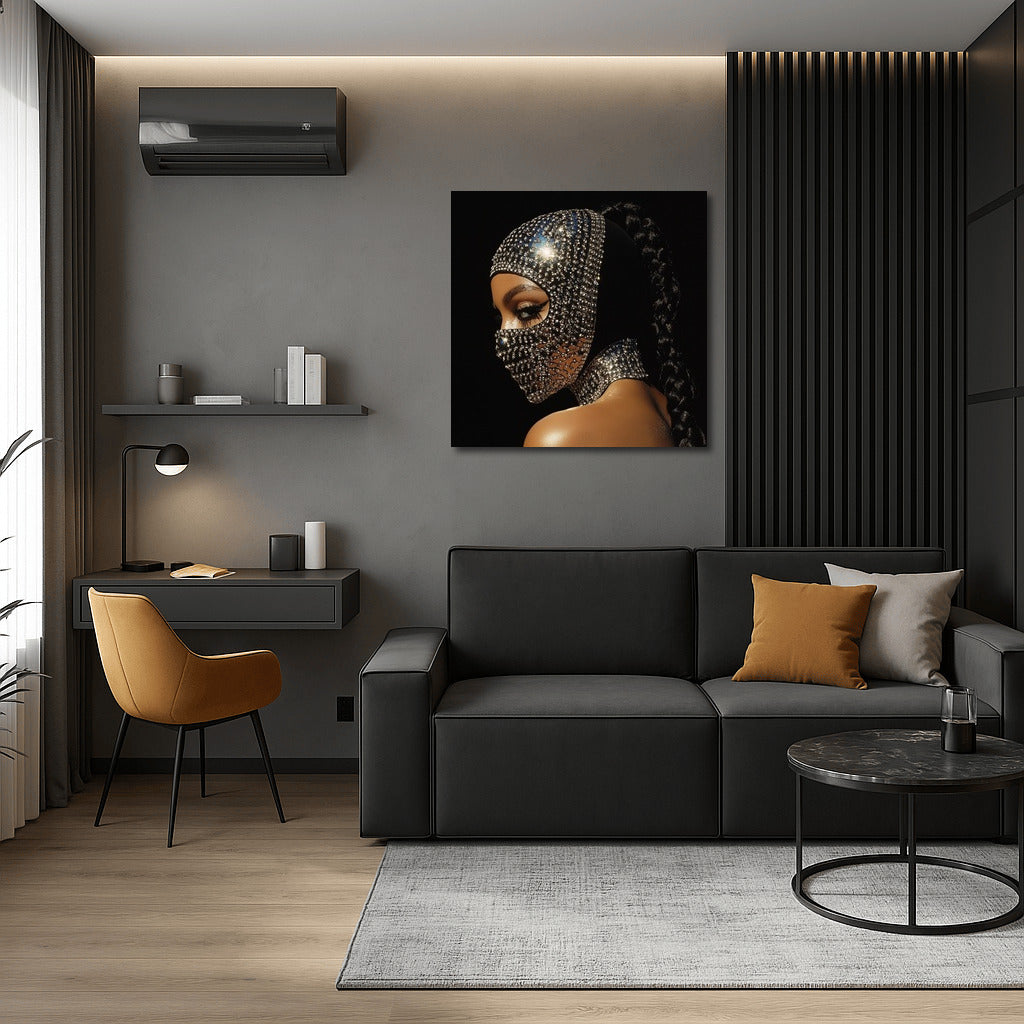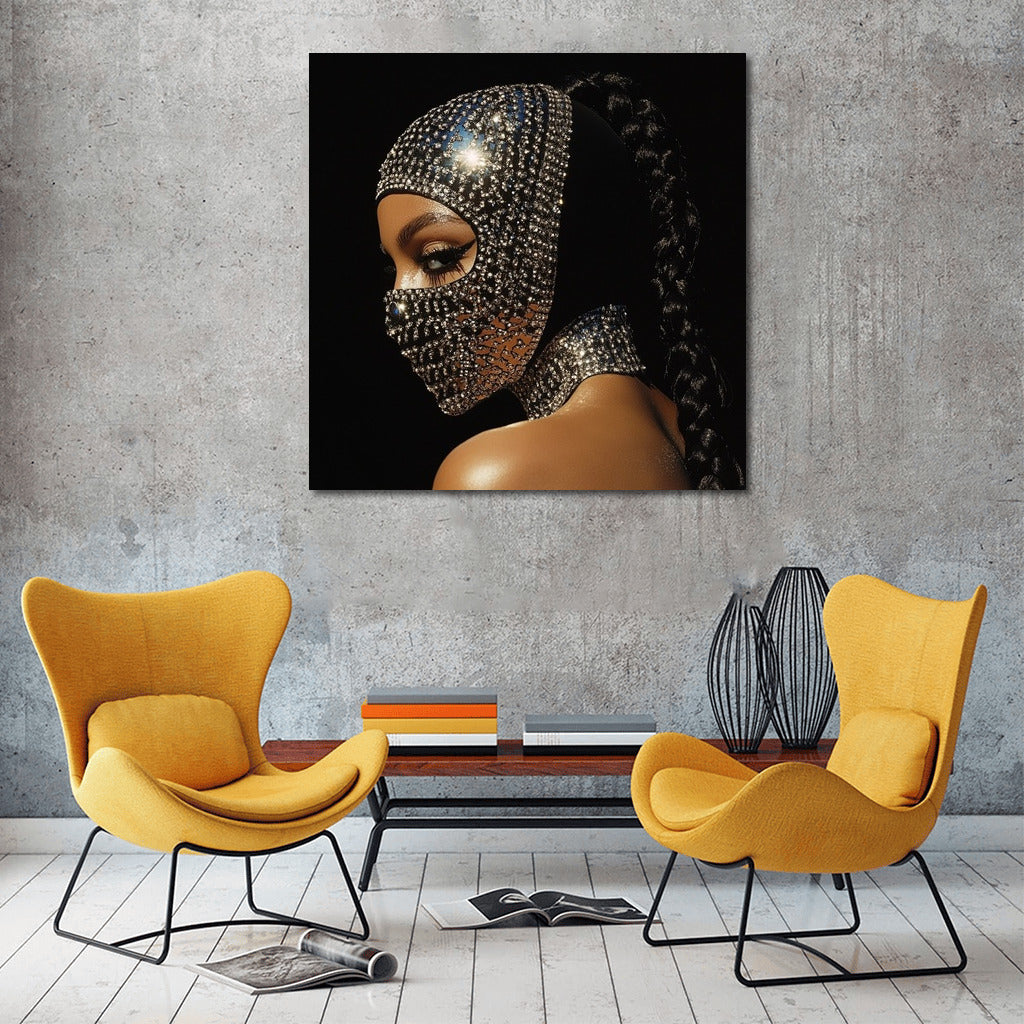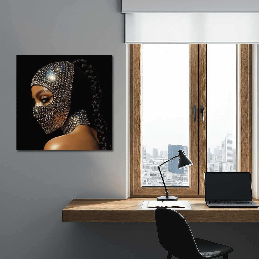 Step into a world of luxury with this painting: a mysterious figure in sparkling crystals that turns wall art into glitter. See more from the collection: Mixed Wall Art