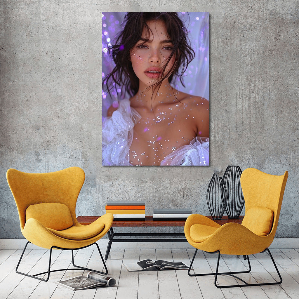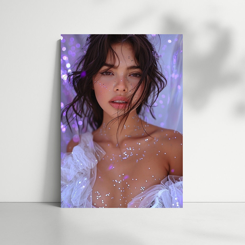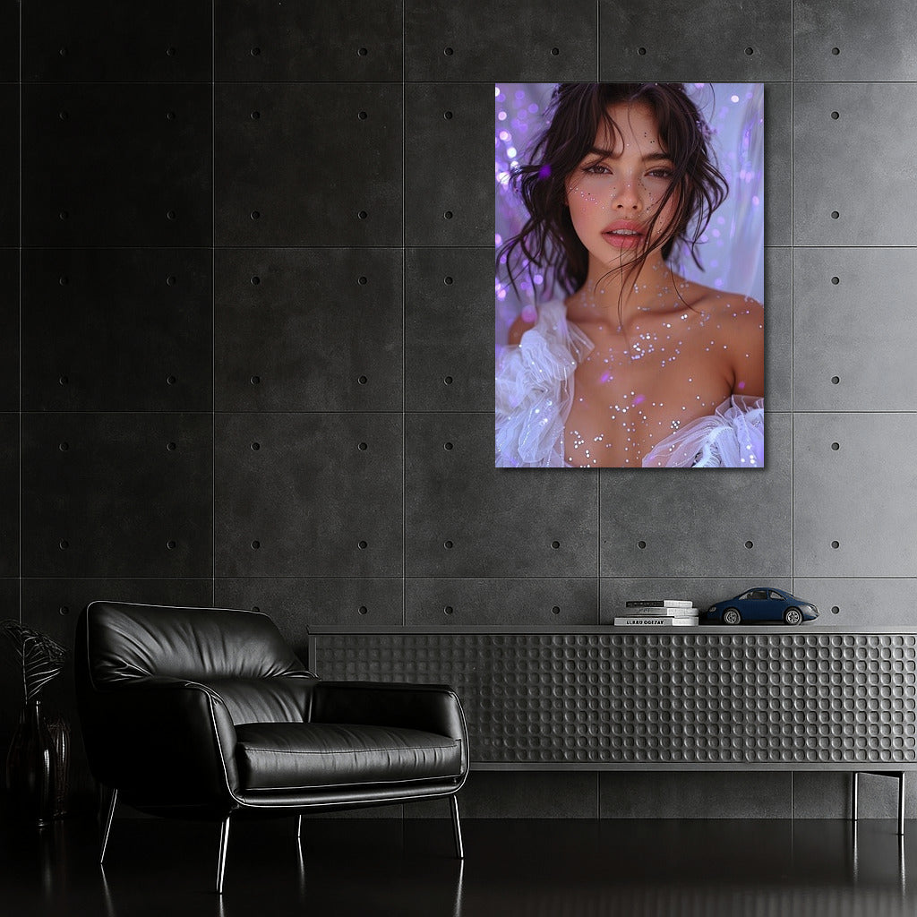 An elegant painting of a girl in sparkling shimmers. This poster will be a bright decoration for your wall art. See more from the collection: Wall Art with Women