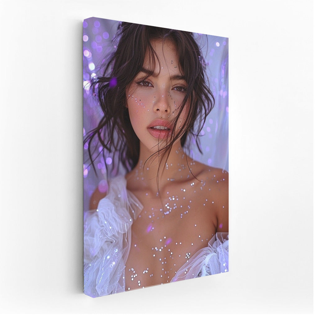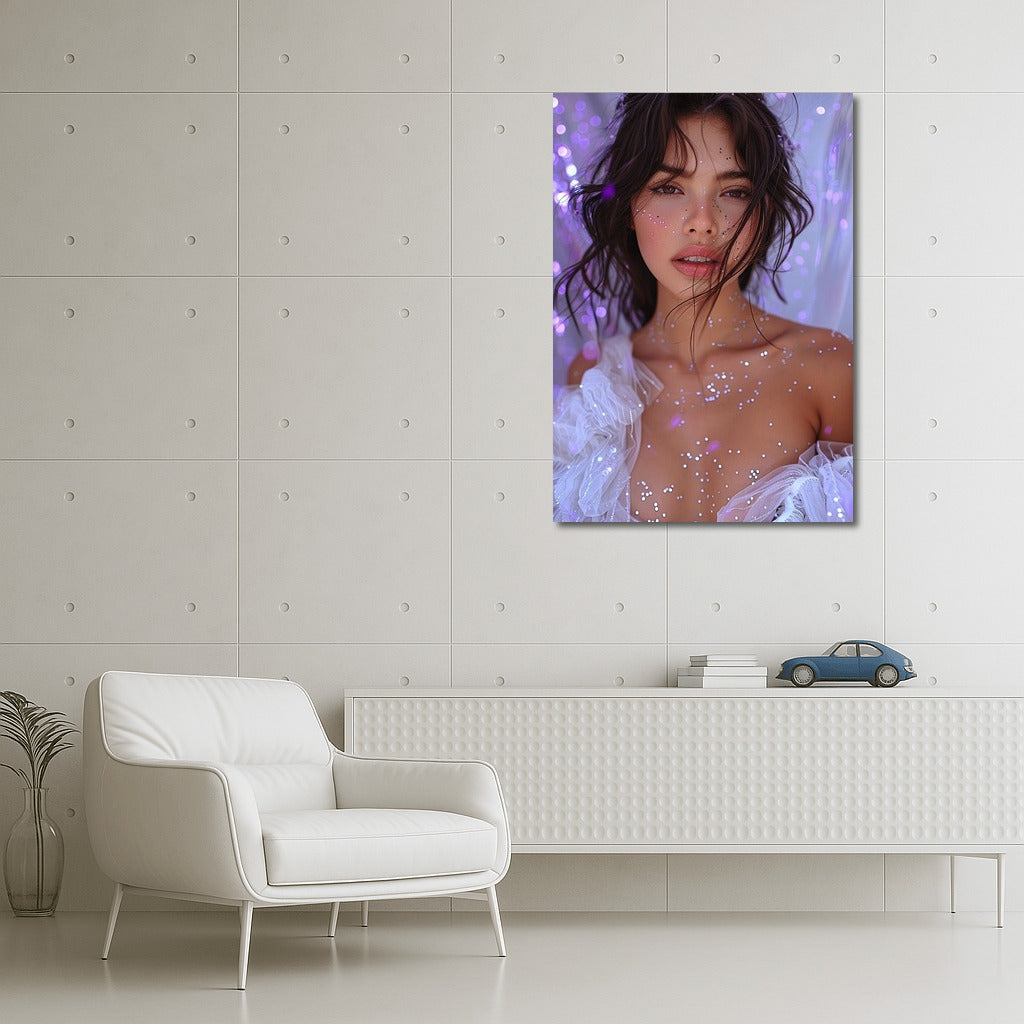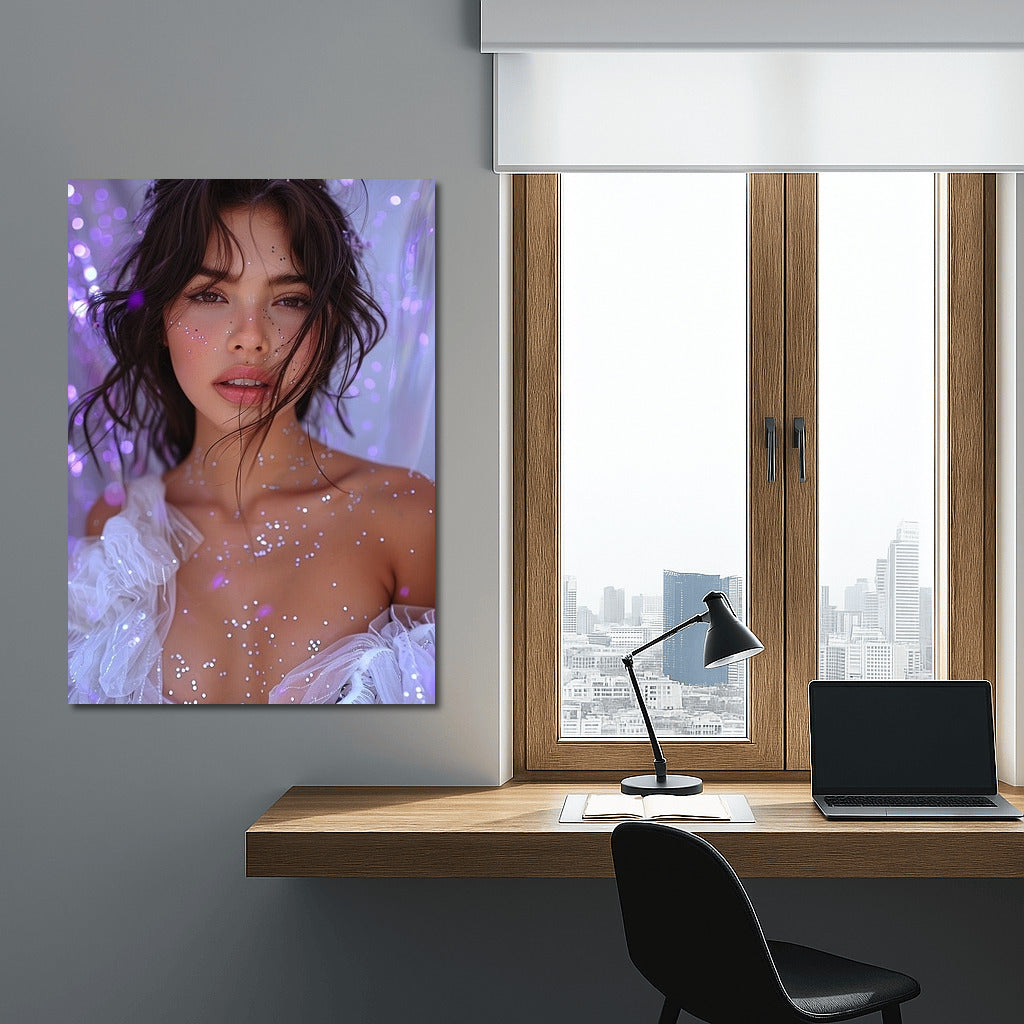 An elegant painting of a girl in sparkling shimmers. This poster will be a bright decoration for your wall art. See more from the collection: Wall Art with Women