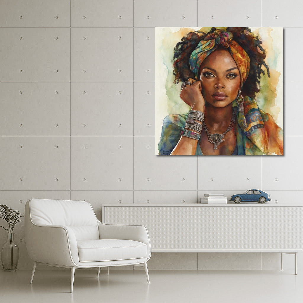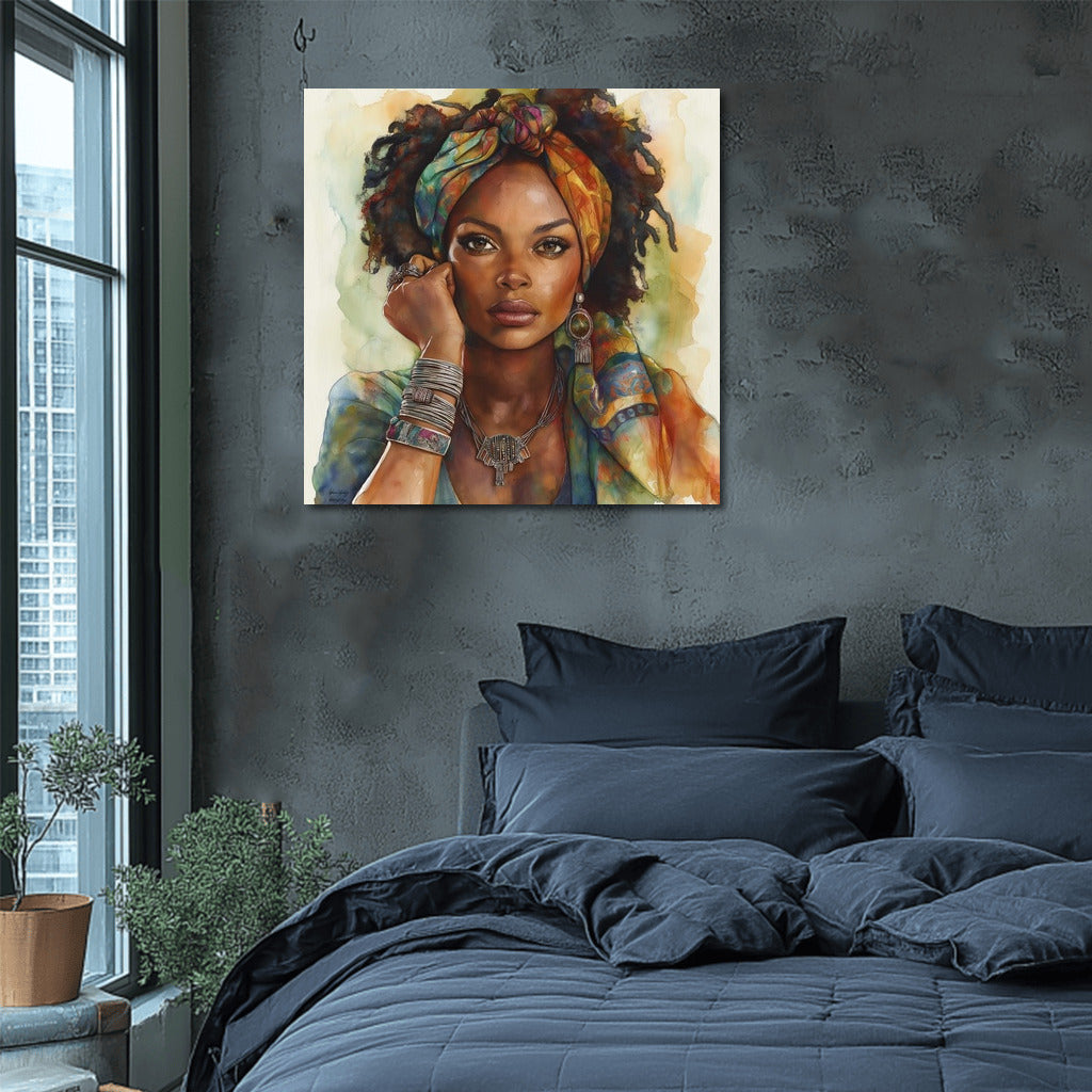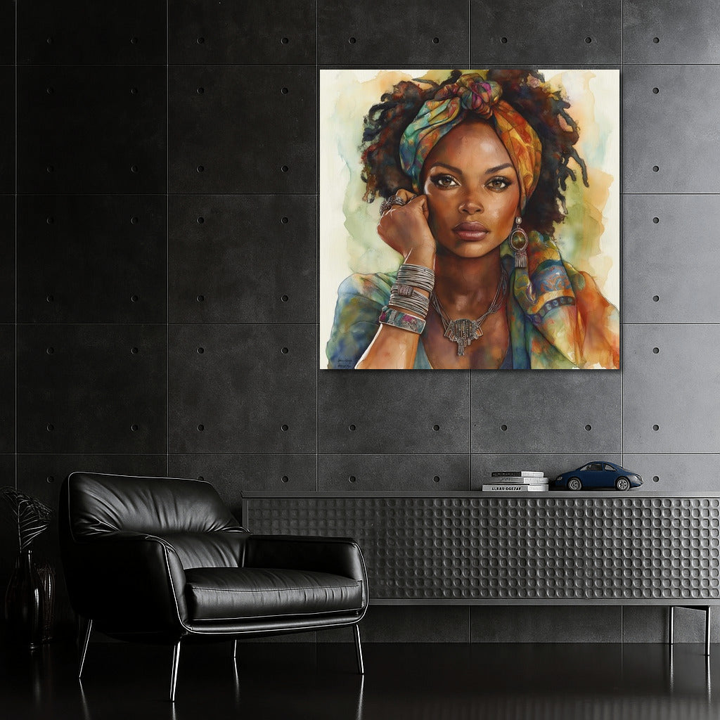 Painted Portrait: A striking figure in vibrant colors. Wall art for those looking for inspiration and style. See more from the collection: Wall Art with Women
