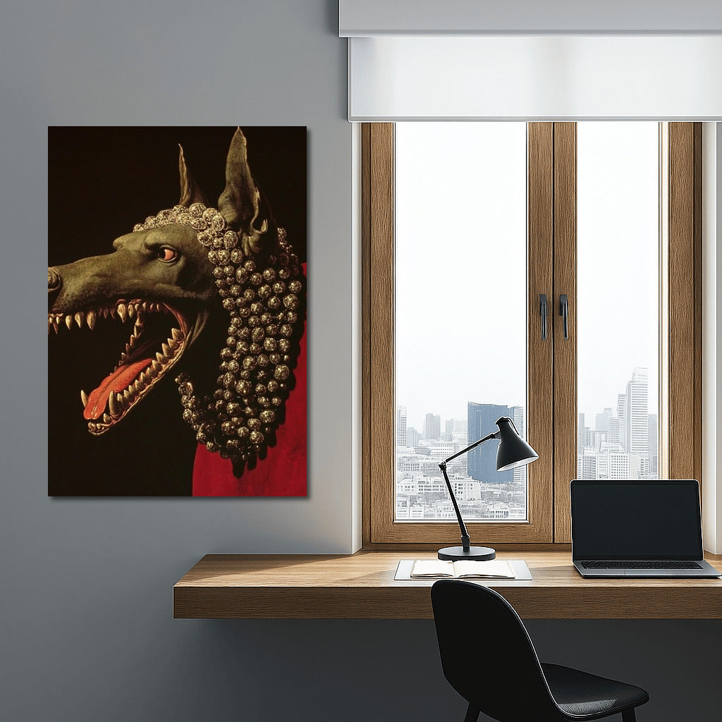 A mysterious painting: a powerful image of a fantasy entity in glitter. Ideal wall art for those who appreciate originality! See more from the collection: Mixed Wall Art