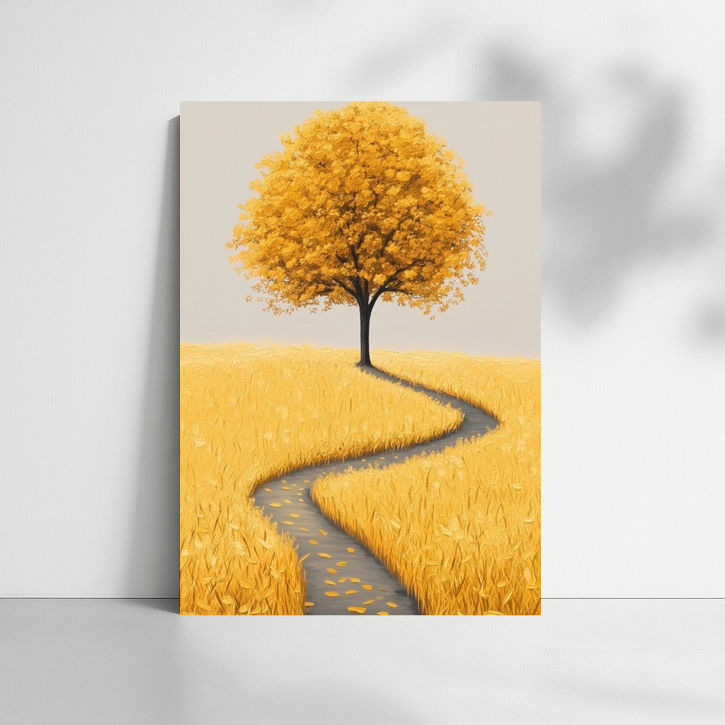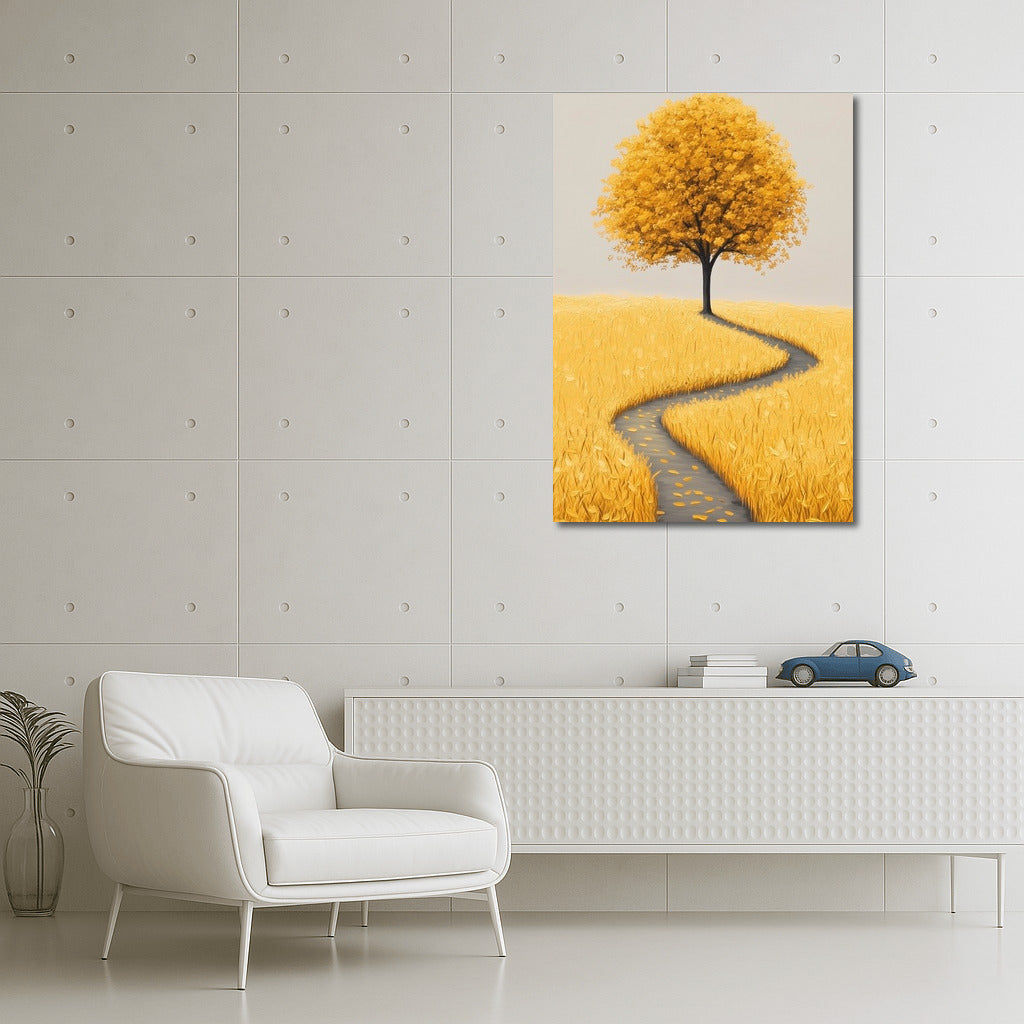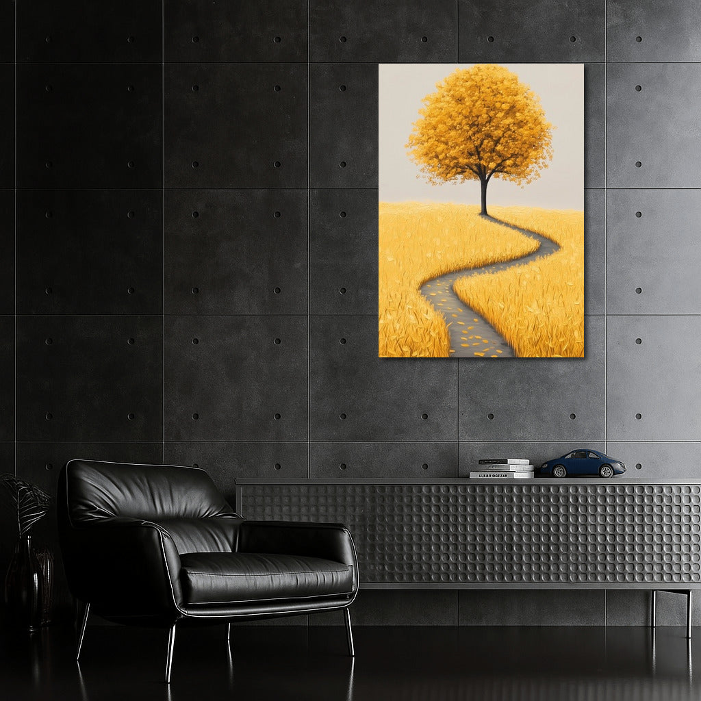 Golden tree against the background of a field. This poster will add warmth and tranquility to your interior. Wall art that dreams are made of! See more from the collection: Mixed Wall Art