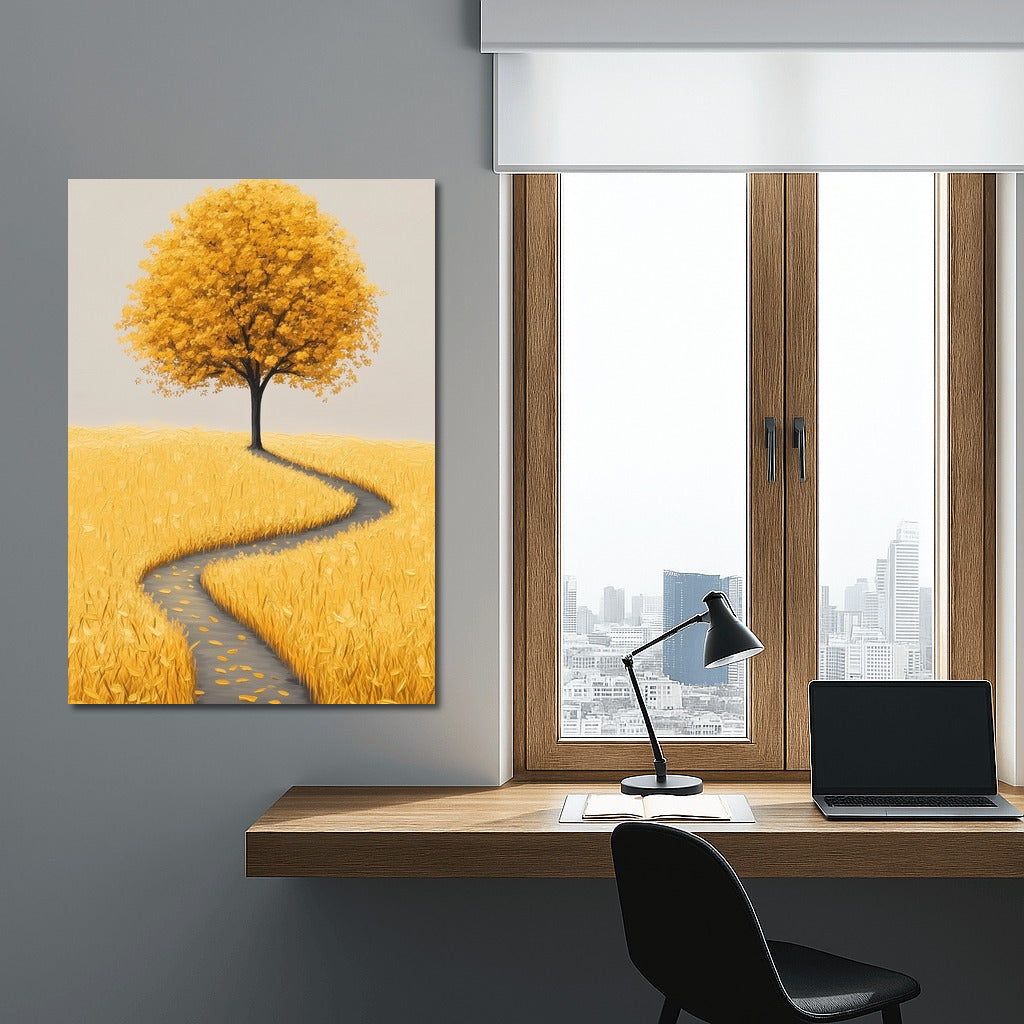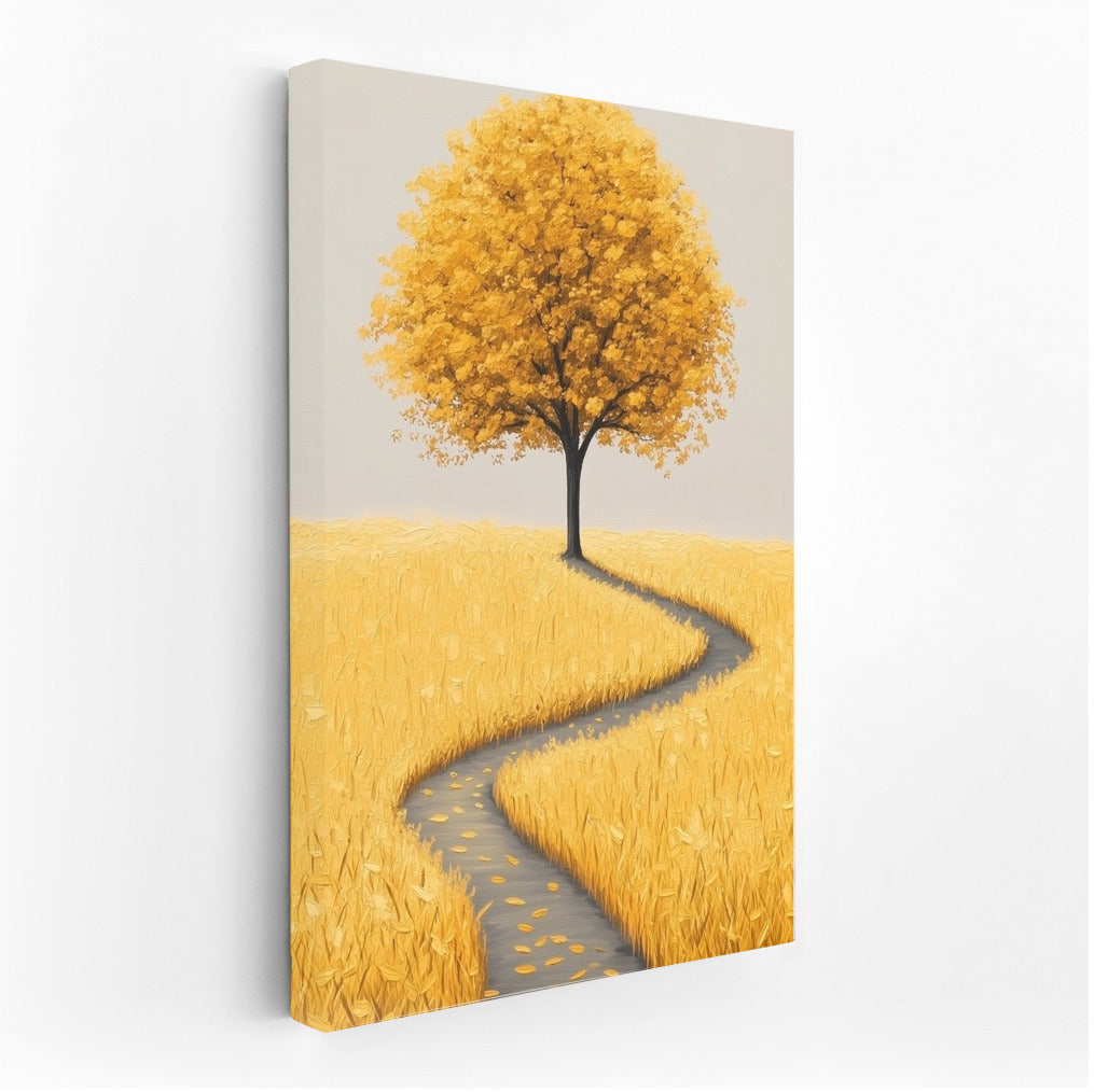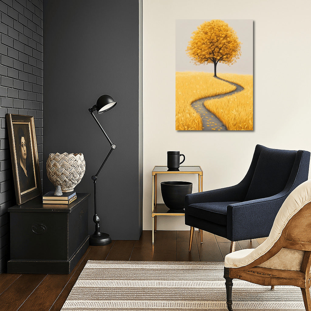 Golden tree against the background of a field. This poster will add warmth and tranquility to your interior. Wall art that dreams are made of! See more from the collection: Mixed Wall Art