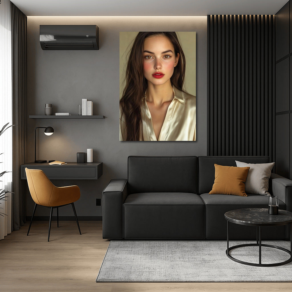 Stunning painting: mysterious look, radiant beauty. Add sophisticated wall art to your interior! See more from the collection: Wall Art with Women