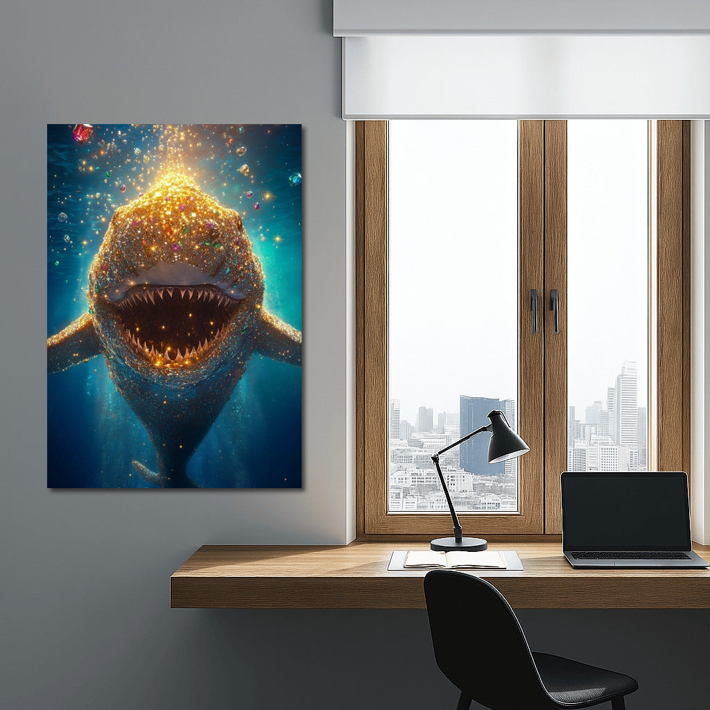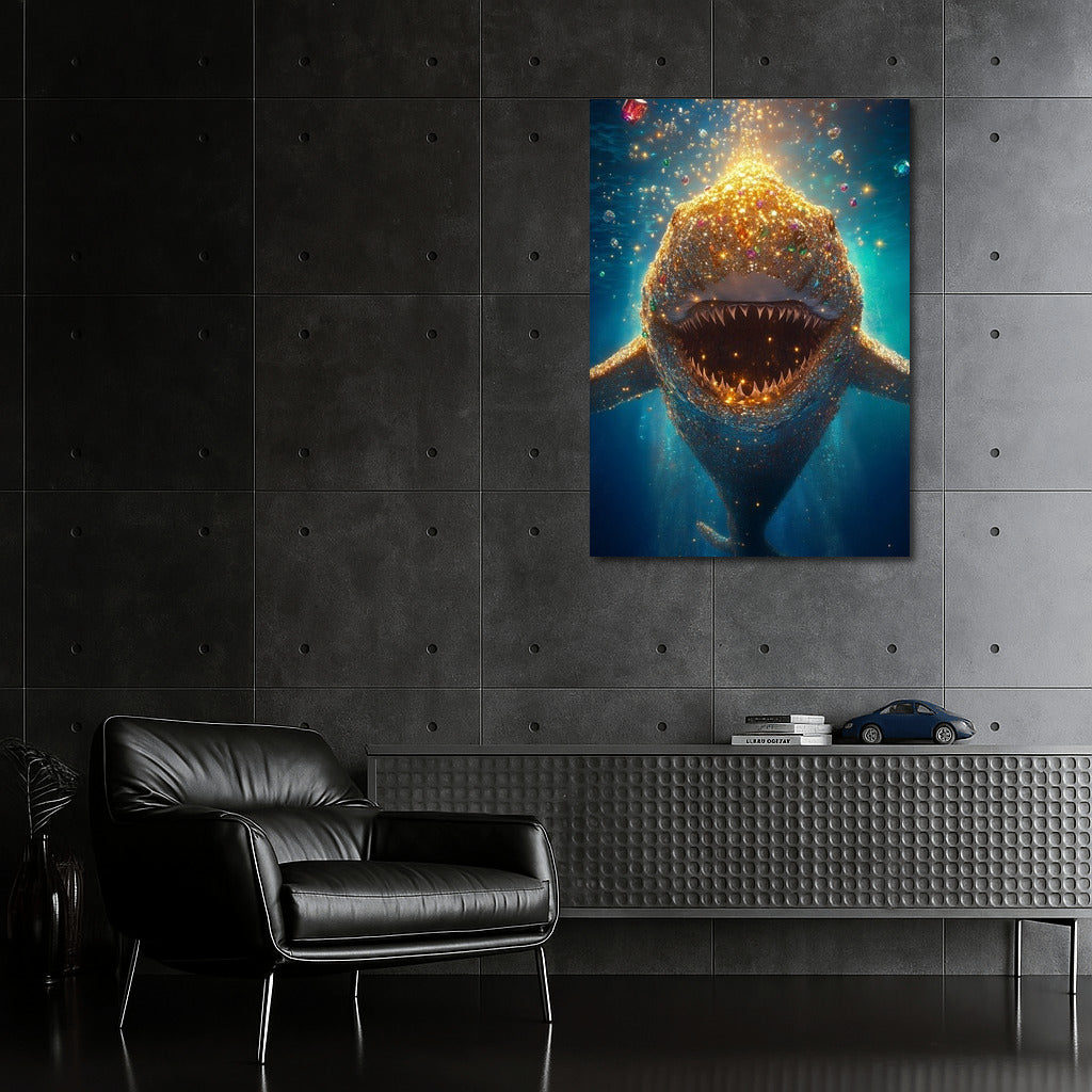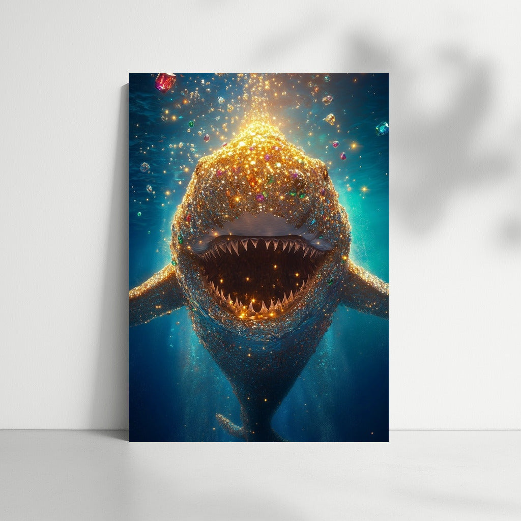 A vibrant poster of a gorgeous shark shining in the depths of the ocean. Wall art that brings the space to life with magic and sparkle. ✨ See more from the collection: Mixed Wall Art