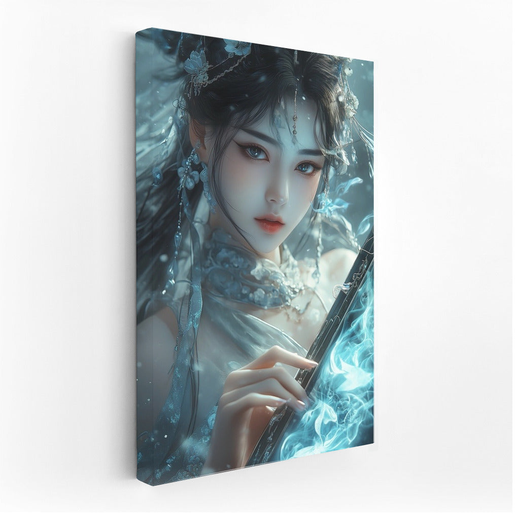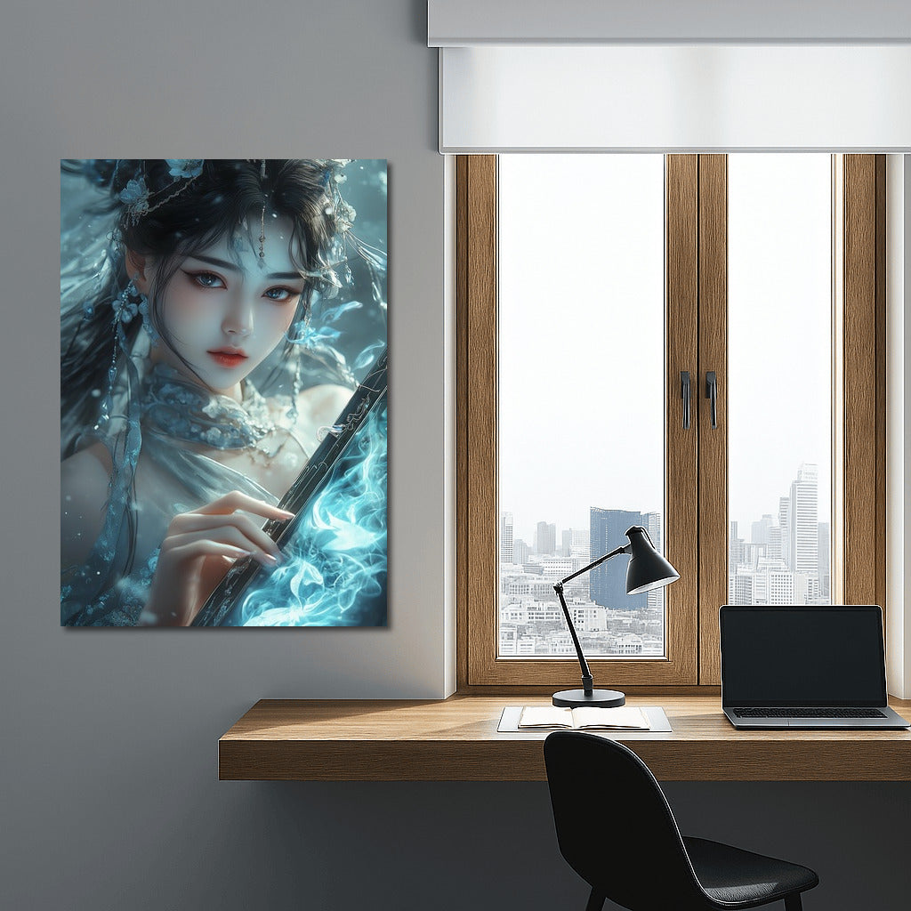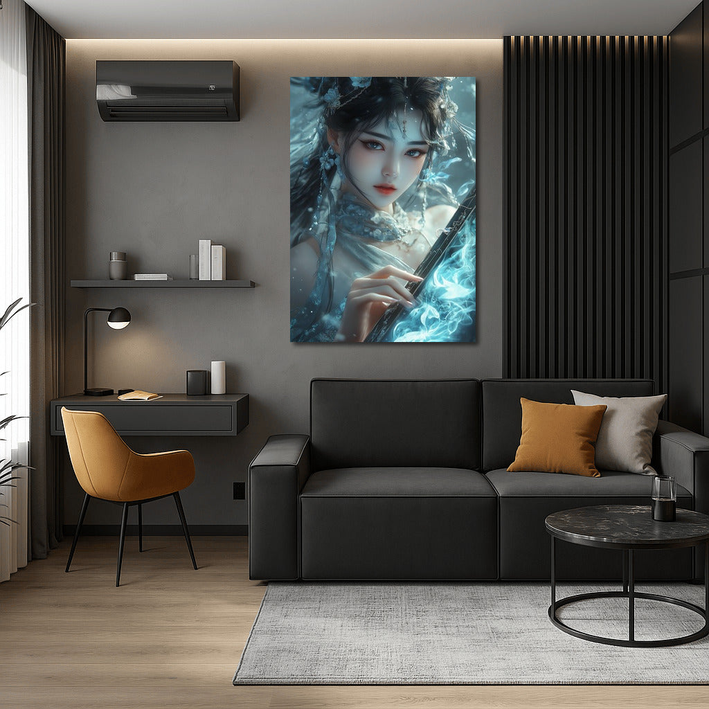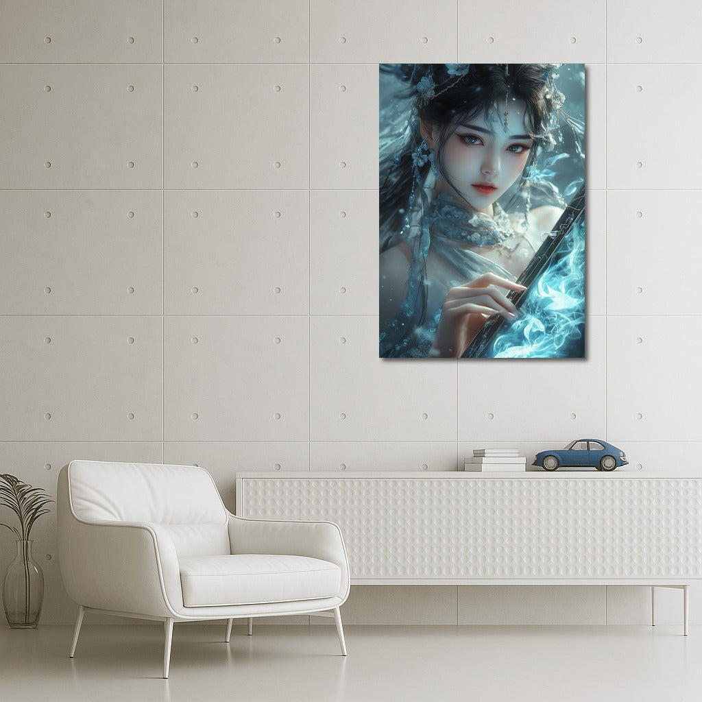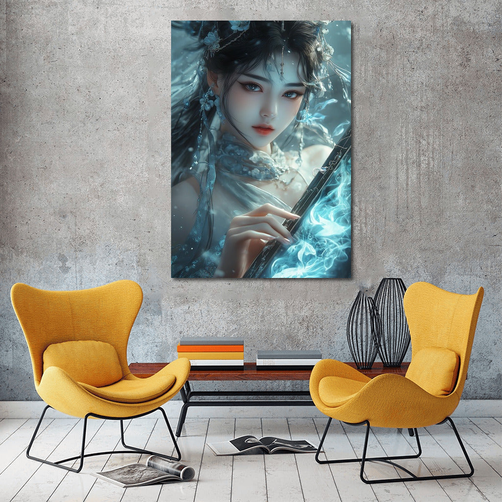 Magic and mystery come to life in this poster: an exquisite figure surrounded by luminous patterns. Dream wall art! See more from the collection: Wall Art with Women