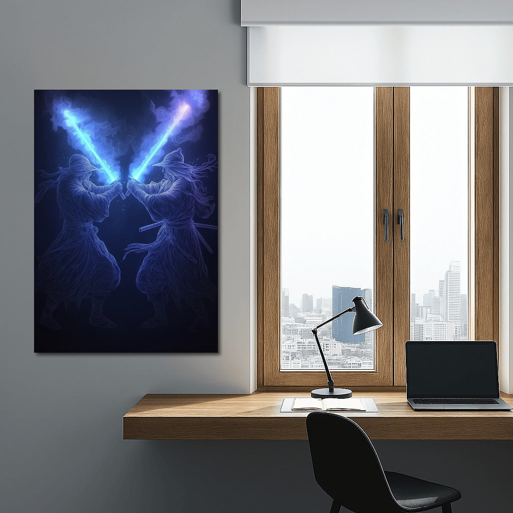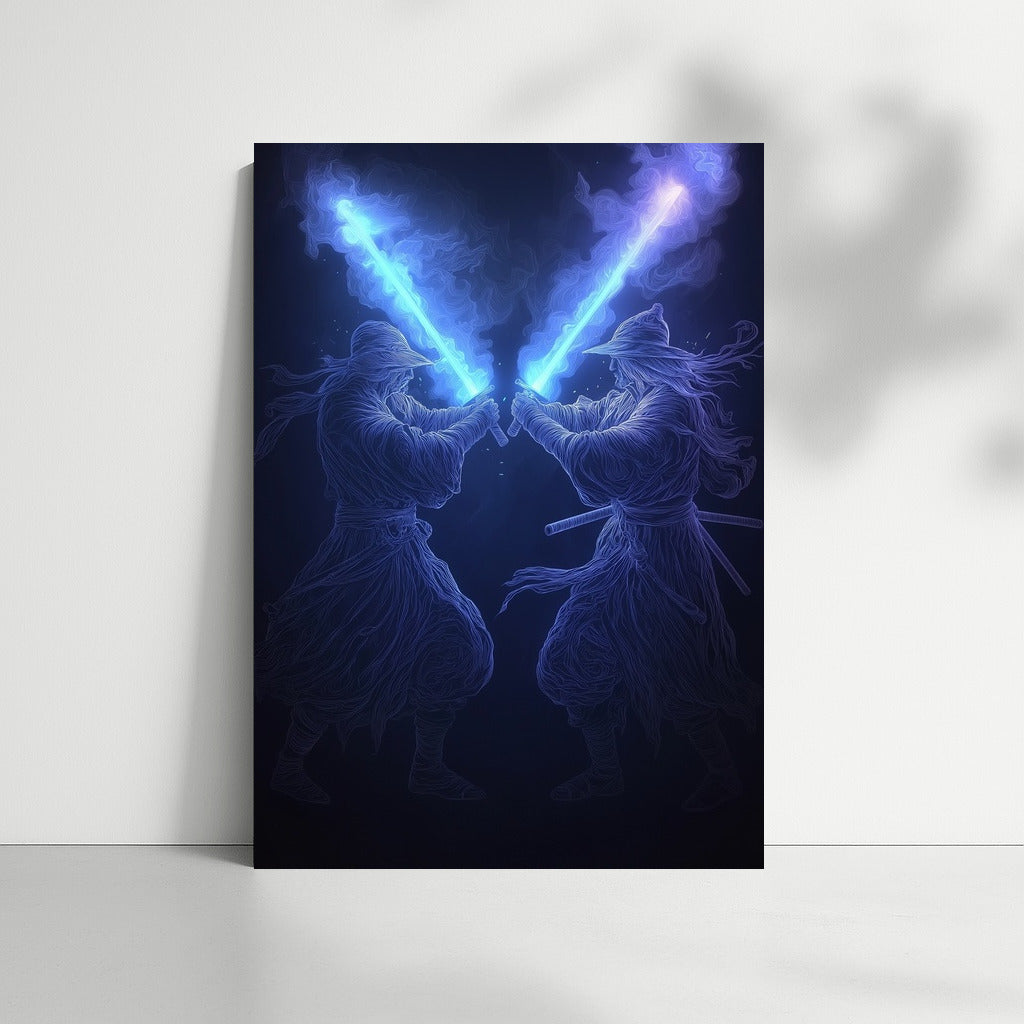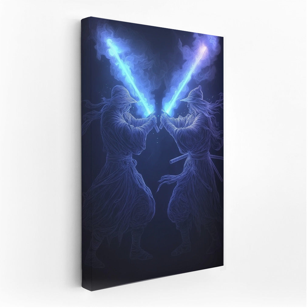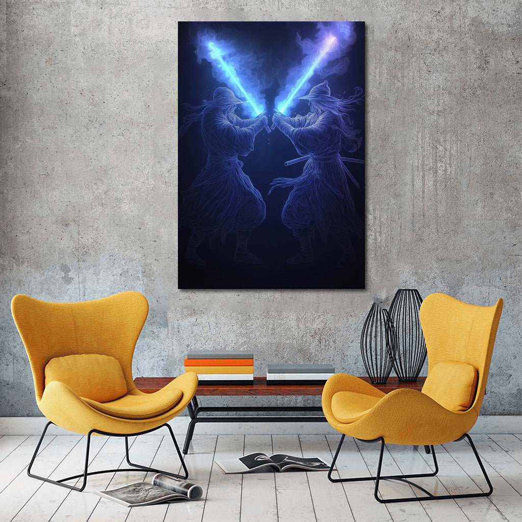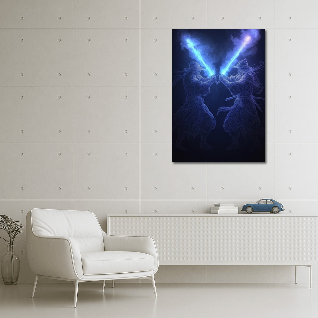The Shining of Two Blades: Dance of Light and Shadow Wall Art