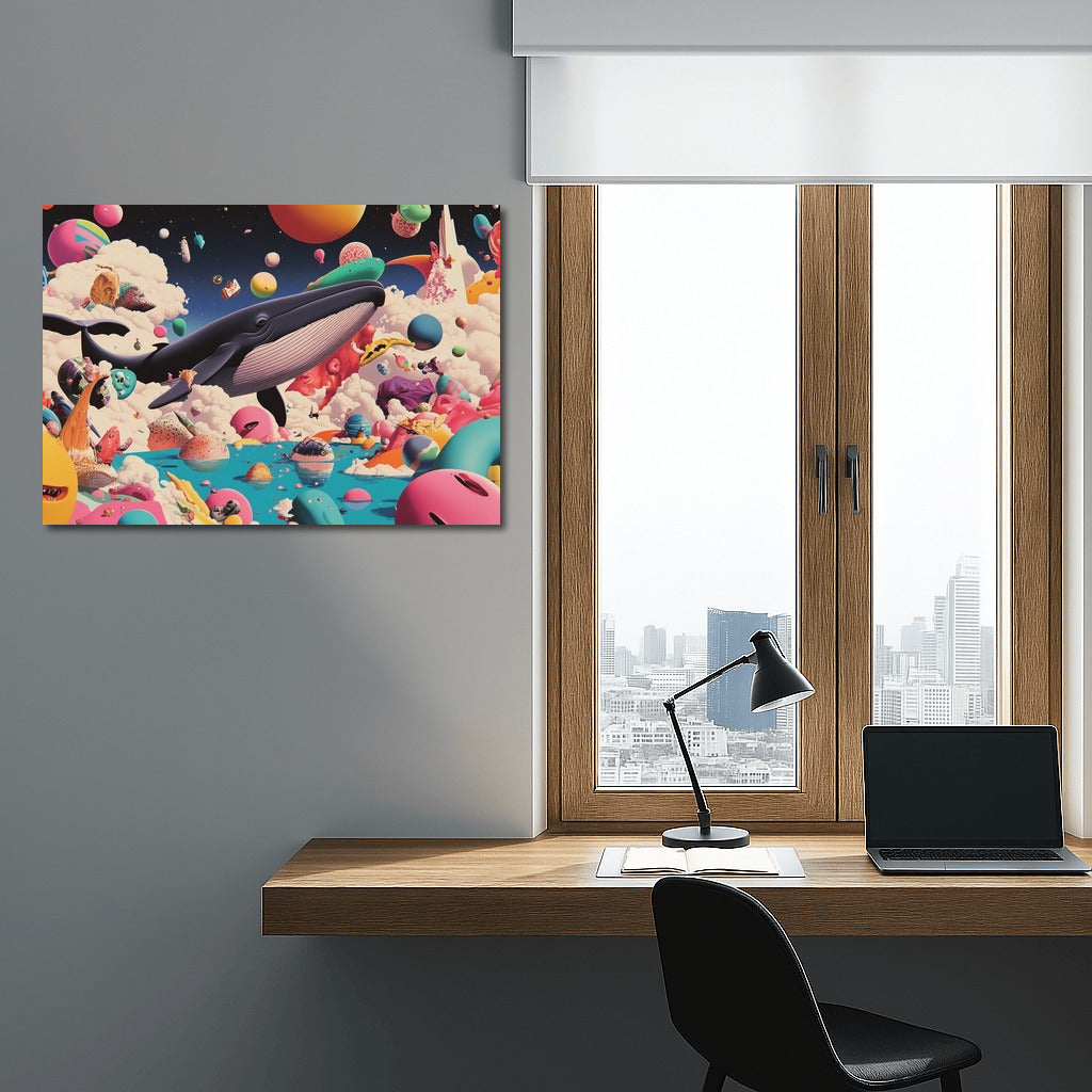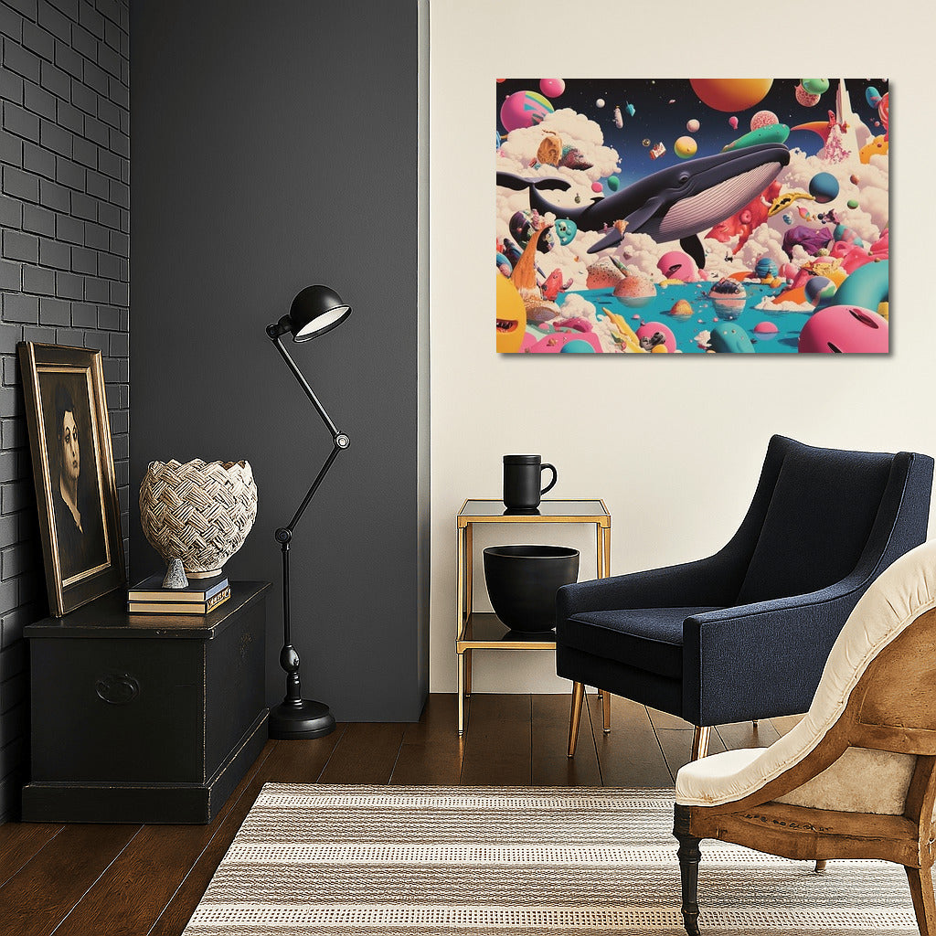 Fantastic poster of a whale in a cosmic world of sweets and dreams. Vivid wall art to make your fantasies come true. See more from the collection: Mixed Wall Art