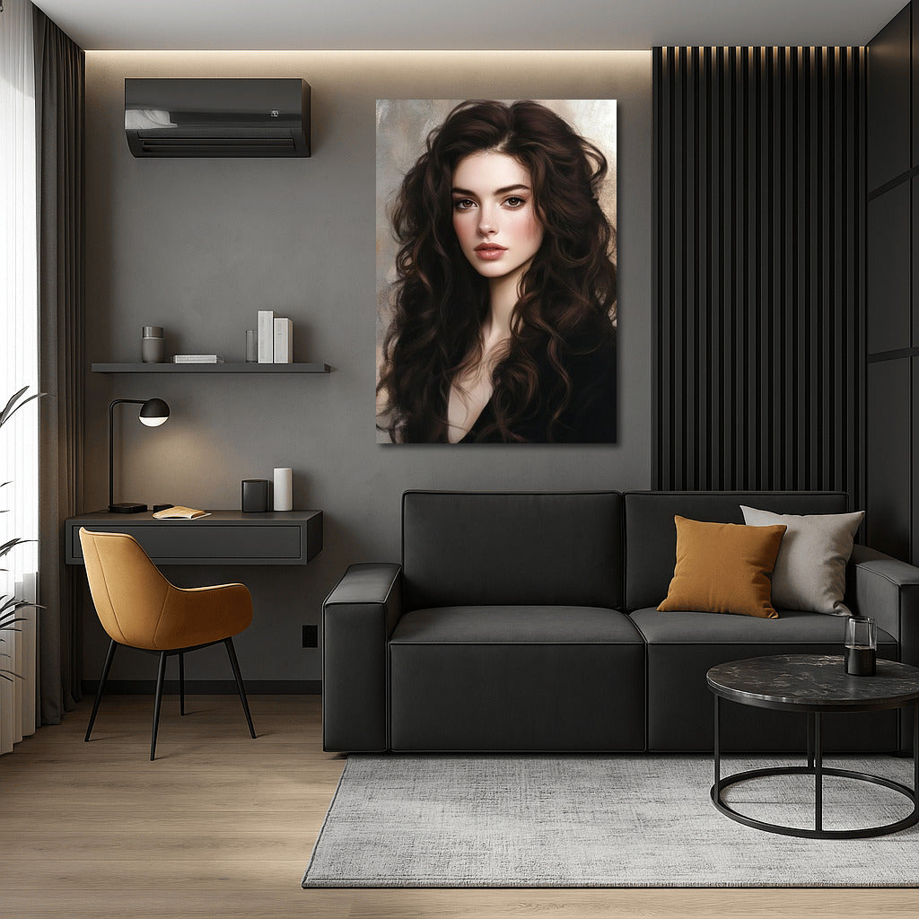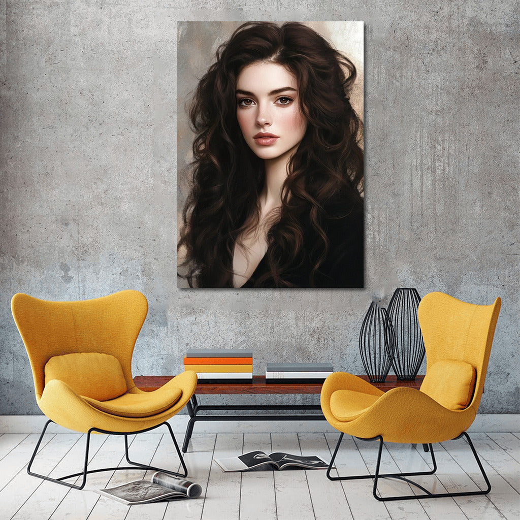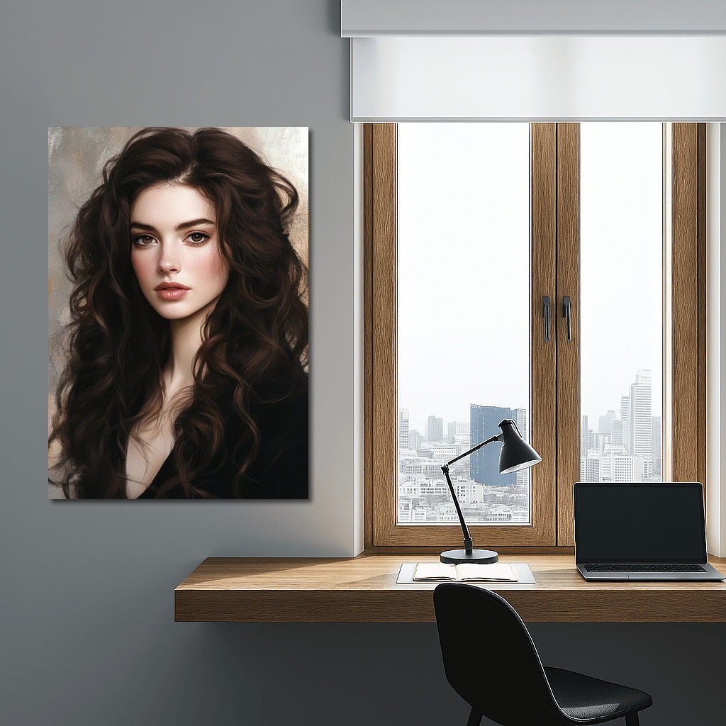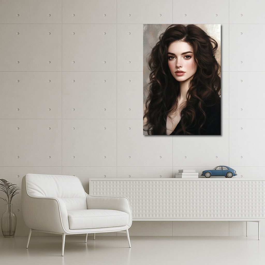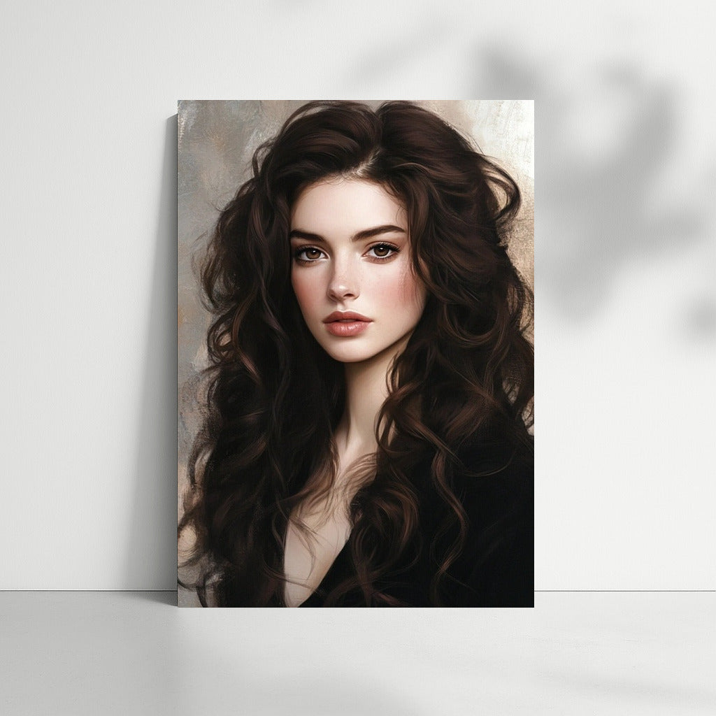 An elegant painting with a mysterious character and a mesmerizing look. An ideal poster for true connoisseurs of wall art. See more from the collection: Wall Art with Women