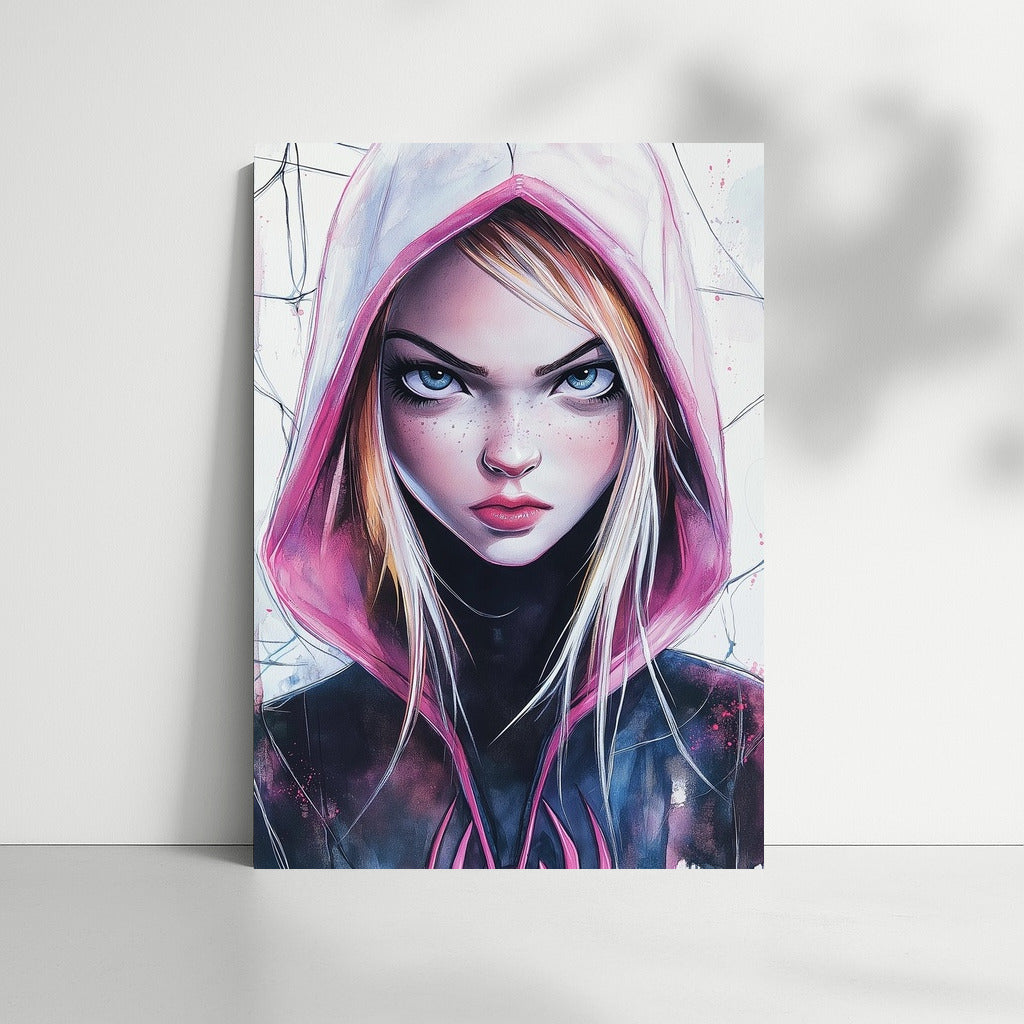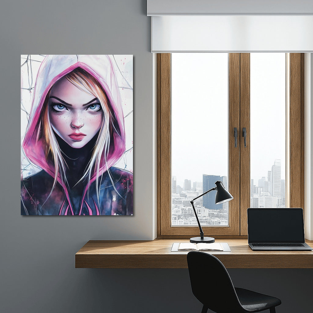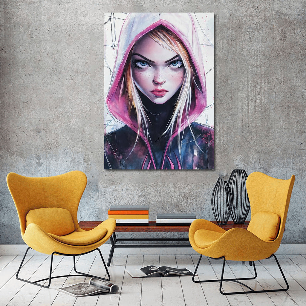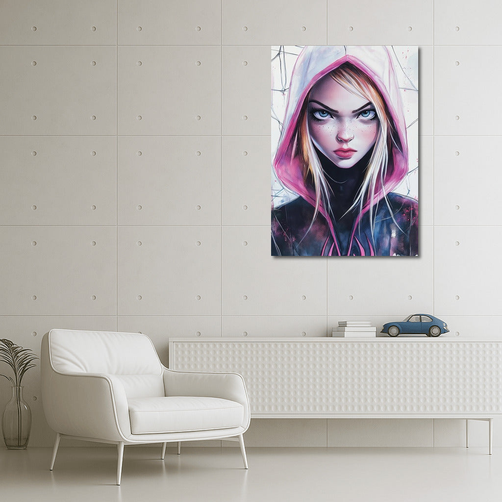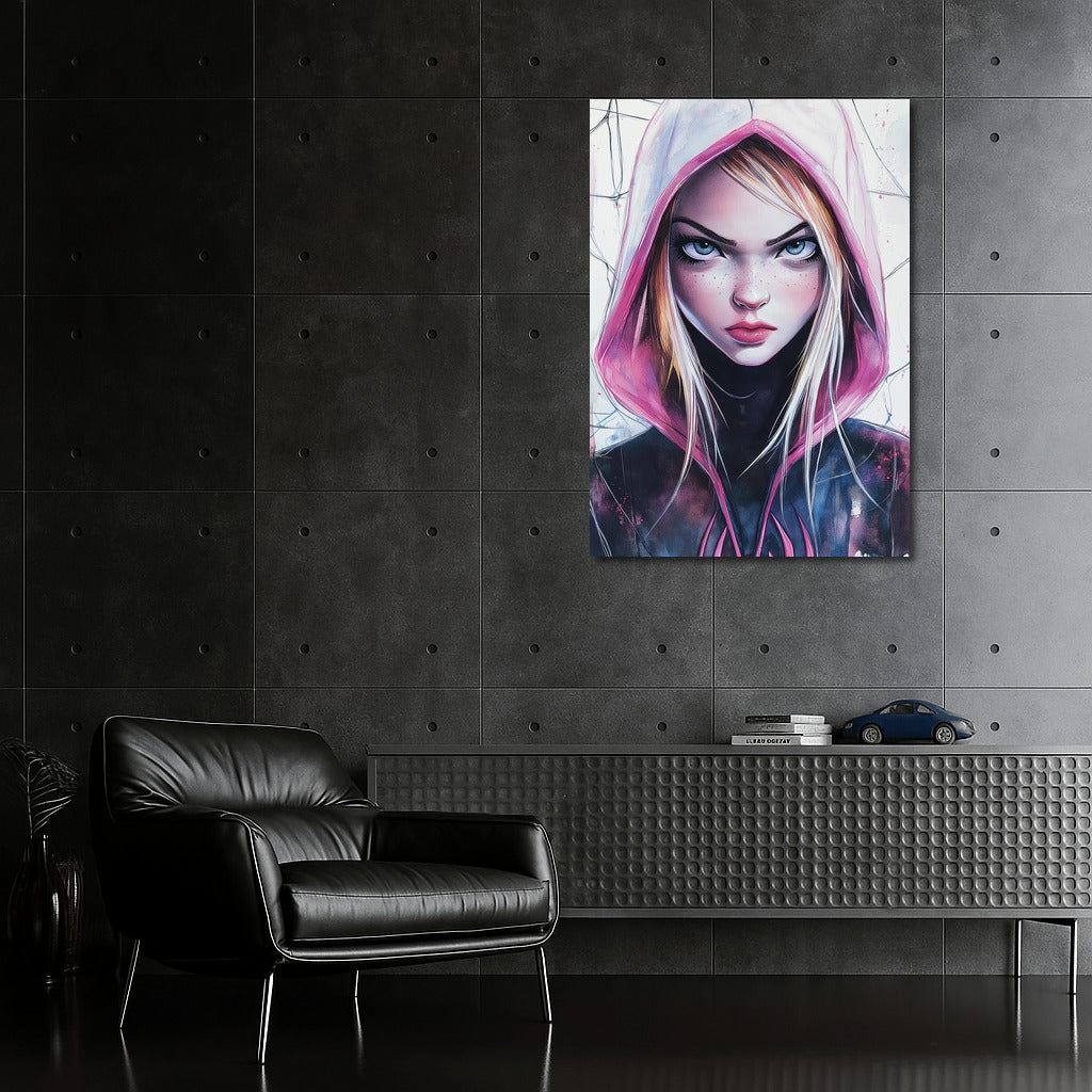 Bold wall art: girl in a hood, a look full of determination. The perfect poster for inspiration and fortitude! See more from the collection: Anime & Manga genres Art