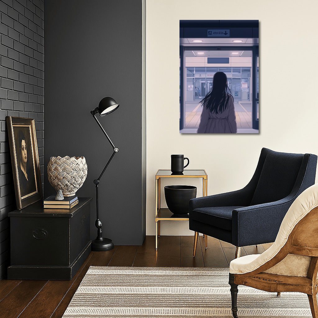 Mysterious wall art: girl waiting for the future, step forward into the world of possibilities. Perfect poster for inspiration! See more from the collection: Mixed Wall Art