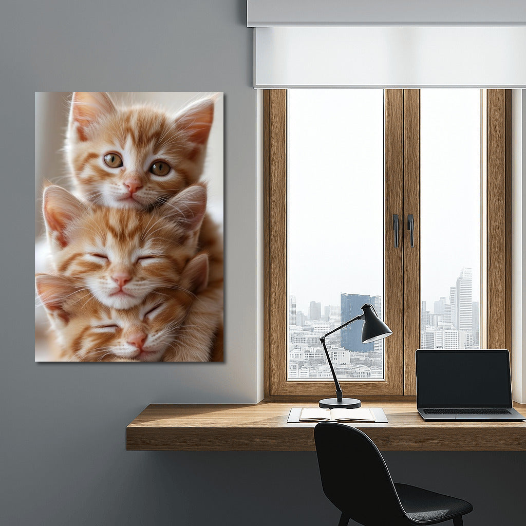 Adorable poster with three ginger kittens. Wall art that will decorate your home with warmth and tenderness. See more from the collection: Animals Art