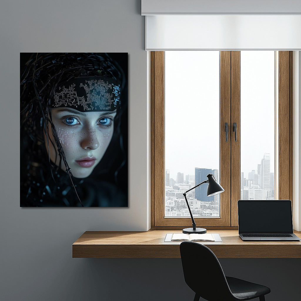 Cyberposter: A mysterious fusion of reality and the digital world. Immerse yourself in futuristic wall art. See more from the collection: Wall Art with Women