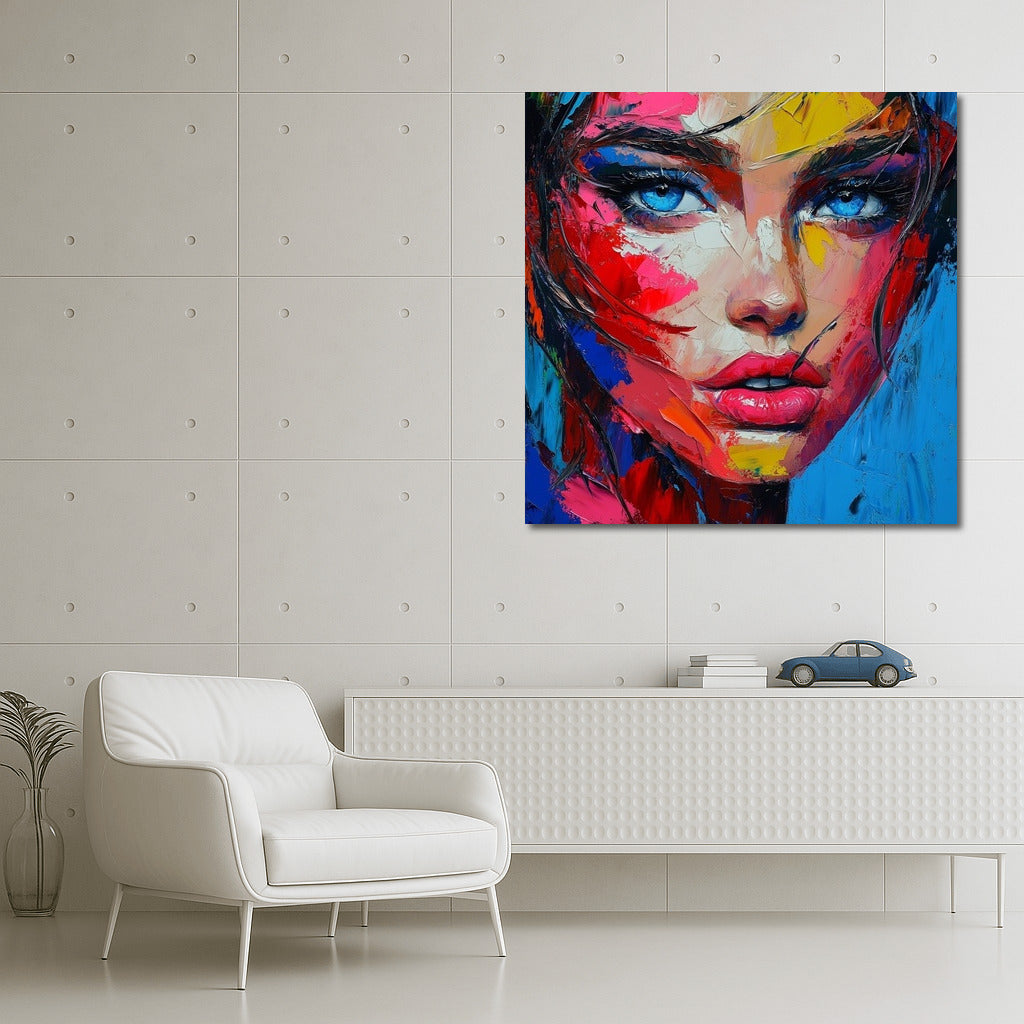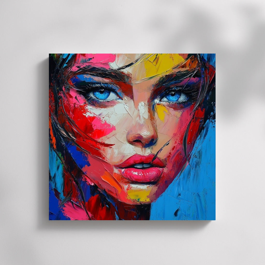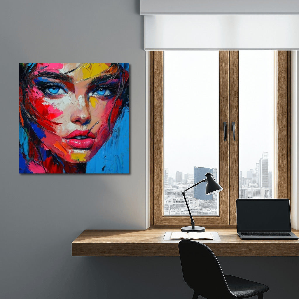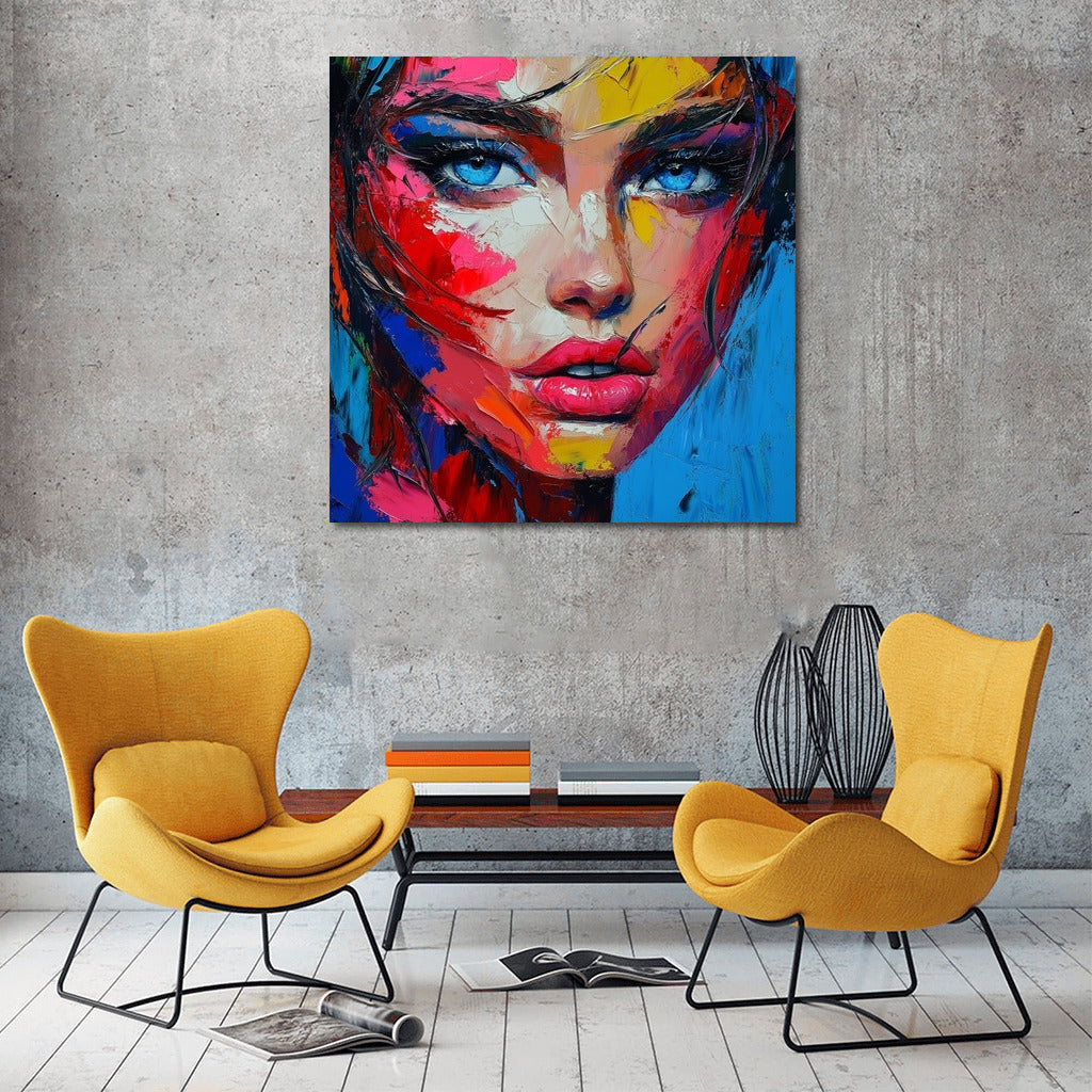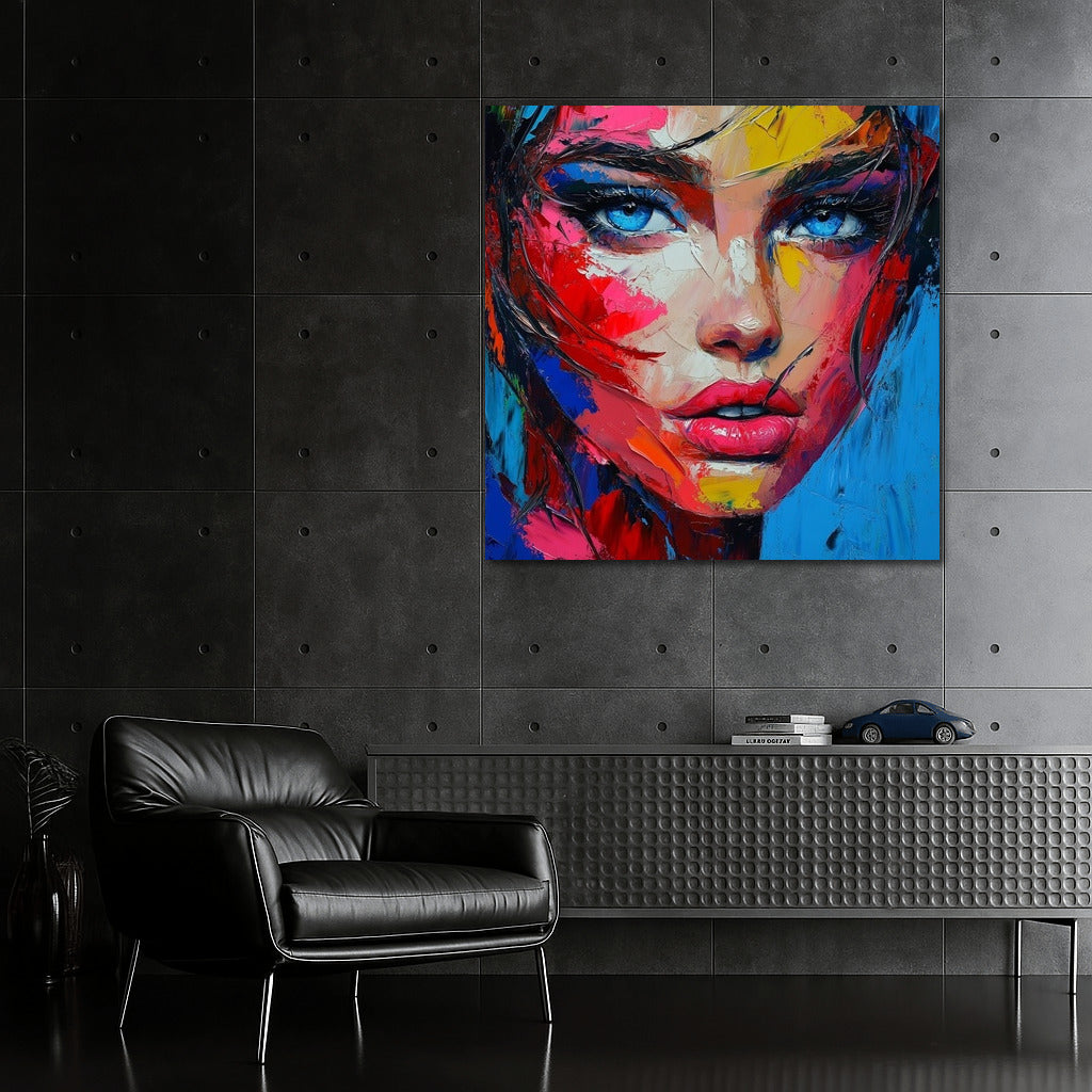 The rich colors and expressive eyes of the girl in this painting will bring your wall art to life with unique energy. See more from the collection: Pop Art