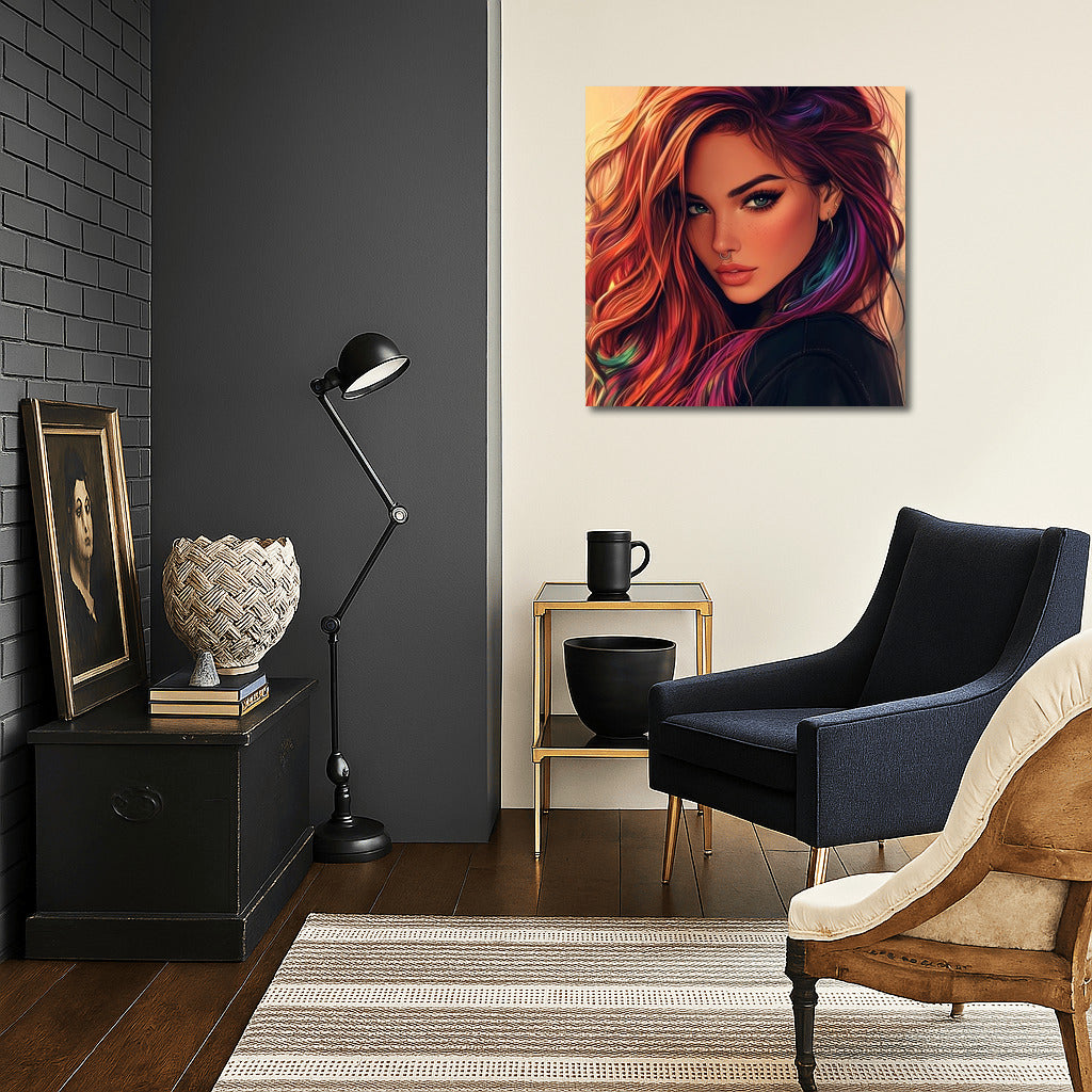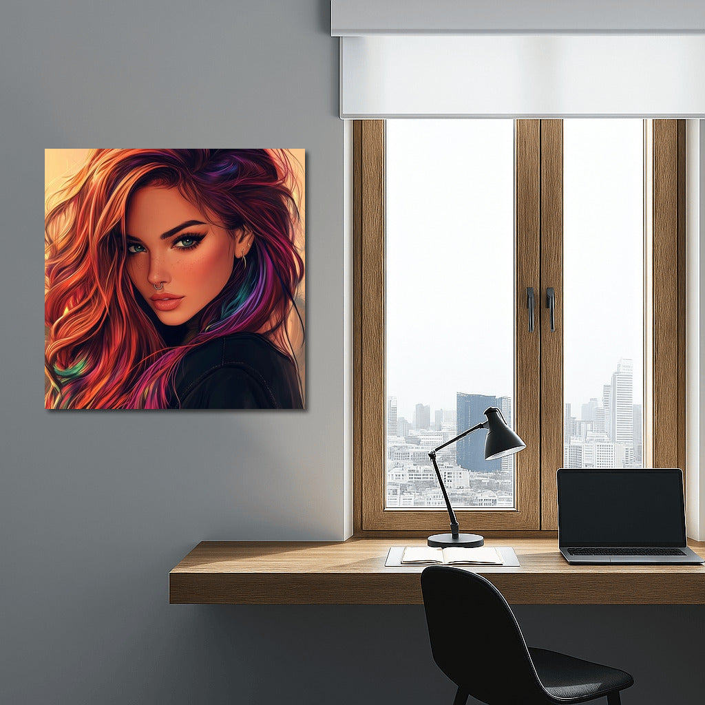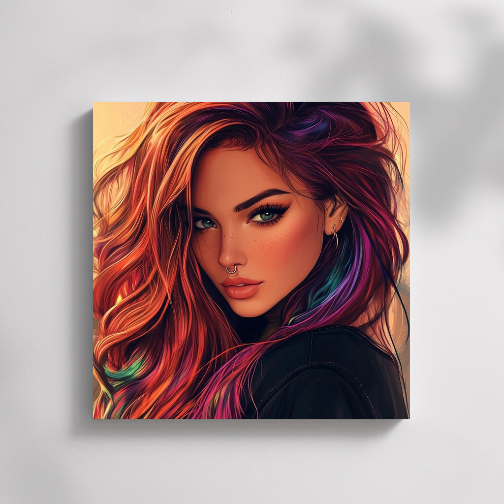 A vibrant poster featuring a fantasy character. Let her colorful hair fill your wall with energy and inspiration! See more from the collection: Mixed Wall Art