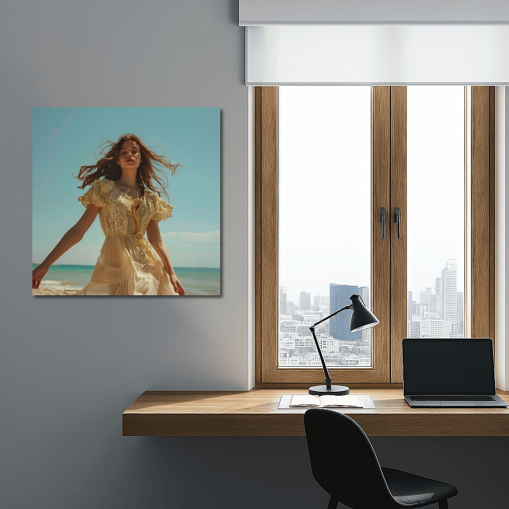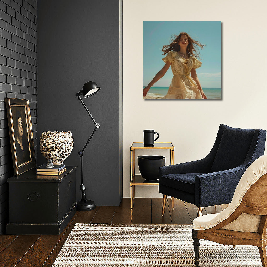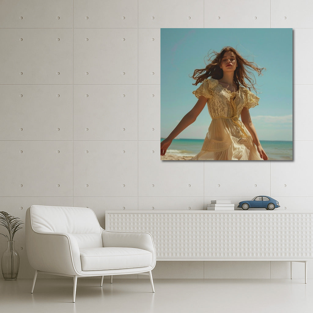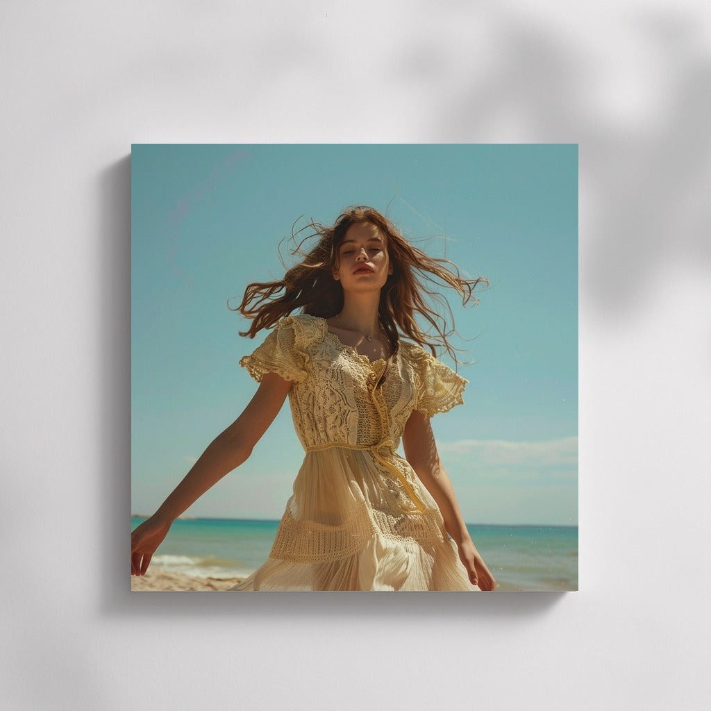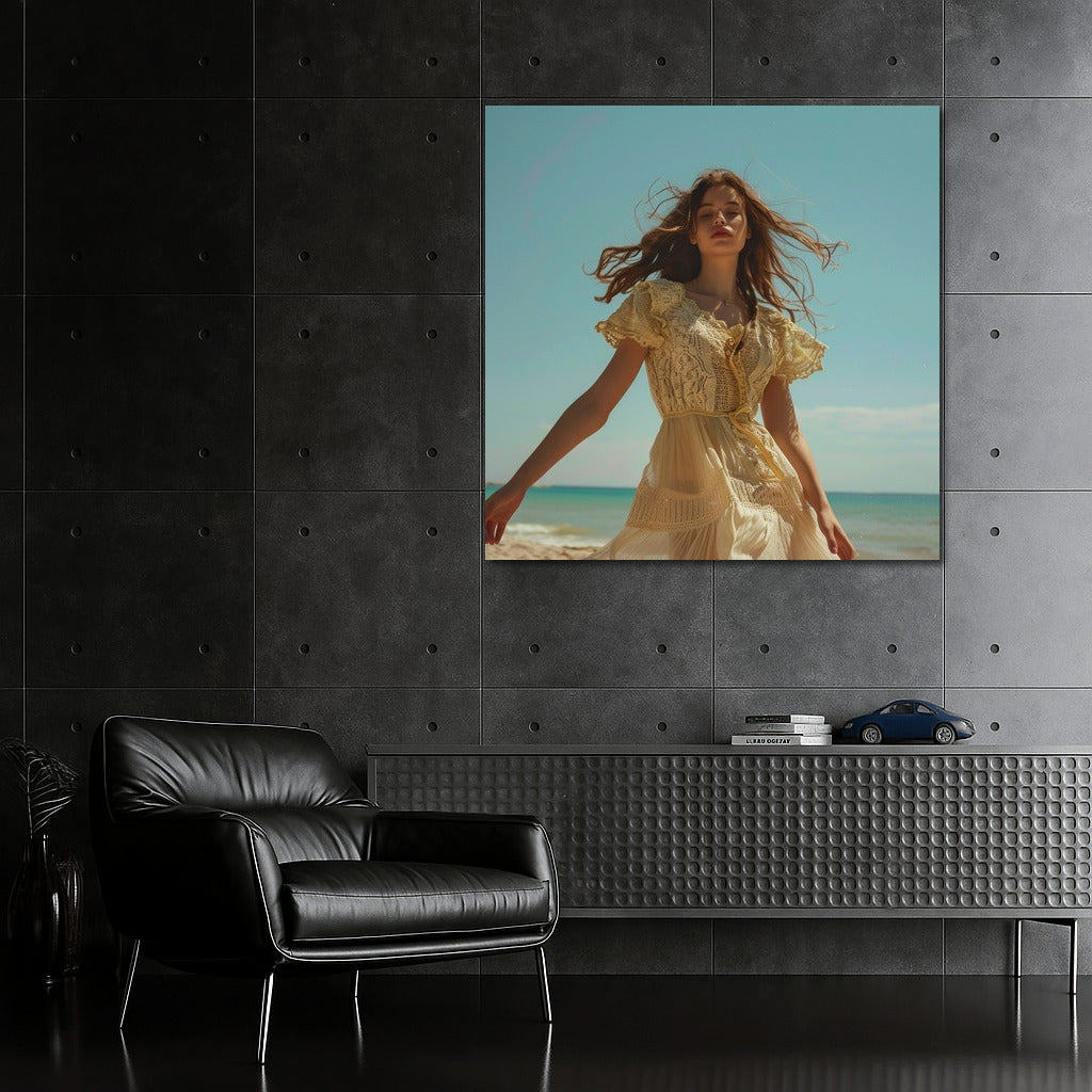 A graceful painting of a girl in the flow of sea wind. This poster is a perfect addition to your wall art. See more from the collection: Wall Art with Women